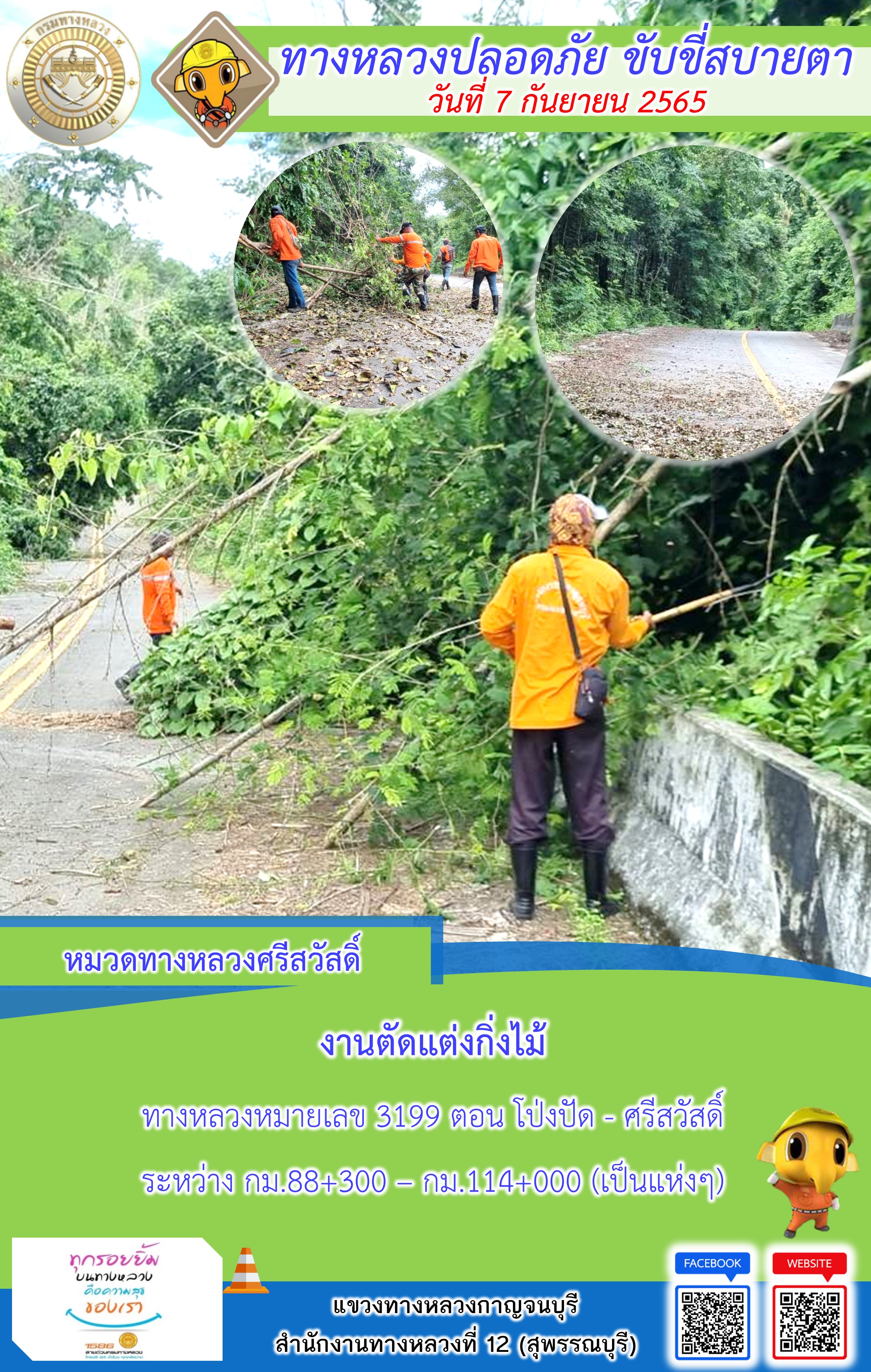 แขวงทางหลวงกาญจนบุรี โดยหมวดทางหลวงในสังกัดและงานอำนวยความปลอดภัย ปฏิบัติงาน ประจำวันที่ 7 ก.ย. 65 #กรมทางหลวง #สายด่วนกรมทางหลวง1586 #แขวงทางหลวงกาญจนบุรี โทร 034-520-598