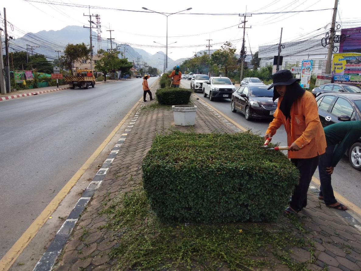 1.ตัดแต่งต้นไม้ ถอนหญ้าเกาะกลาง ทำความสะอาดขอบเกาะ
