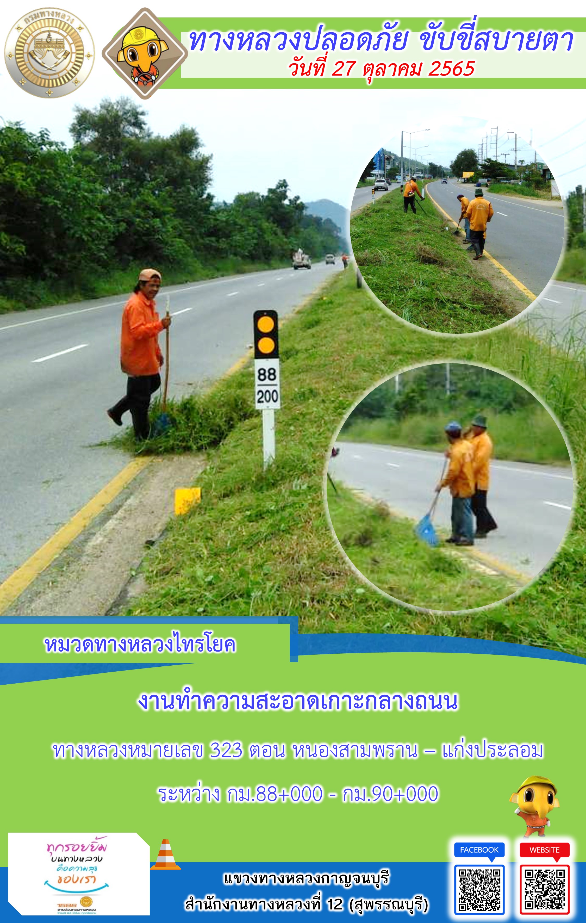 แขวงทางหลวงกาญจนบุรี โดยหมวดทางหลวงในสังกัดและงานอำนวยความปลอดภัย ปฏิบัติงาน ประจำวันที่ 27 ต.ค. 65 #กรมทางหลวง #สายด่วนกรมทางหลวง1586 #แขวงทางหลวงกาญจนบุรี โทร 034-520-598