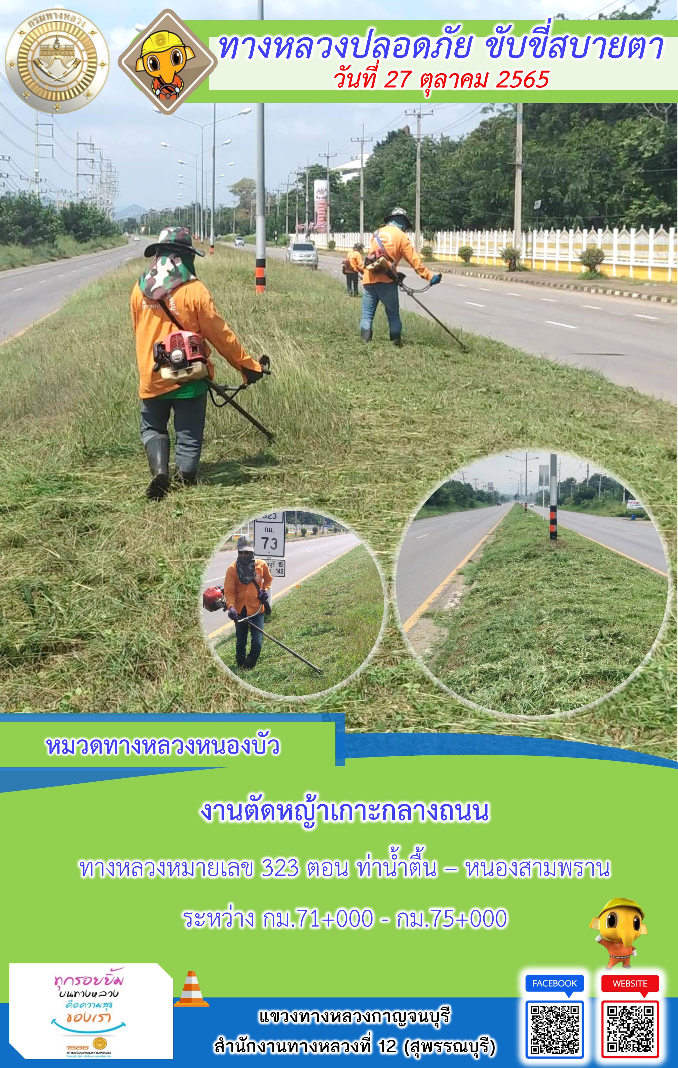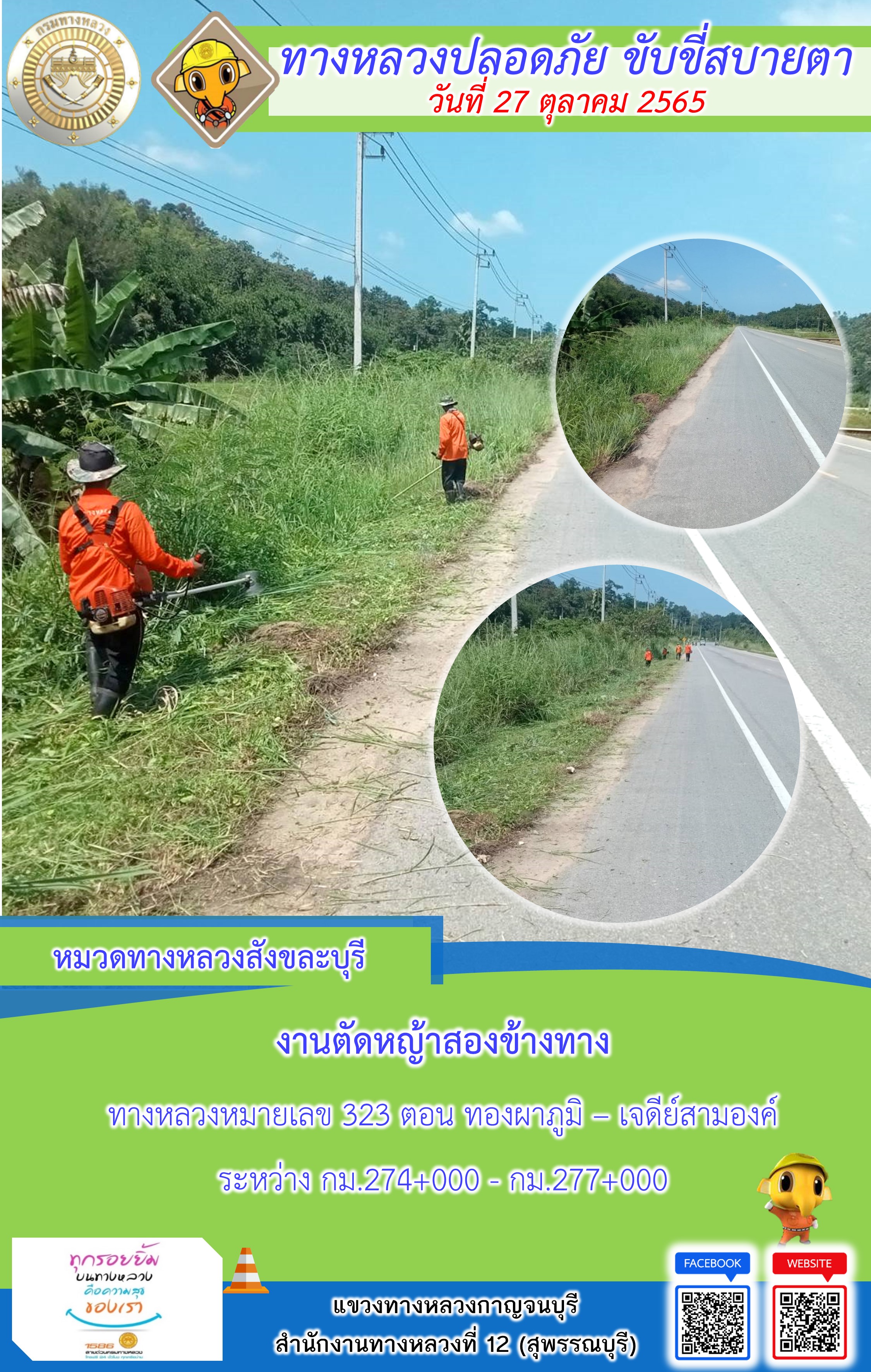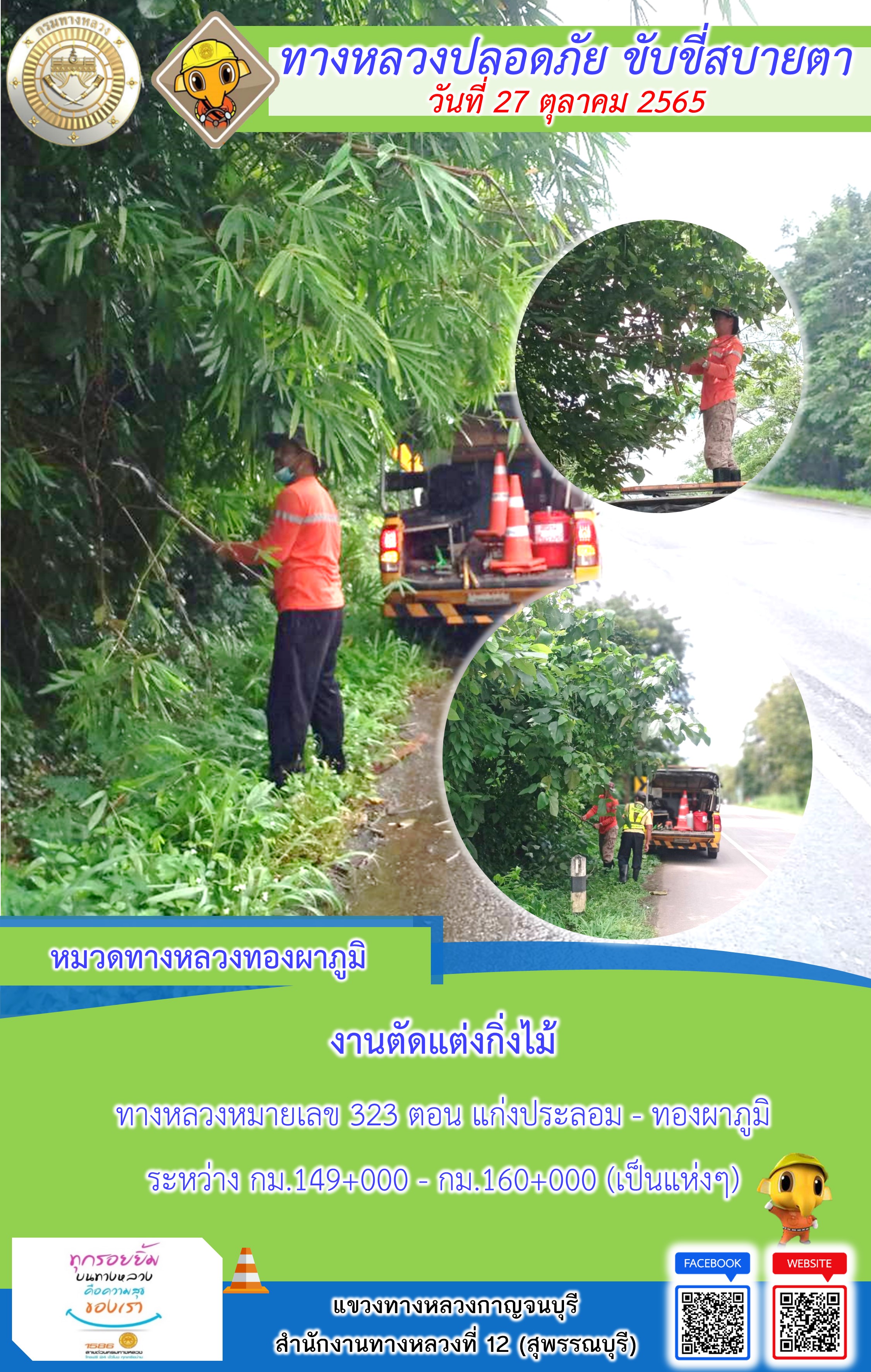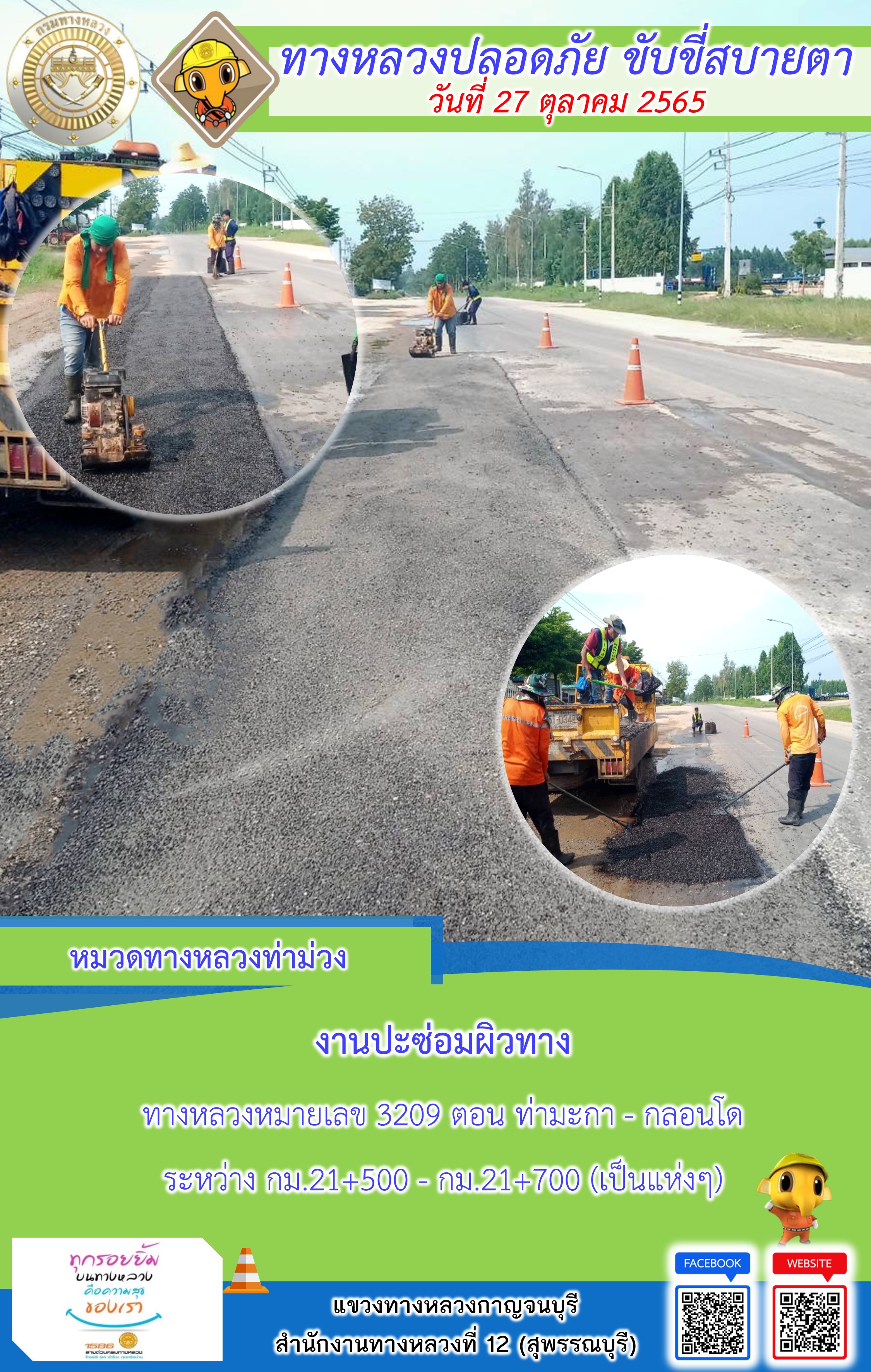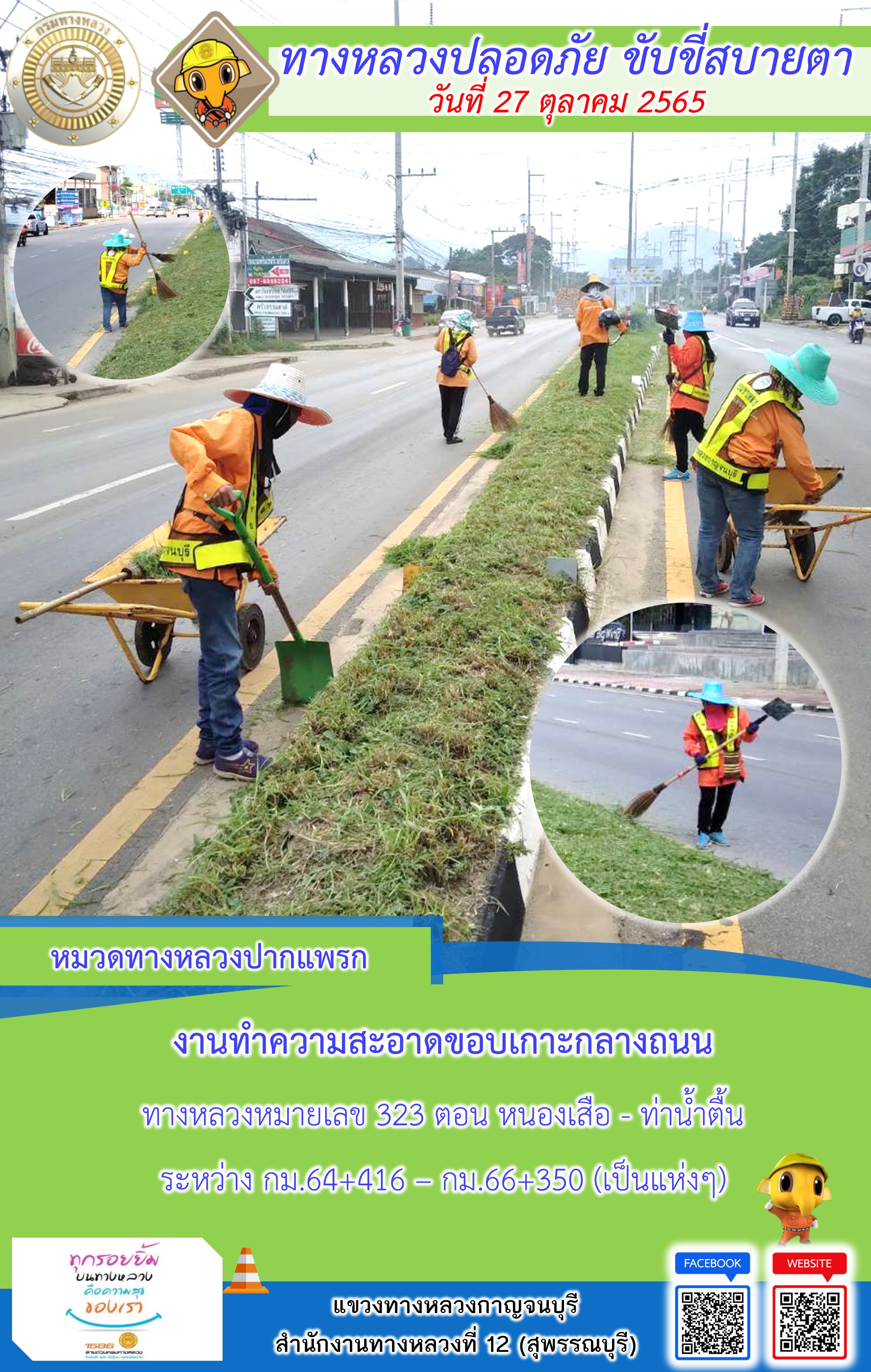 ข้อมูลภาพกิจกรรม : แขวงทางหลวงกาญจนบุรี โดยหมวดทางหลวงในสังกัดและงานอำนวยความปลอดภัย ปฏิบัติงาน ประจำวันที่ 27 ต.ค. 65 #กรมทางหลวง #สายด่วนกรมทางหลวง1586 #แขวงทางหลวงกาญจนบุรี โทร 034-520-598