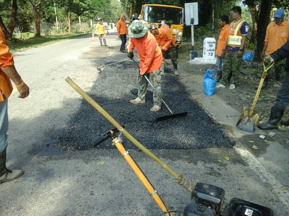 แขวงทางหลวงกาญจนบุรีโดยหมวดศรีสวัสดิ์+ม.ลาดหญ้า ดำเนินการในทางหลวงหมายเลข 3199