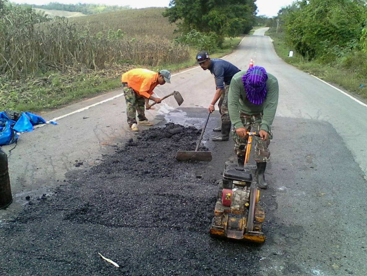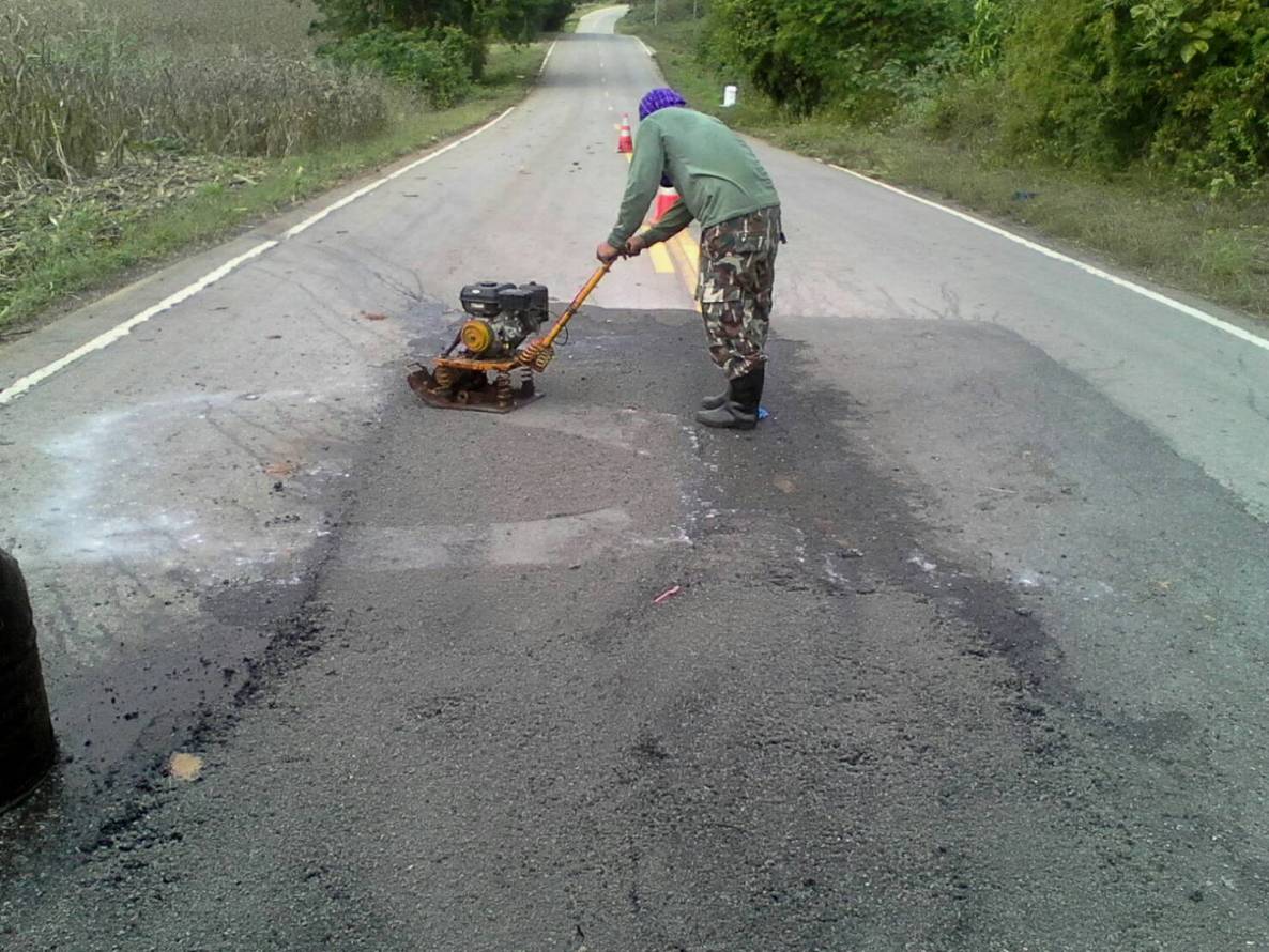 แขวงทางหลวงกาญจนบุรีโดยหมวดศรีสวัสดิ์ ดำเนินการในทางหลวงหมายเลข 3199