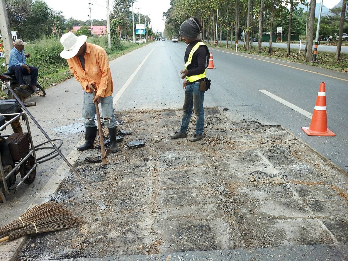 แขวงทางหลวงกาญจนบุรีโดยหมวดไทรโยค ดำเนินการในทางหลวงหมายเลข 323