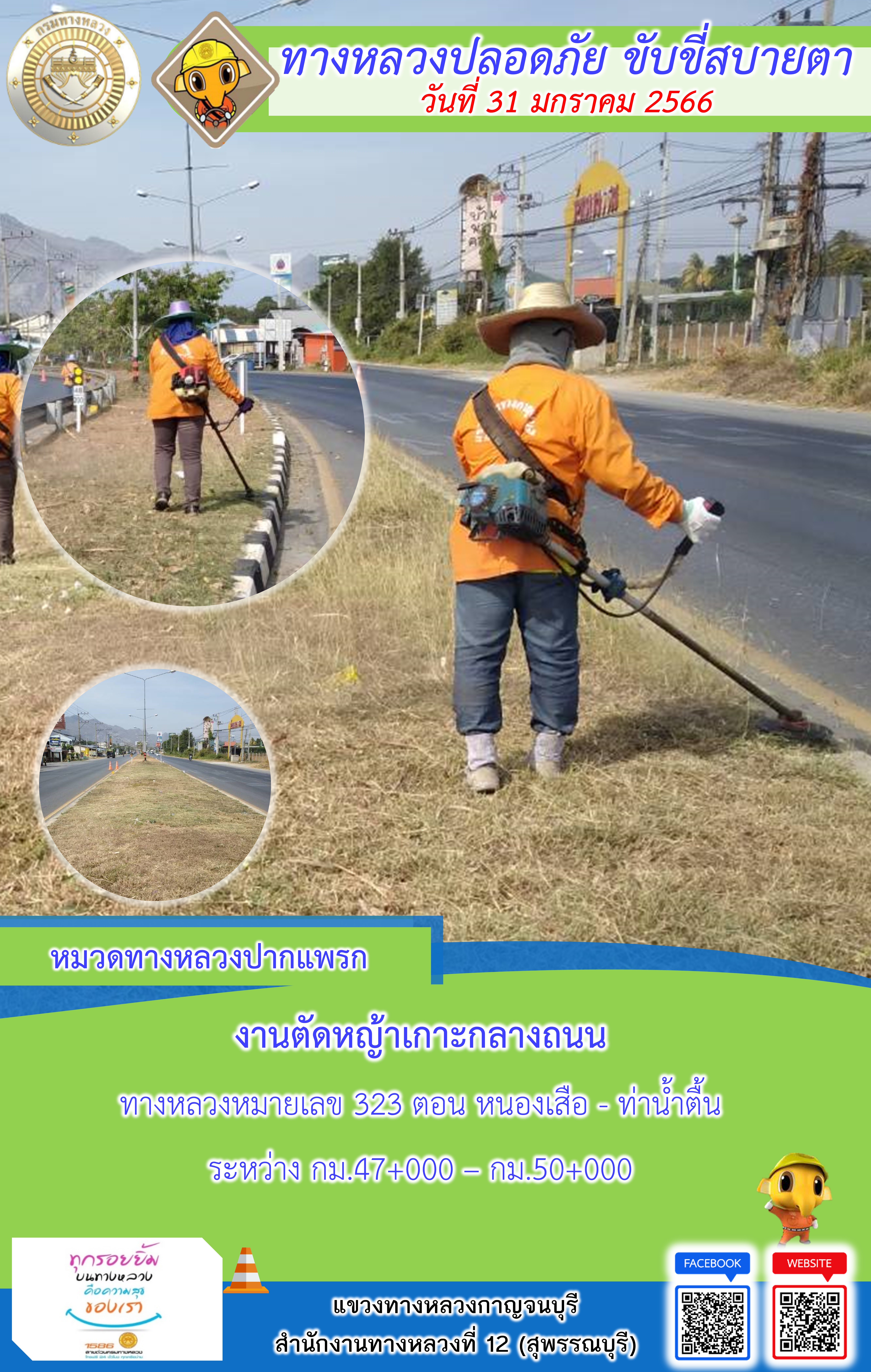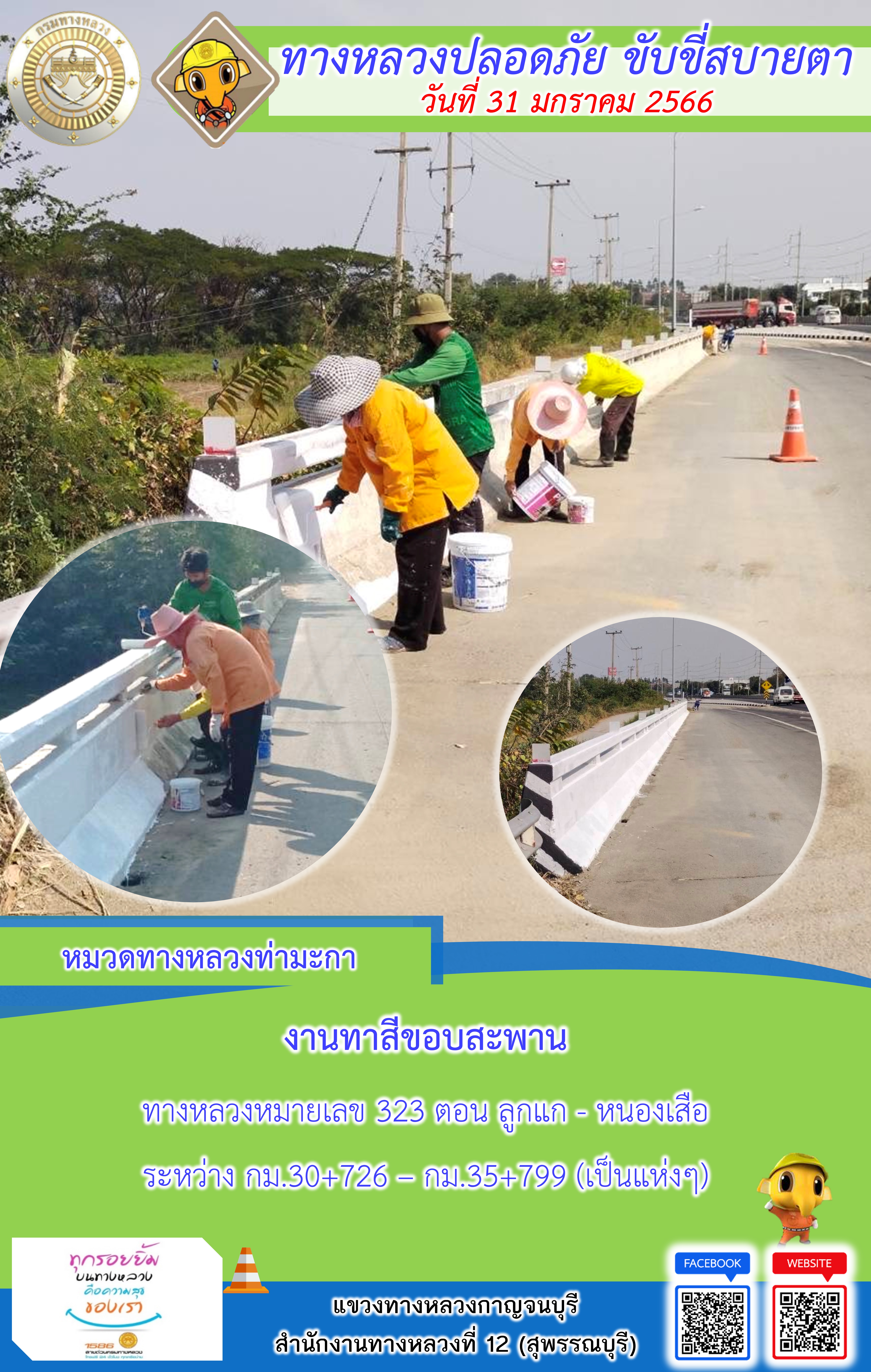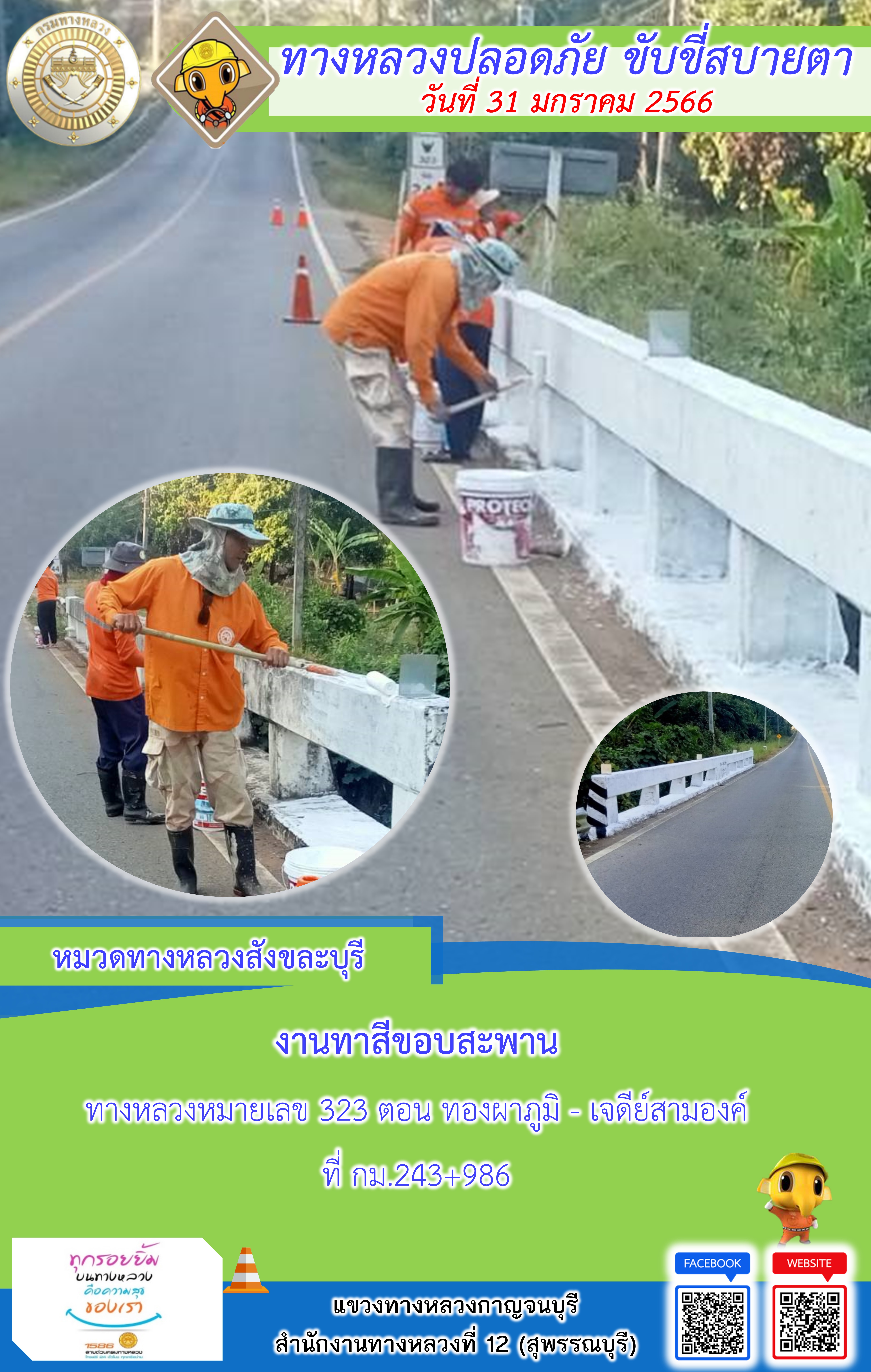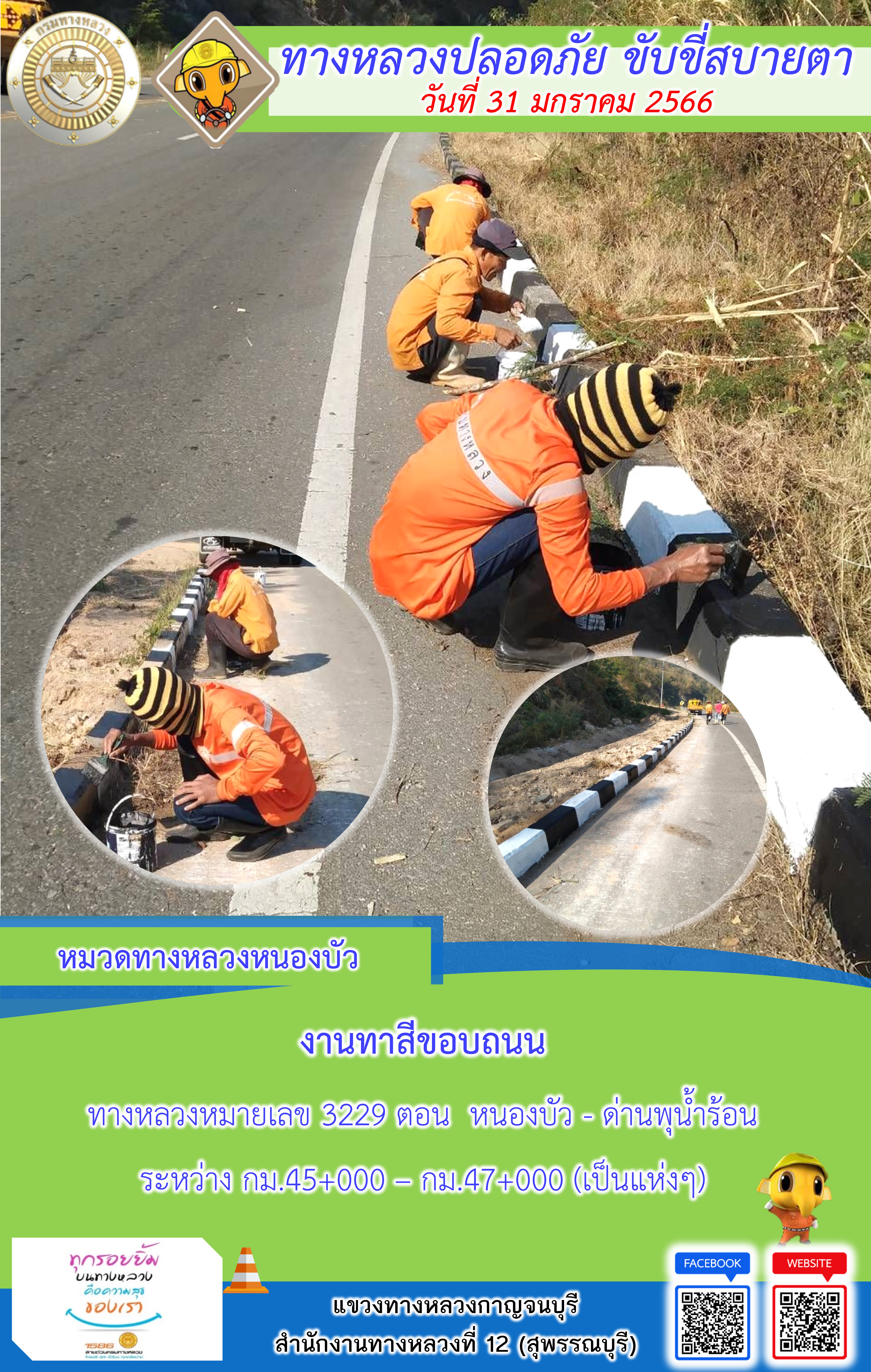 แขวงทางหลวงกาญจนบุรี โดยหมวดทางหลวงในสังกัดและงา ประจำวันที่ 31 ม.ค 66 #กรมทางหลวง #สายด่วนกรมทางหลวง1586 #แขวงทางหลวงกาญจนบุรี โทร 034-520-598