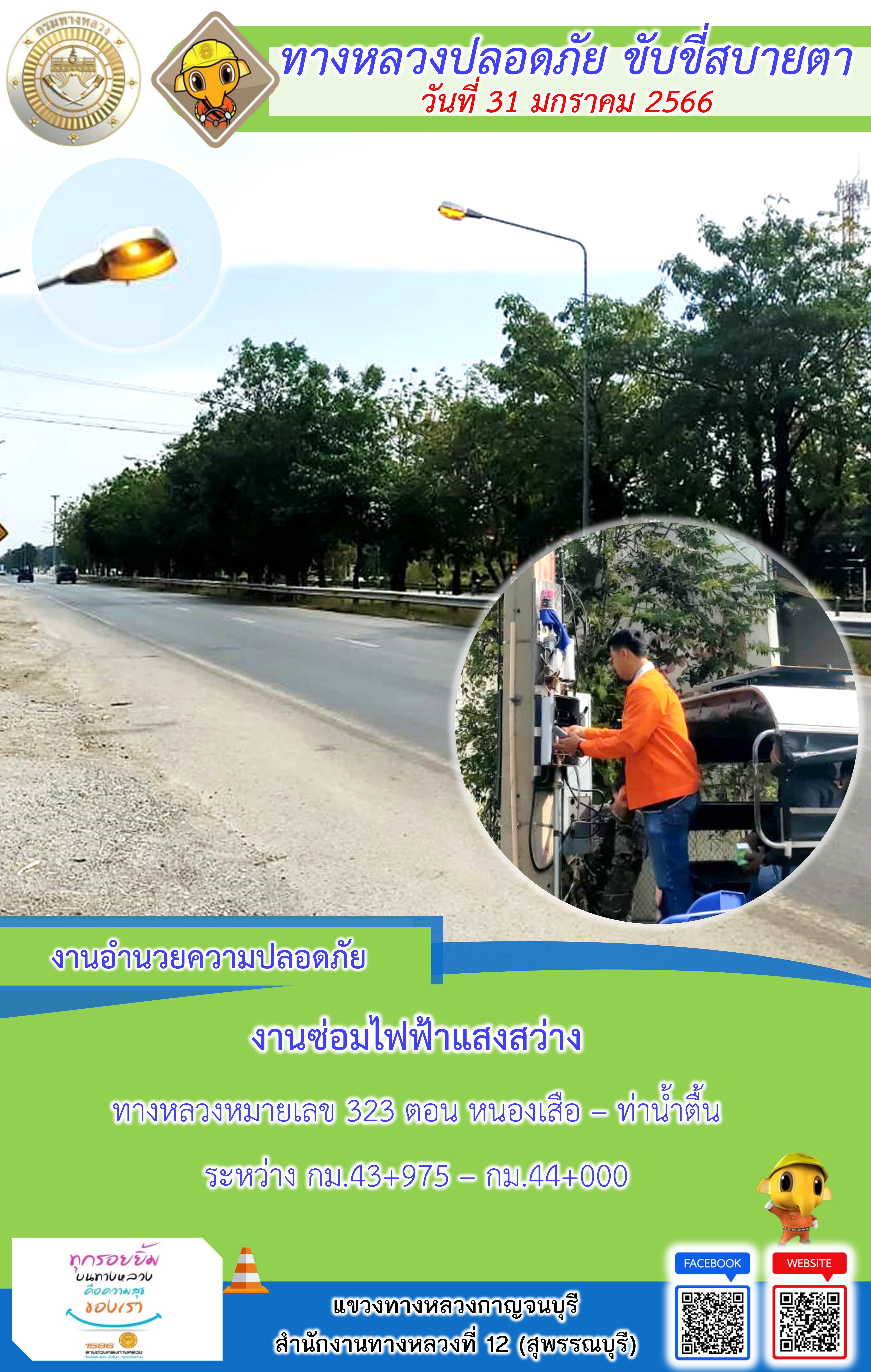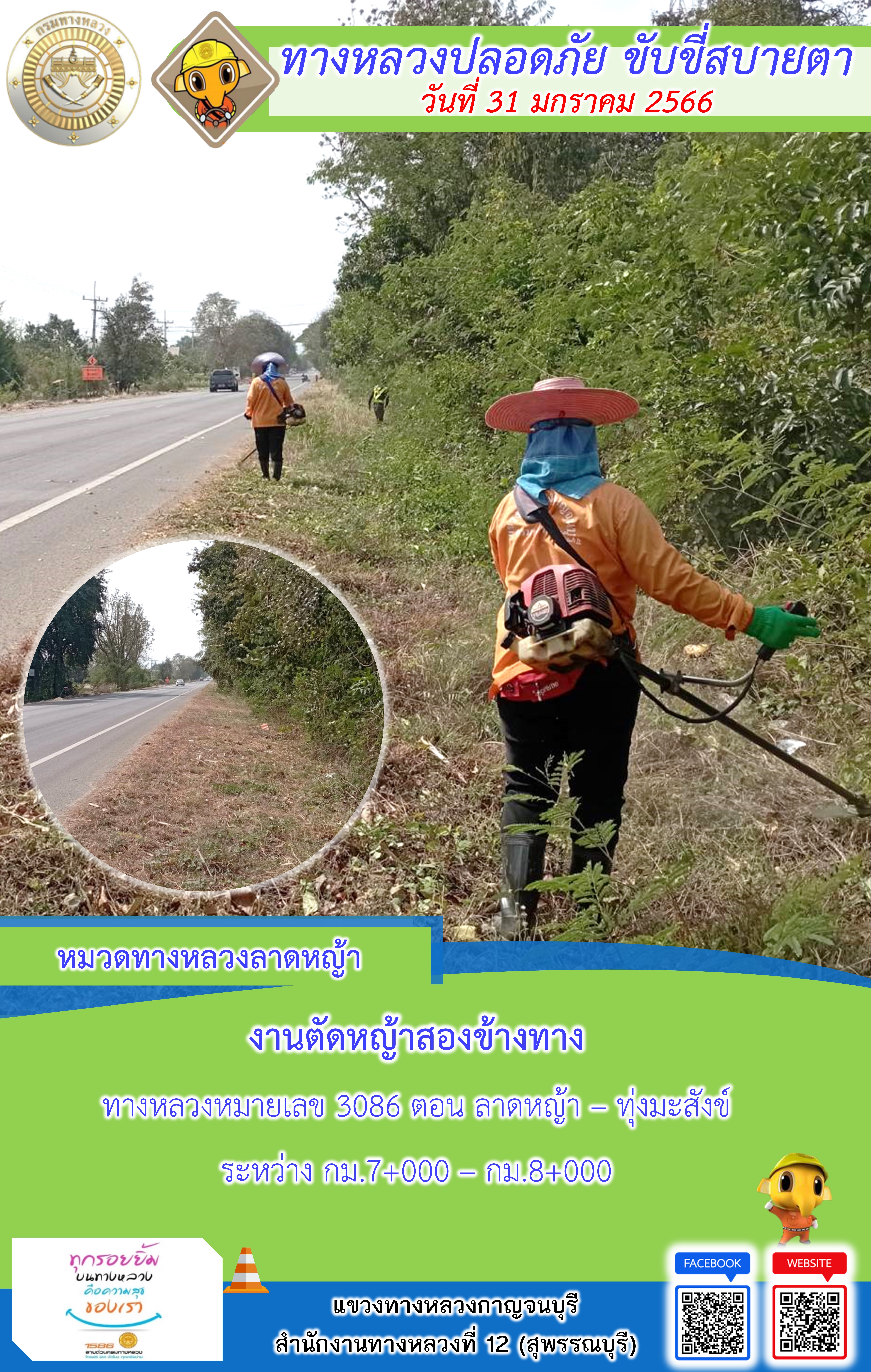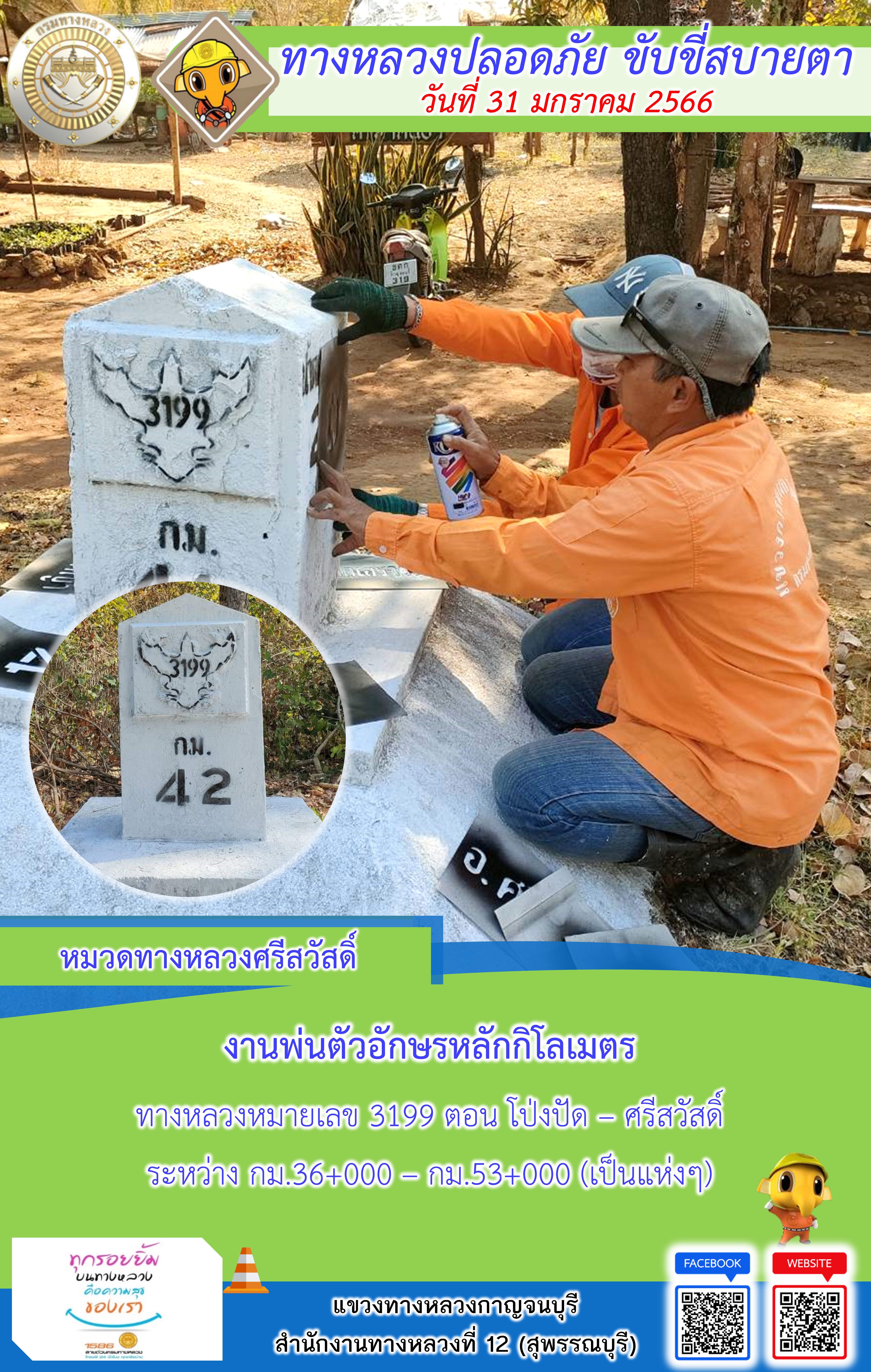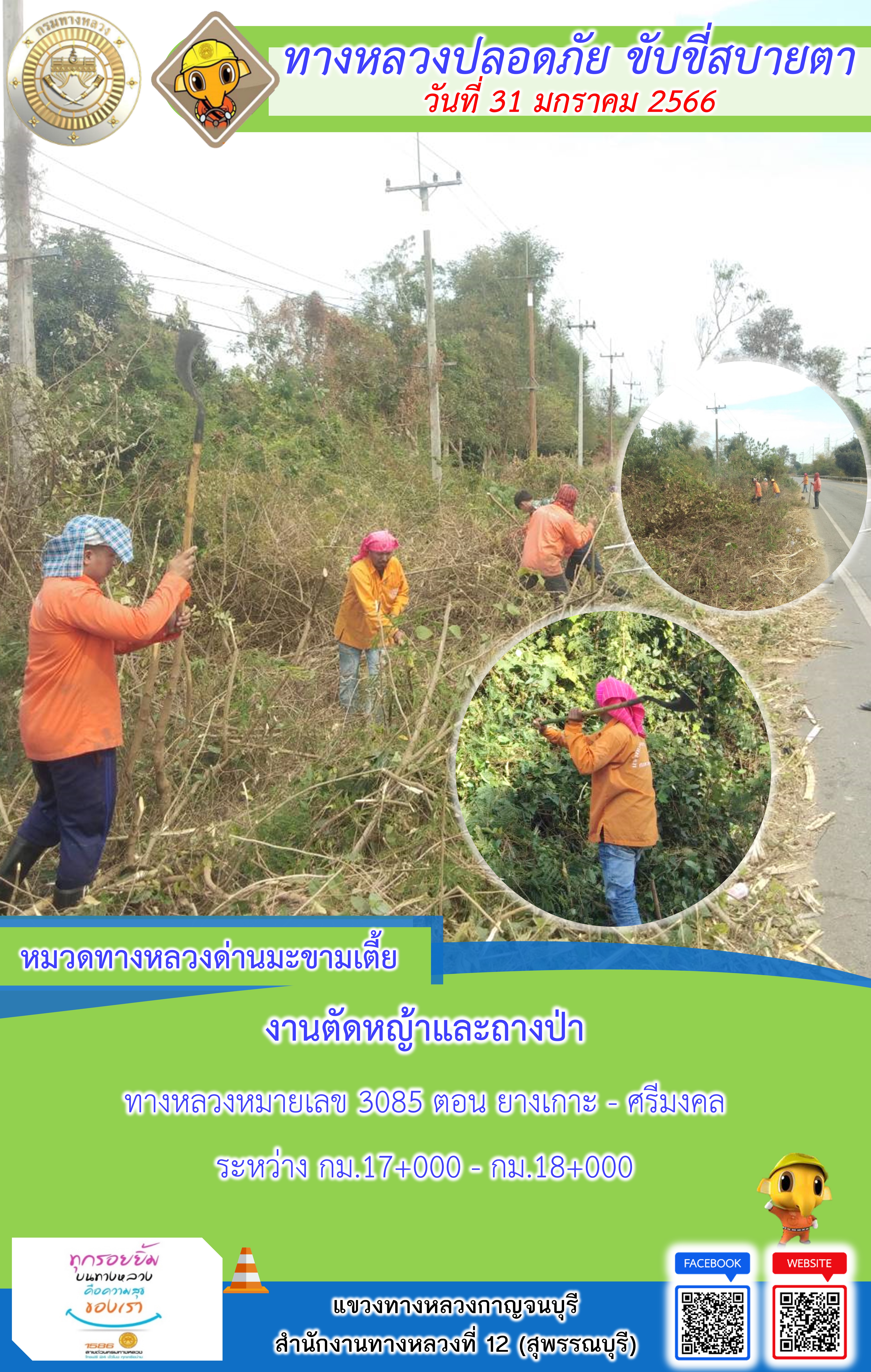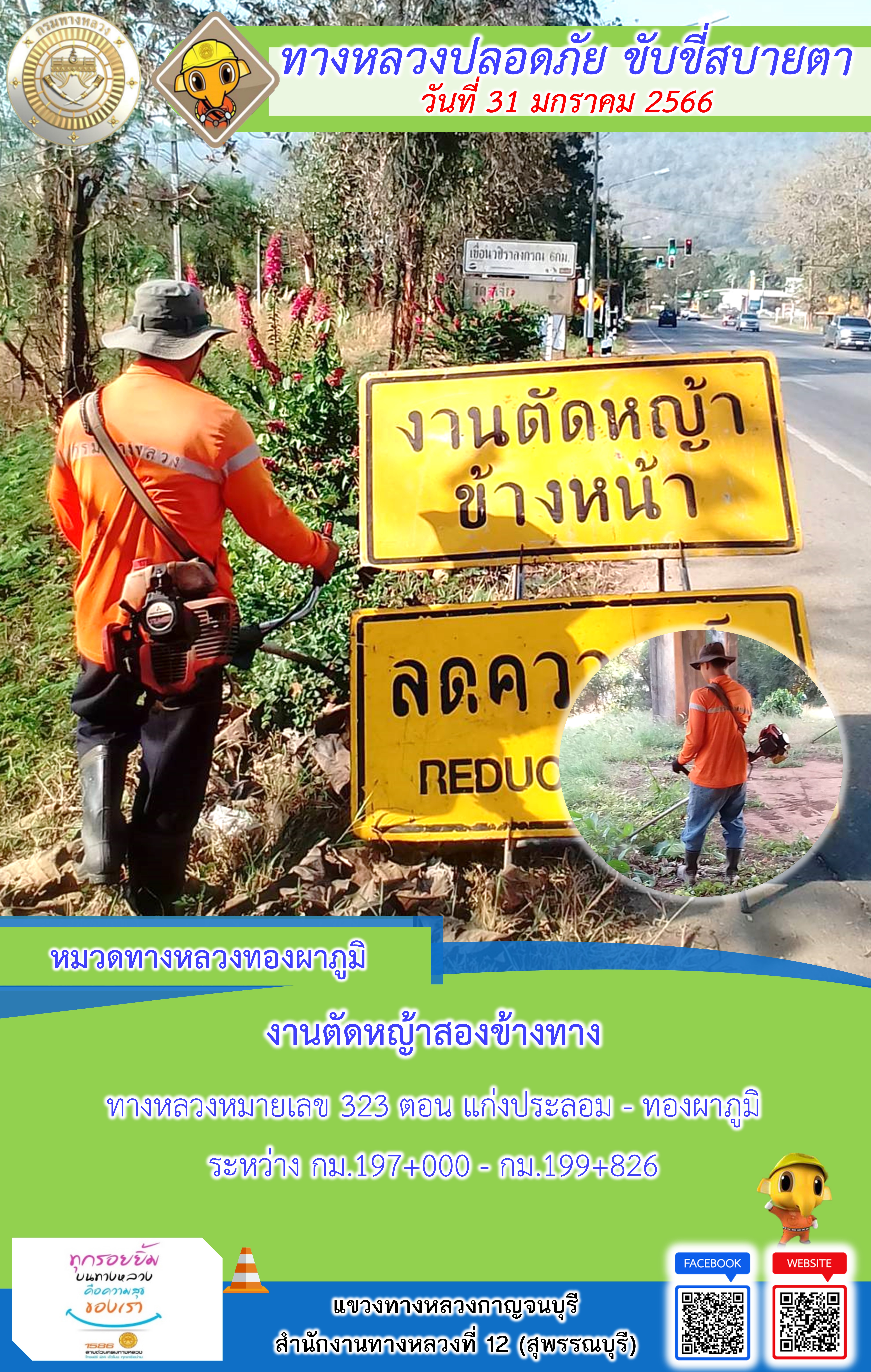 แขวงทางหลวงกาญจนบุรี โดยหมวดทางหลวงในสังกัดและงา ประจำวันที่ 31 ม.ค 66 #กรมทางหลวง #สายด่วนกรมทางหลวง1586 #แขวงทางหลวงกาญจนบุรี โทร 034-520-598