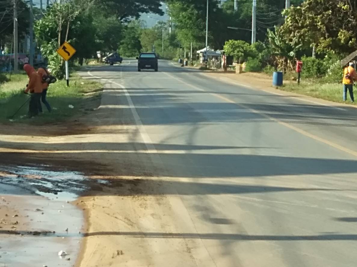 แขวงทางหลวงกาญจนบุรีโดยหมวดด่านมะขามเตี้ย ดำเนินการในทางหลวงหมายเลข 3305