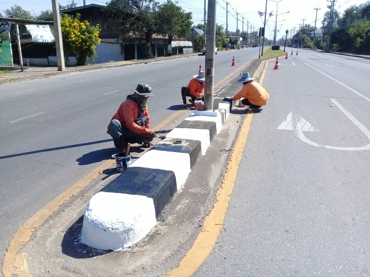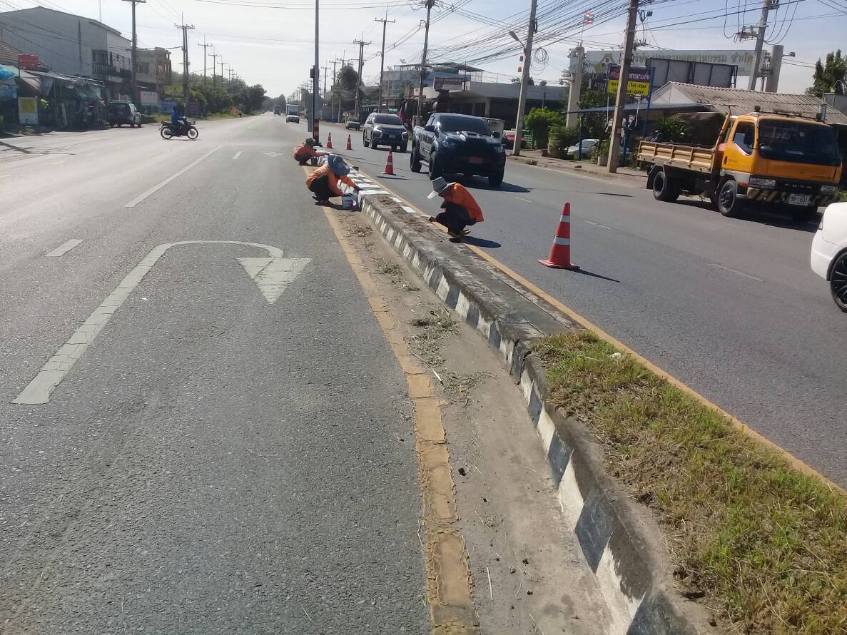 2.ทาสีขาว,ดำ ขอบเกาะกลาง ในทล.35480100 ที่ กม.1+400 -1+600
