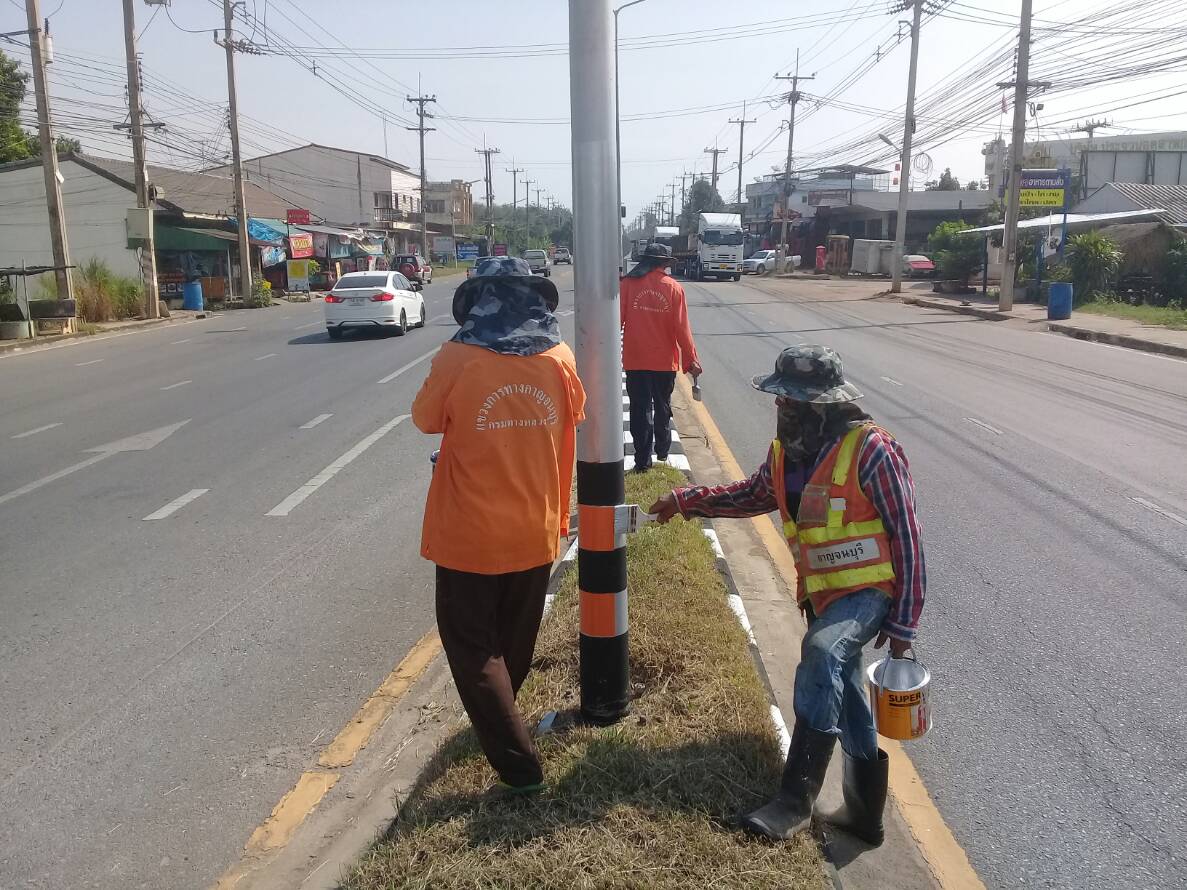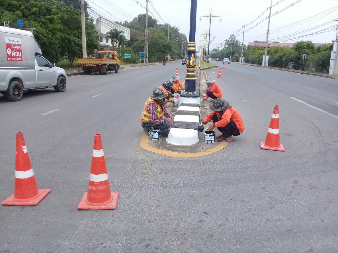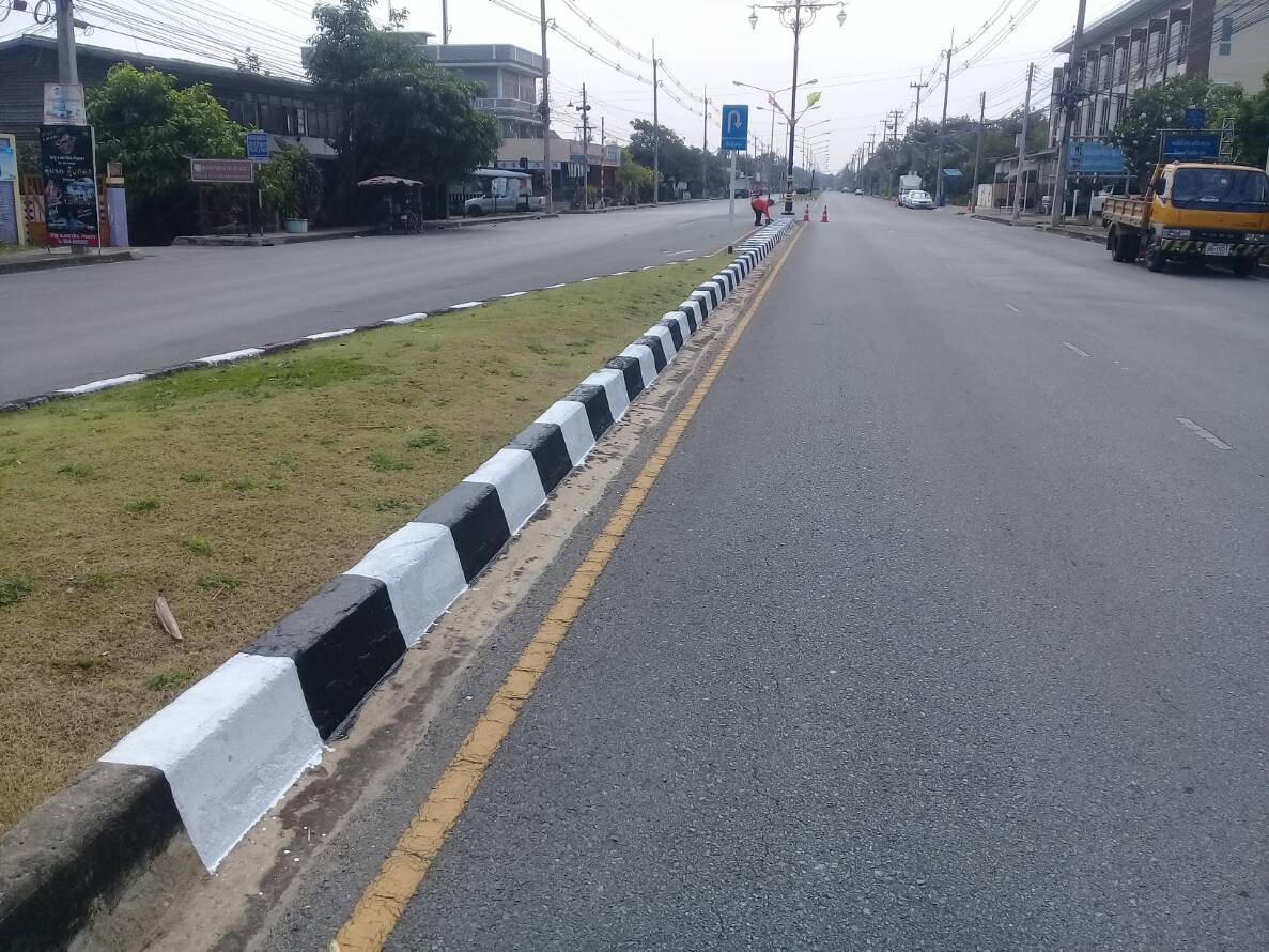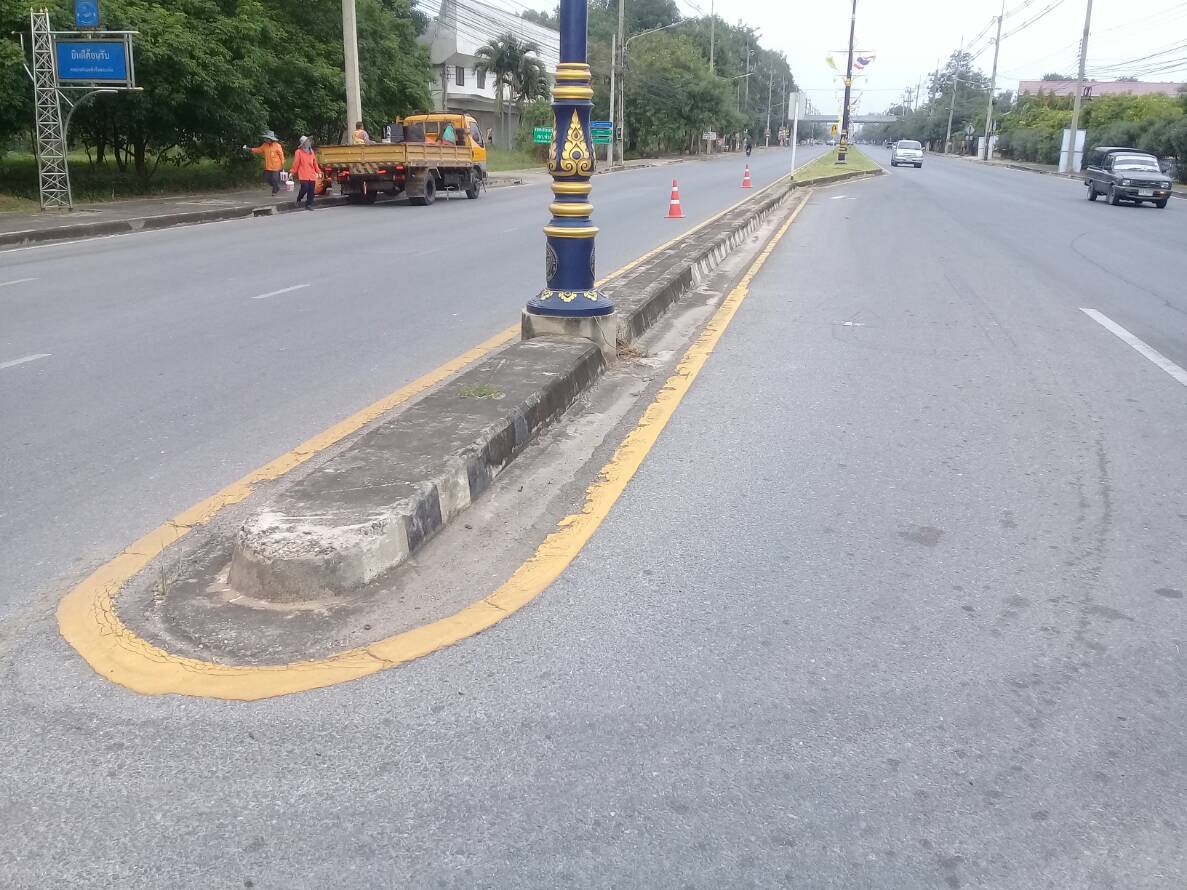 2.ทาสีขาว,ดำ ขอบเกาะกลาง ในทล.35480100 ที่ กม.1+600 ต่อด้วย ทาสีเสาไฟฟ้า ที่ กม.1+400 -1+600