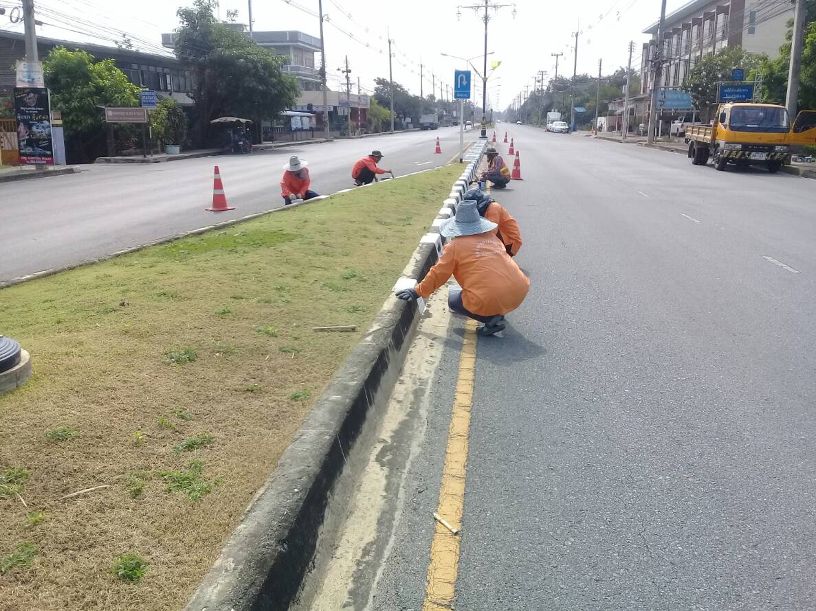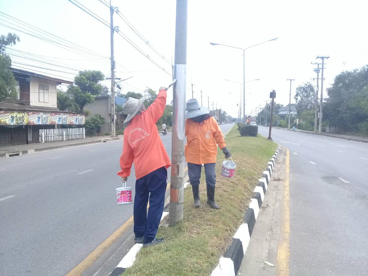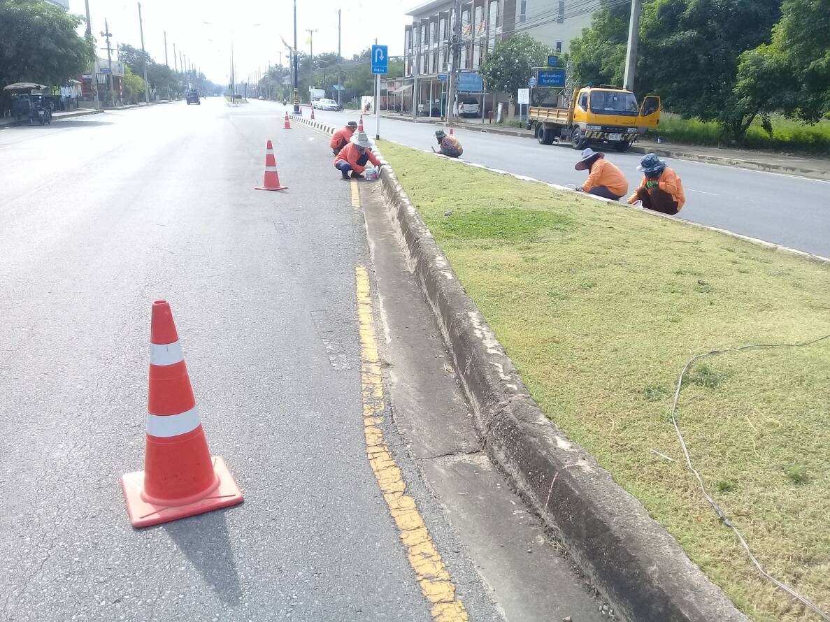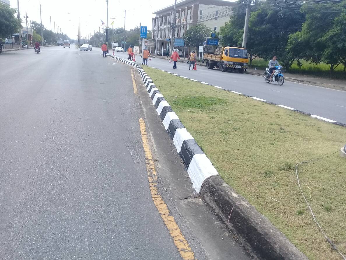 2.ทาสีขาว,ดำ ขอบเกาะกลาง ในทล.35480100 ที่ กม.1+600 ต่อด้วย ทาสีเสาไฟฟ้า ที่ กม.1+400 -1+600