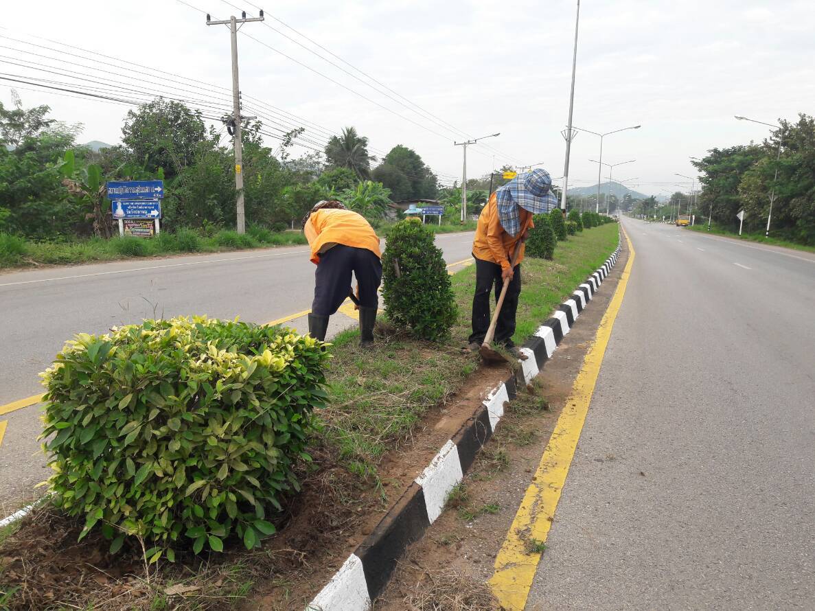 1.ดำเนินการทาสีขอบเกาะและพรวนดินต้นไม้บริเวณเกาะกลาง