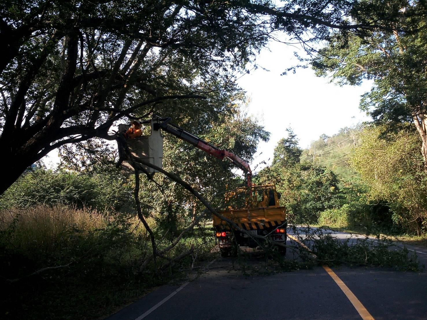 2.ดำเนินตัดแต่งกิ่งไม้แห้งและเอนเอียงเข้าสู้ผิวจราจร ทล.3457 ตอนไทรโยค-ท่าทุ่งนา เริ่ม ช่วงกม.10+000 - 12+000