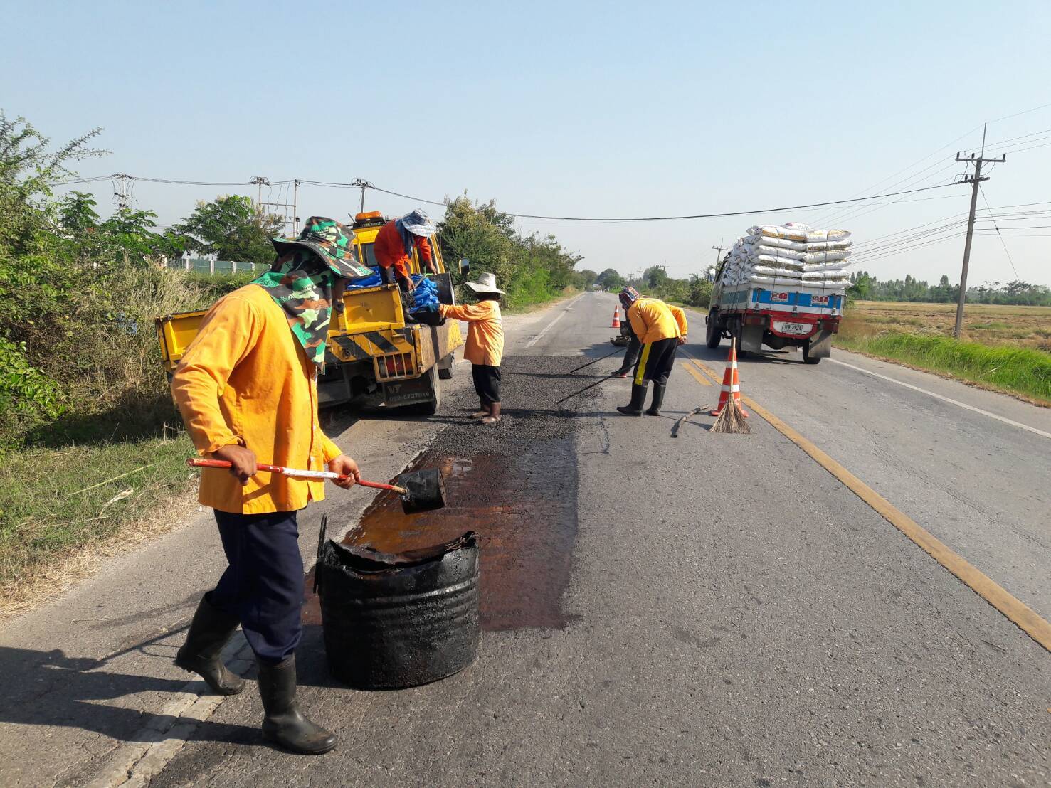 แขวงทางหลวงกาญจนบุรีโดยหมวดท่าม่วง ดำเนินการในทางหลวงหมายเลข 3209,3580