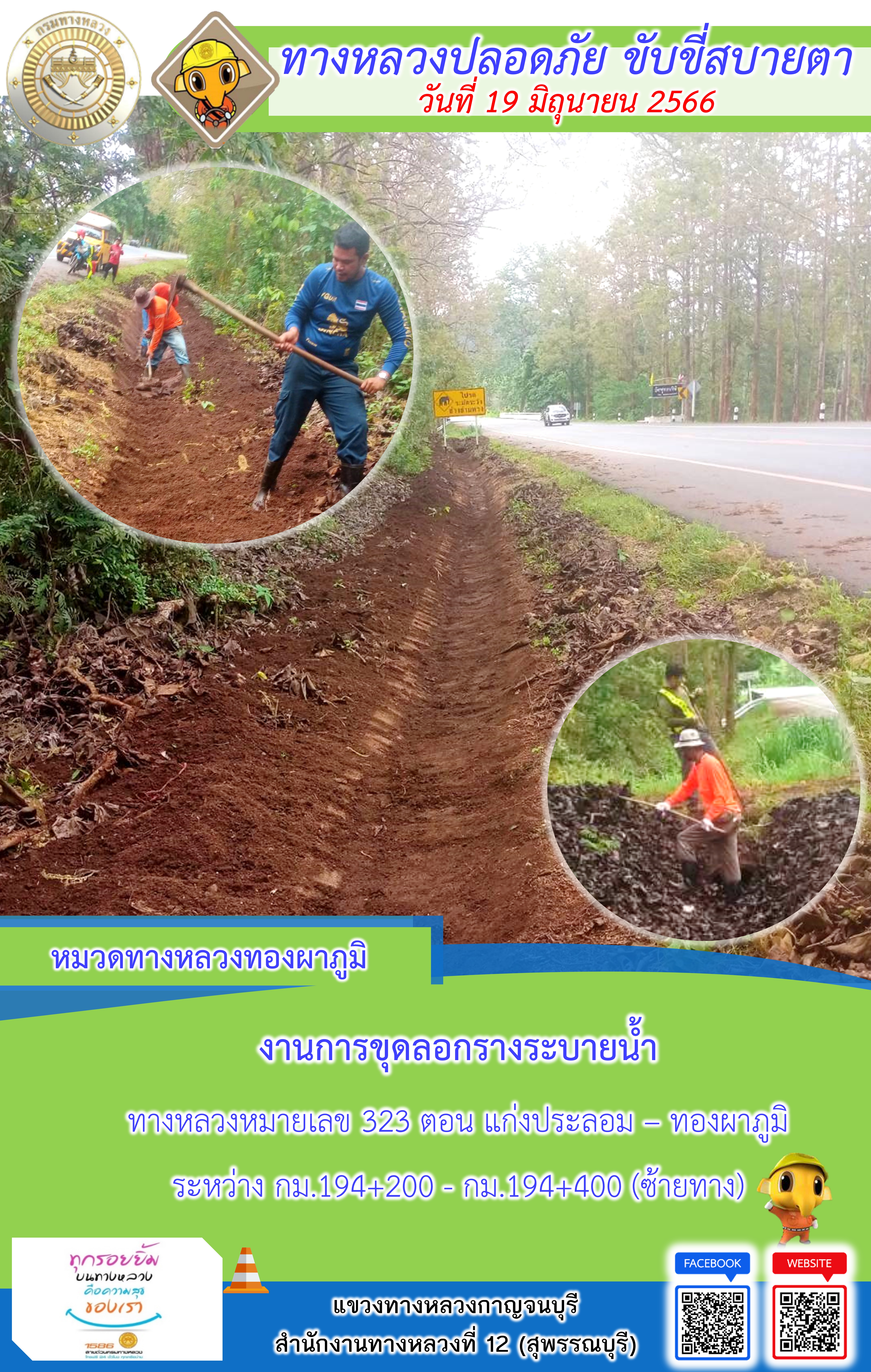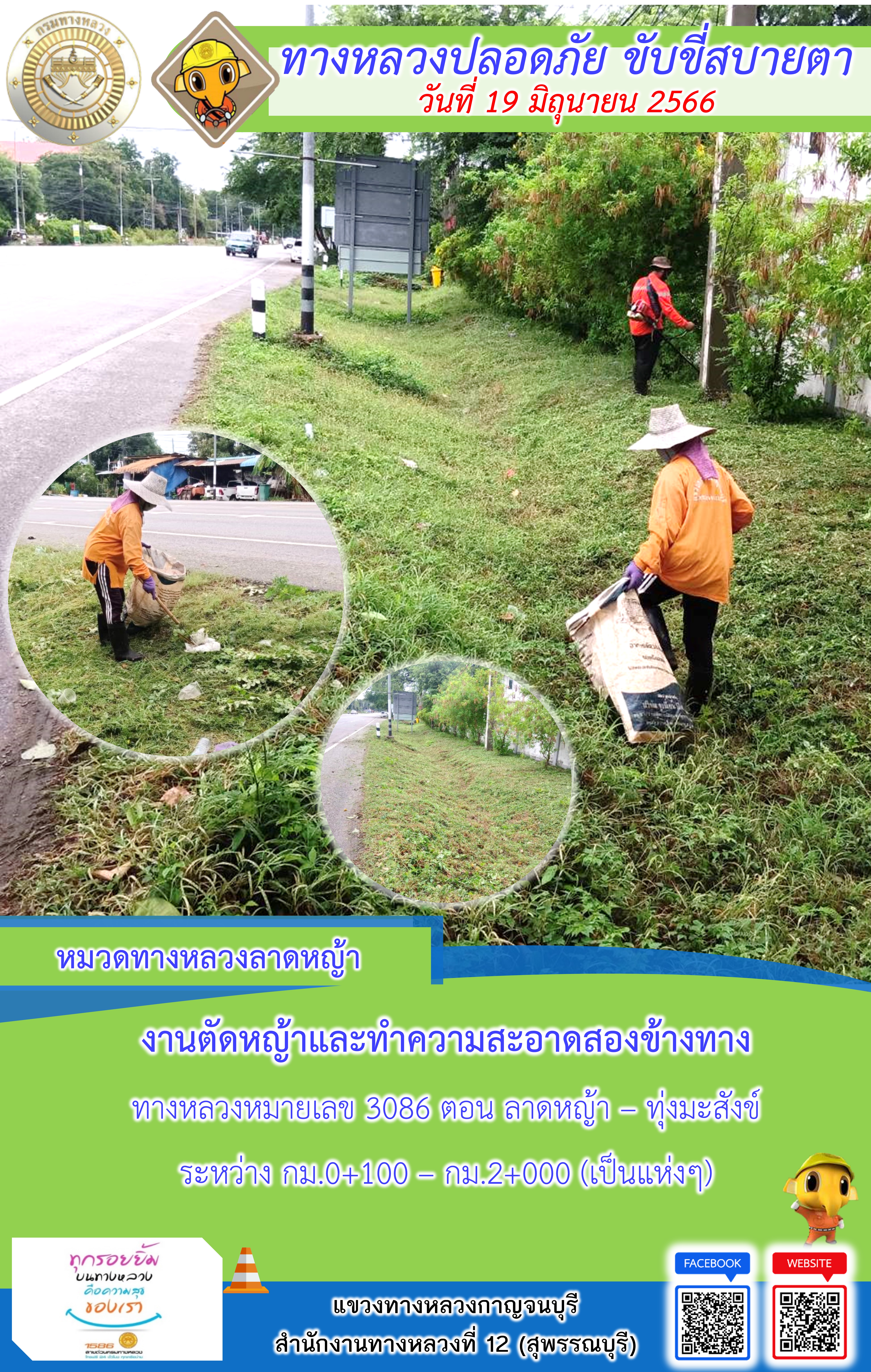 ข้อมูลภาพกิจกรรม : แขวงทางหลวงกาญจนบุรี โดยหมวดทางหลวงในสังกัดและงานอำนวยความปลอดภัย ปฏิบัติงาน ประจำวันที่ 19 มิ.ย 66 #กรมทางหลวง #สายด่วนกรมทางหลวง1586 #แขวงทางหลวงกาญจนบุรี โทร 034-520-598