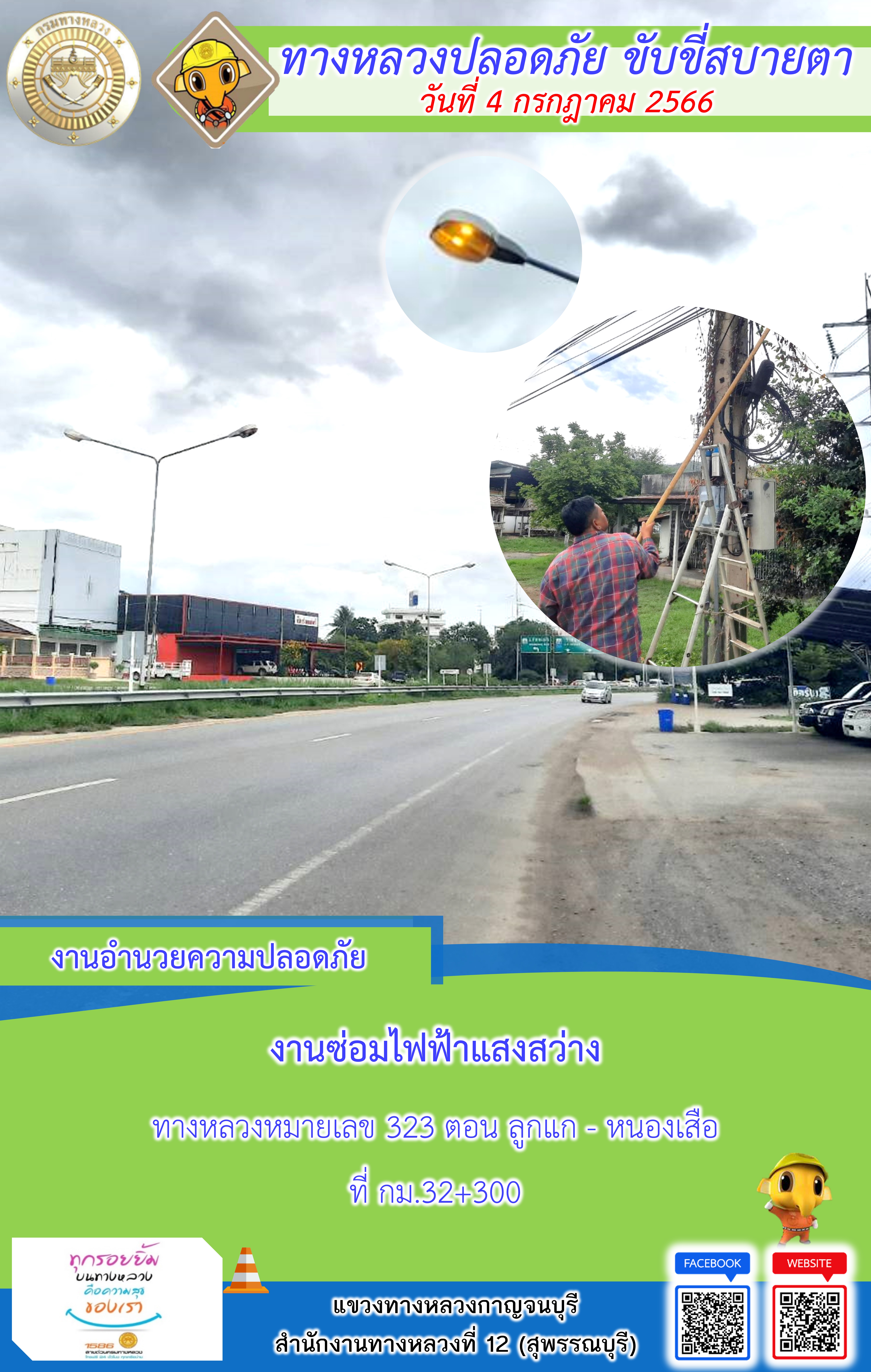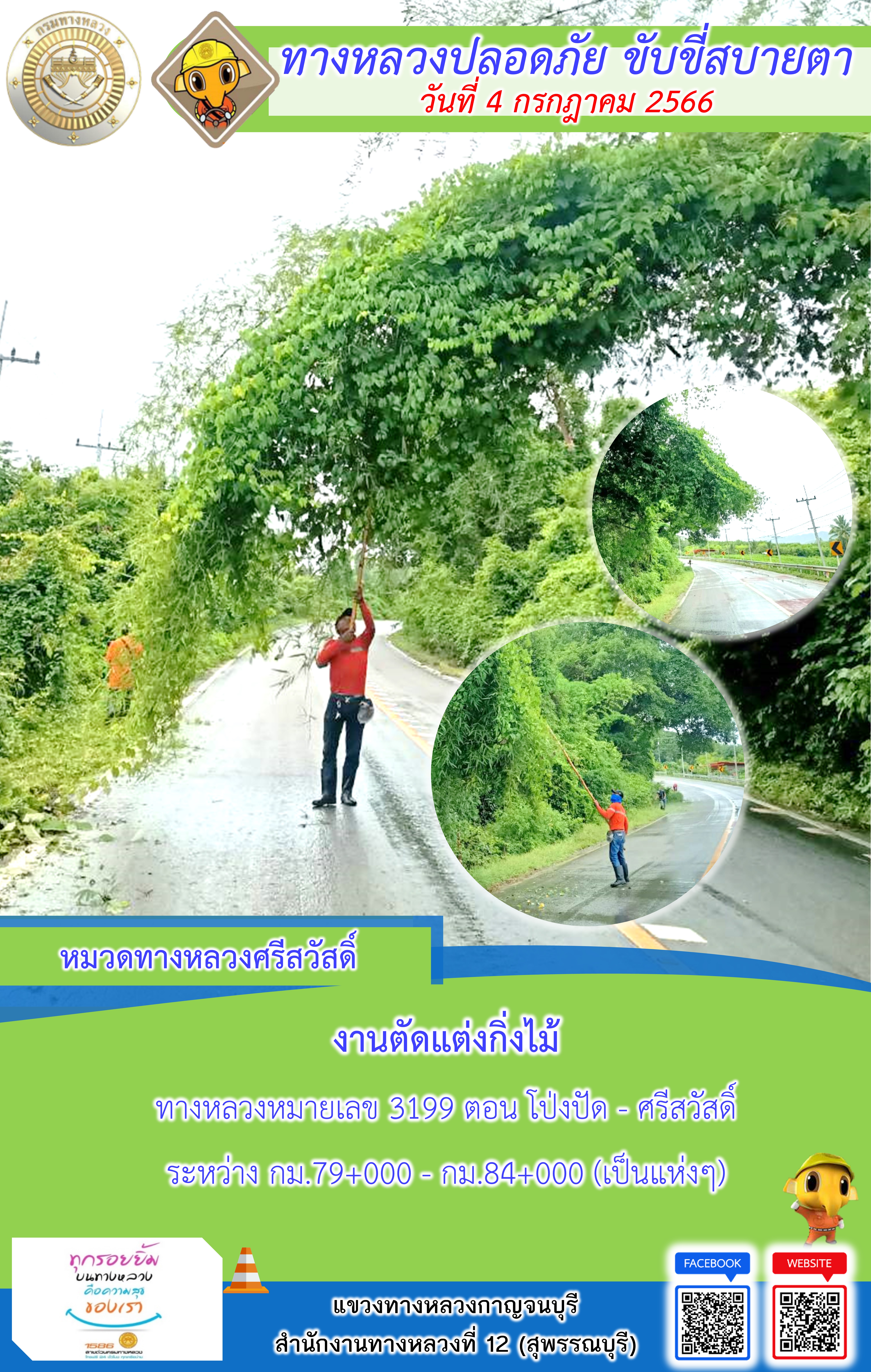 ข้อมูลภาพกิจกรรม : แขวงทางหลวงกาญจนบุรี โดยหมวดทางหลวงในสังกัดและงานอำนวยความปลอดภัย ปฏิบัติงาน ประจำวันที่ 4 ก.ค 66 #กรมทางหลวง #สายด่วนกรมทางหลวง1586 #แขวงทางหลวงกาญจนบุรี โทร 034-520-598