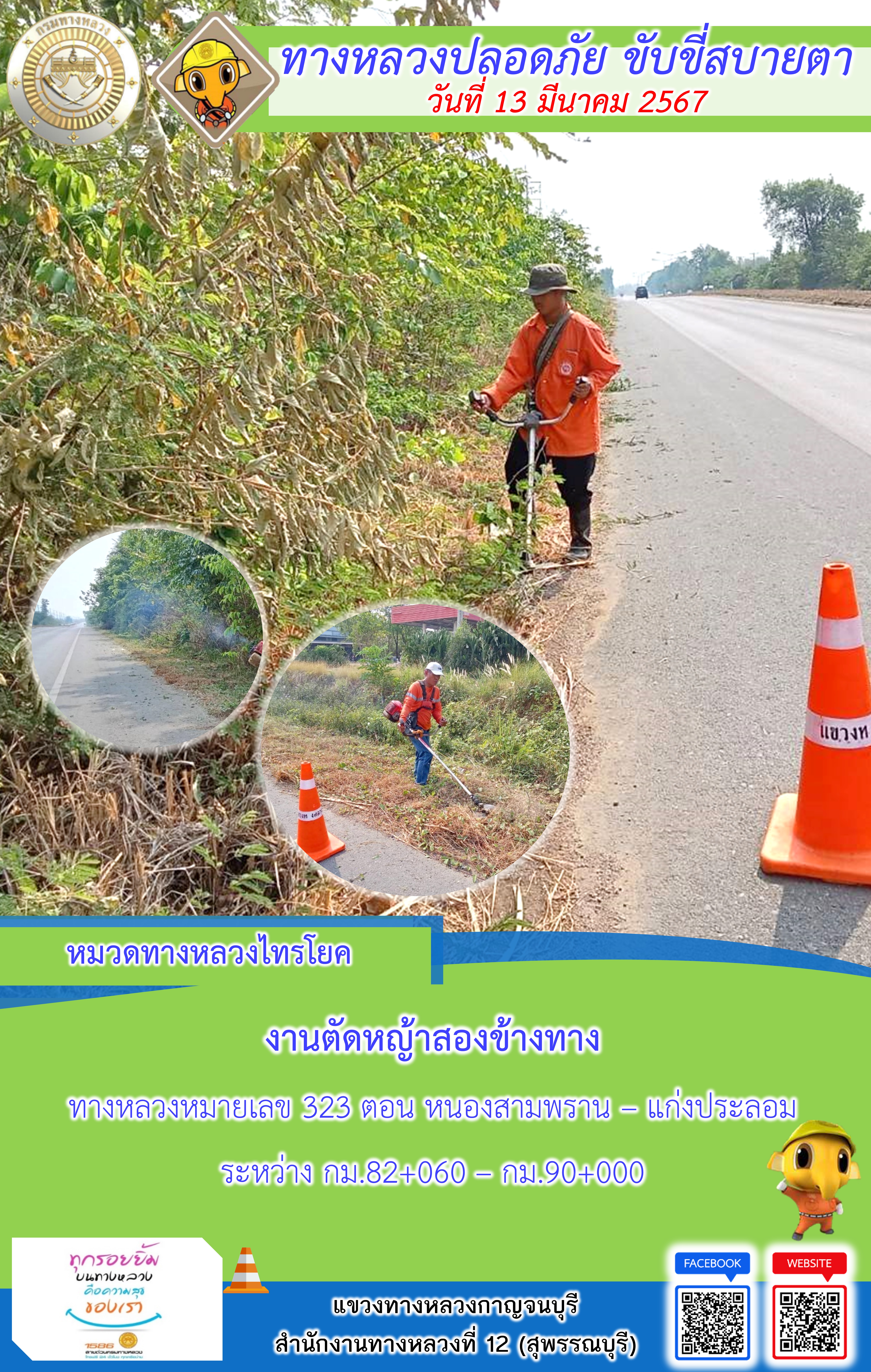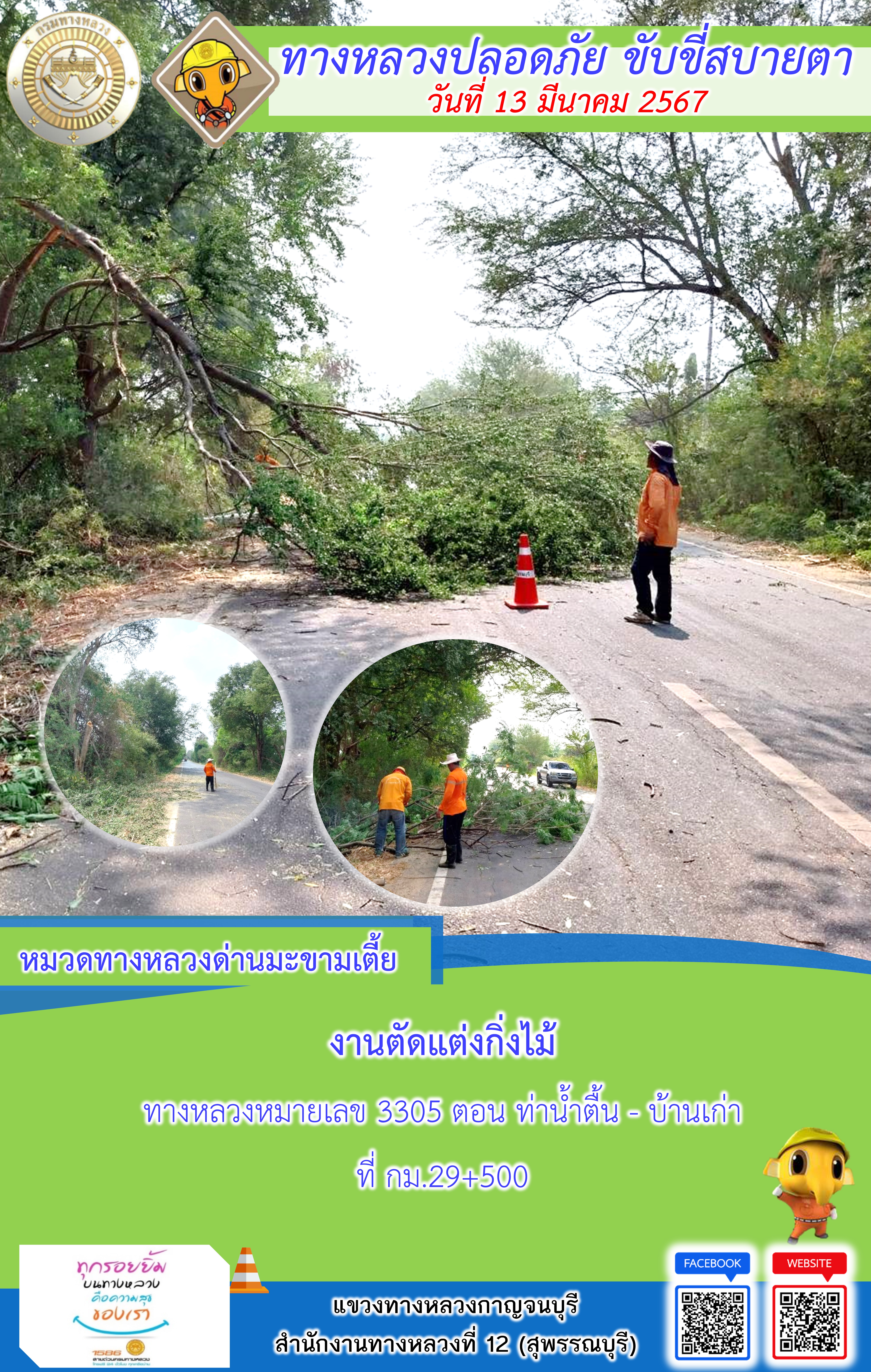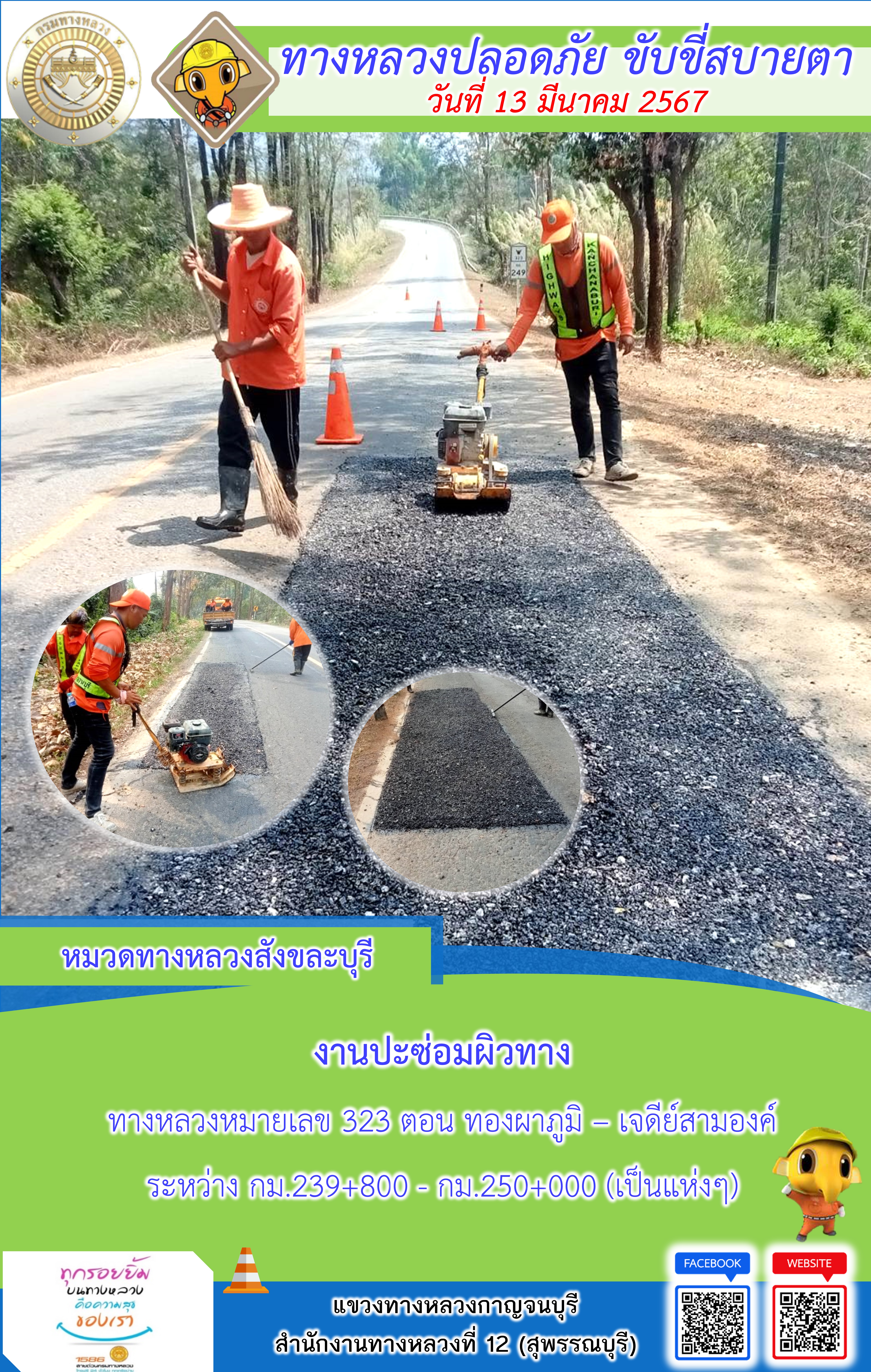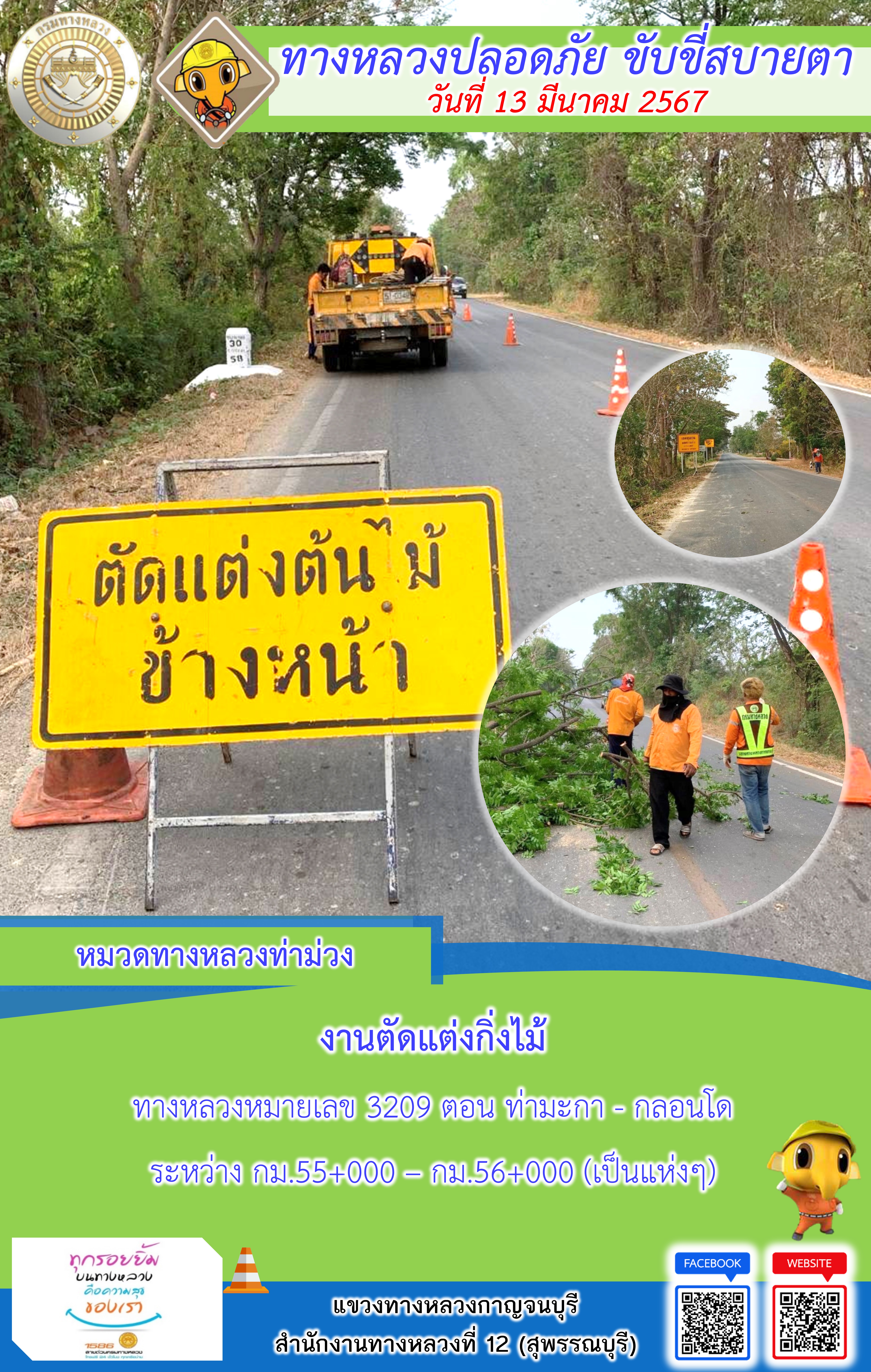 แขวงทางหลวงกาญจนบุรี โดยหมวดทางหลวงในสังกัดและงานอำนวยความปลอดภัย ปฏิบัติงาน ประจำวันที่ 13 มี.ค. 67
