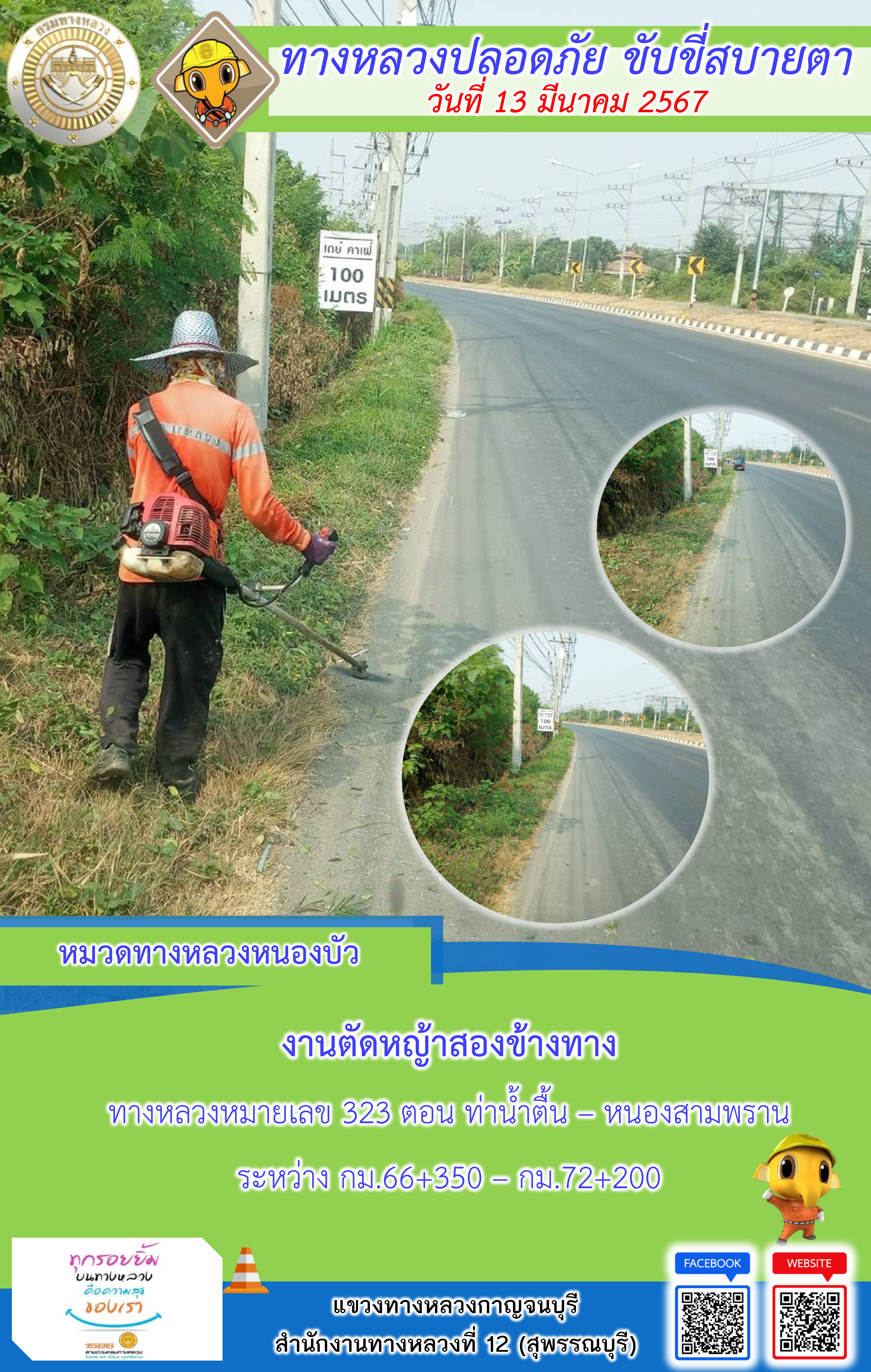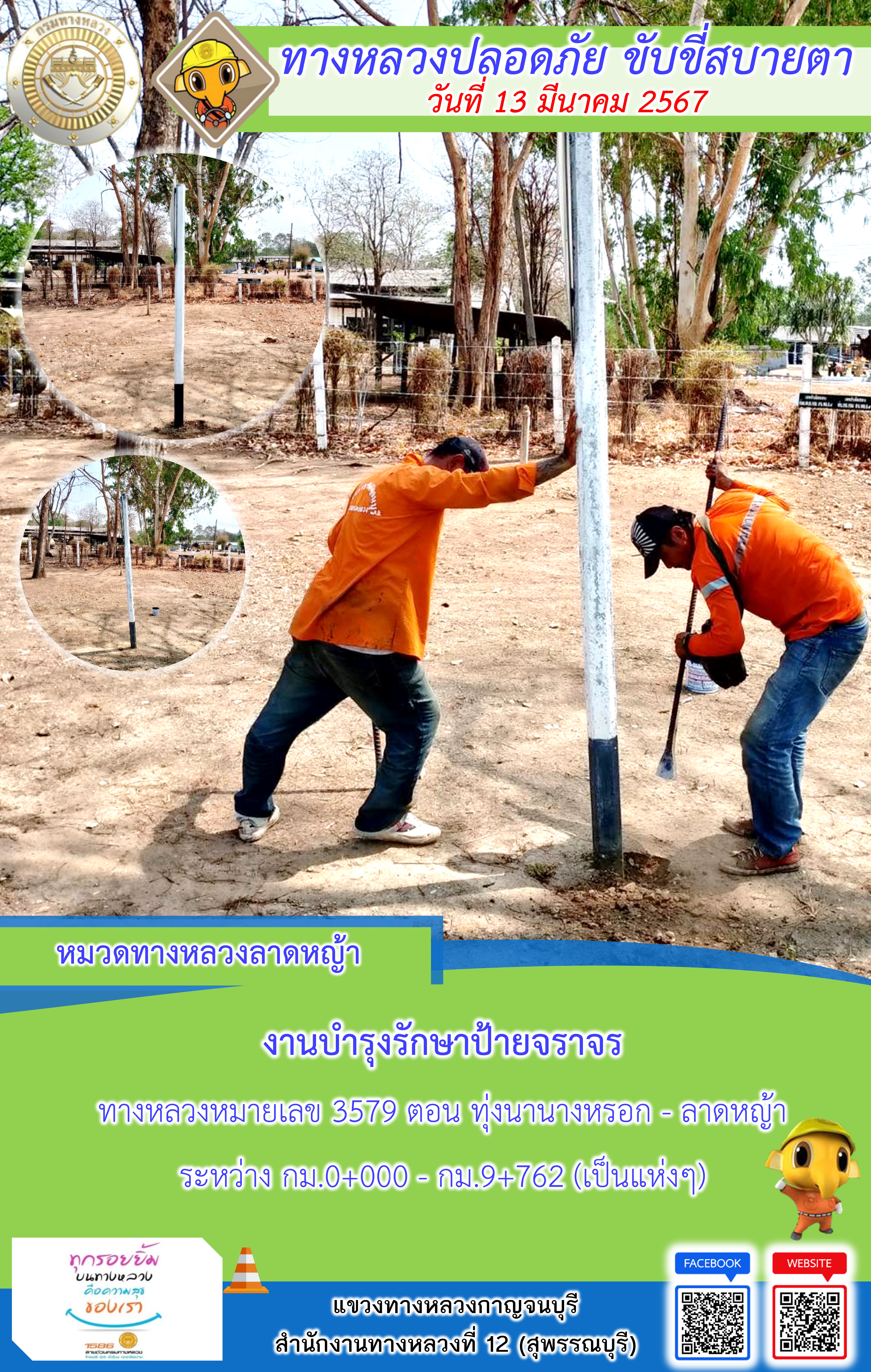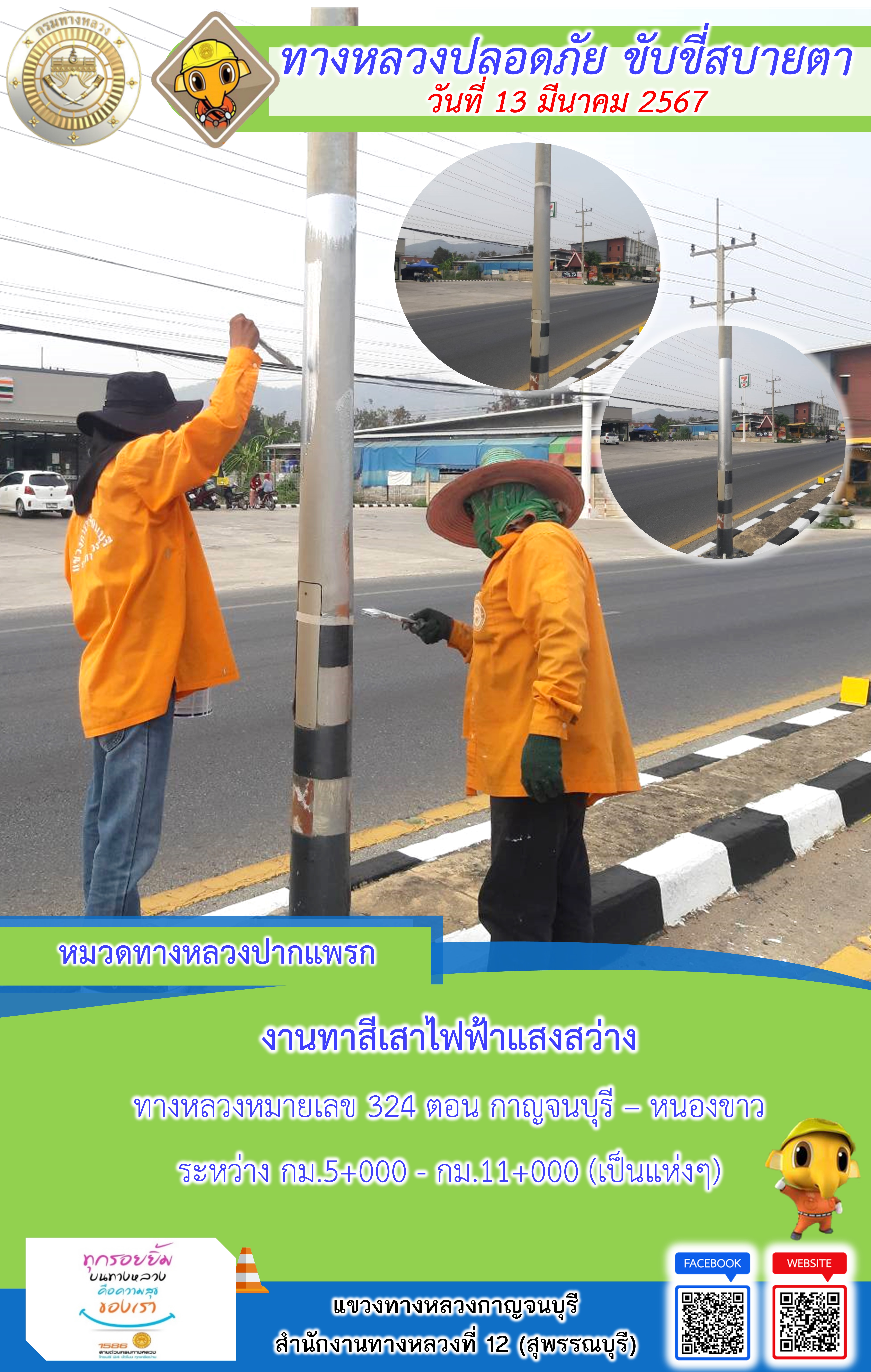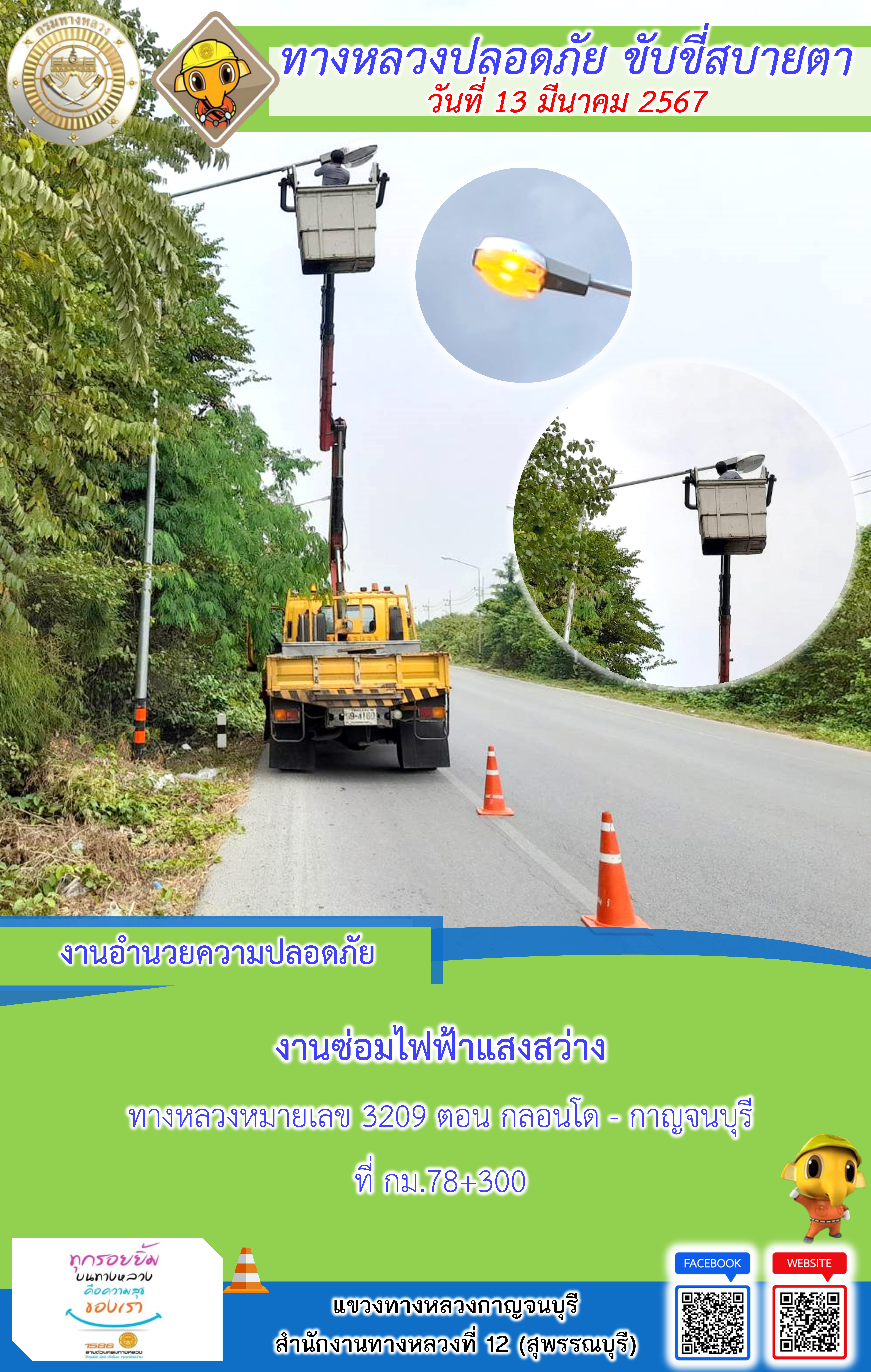 แขวงทางหลวงกาญจนบุรี โดยหมวดทางหลวงในสังกัดและงานอำนวยความปลอดภัย ปฏิบัติงาน ประจำวันที่ 13 มี.ค. 67