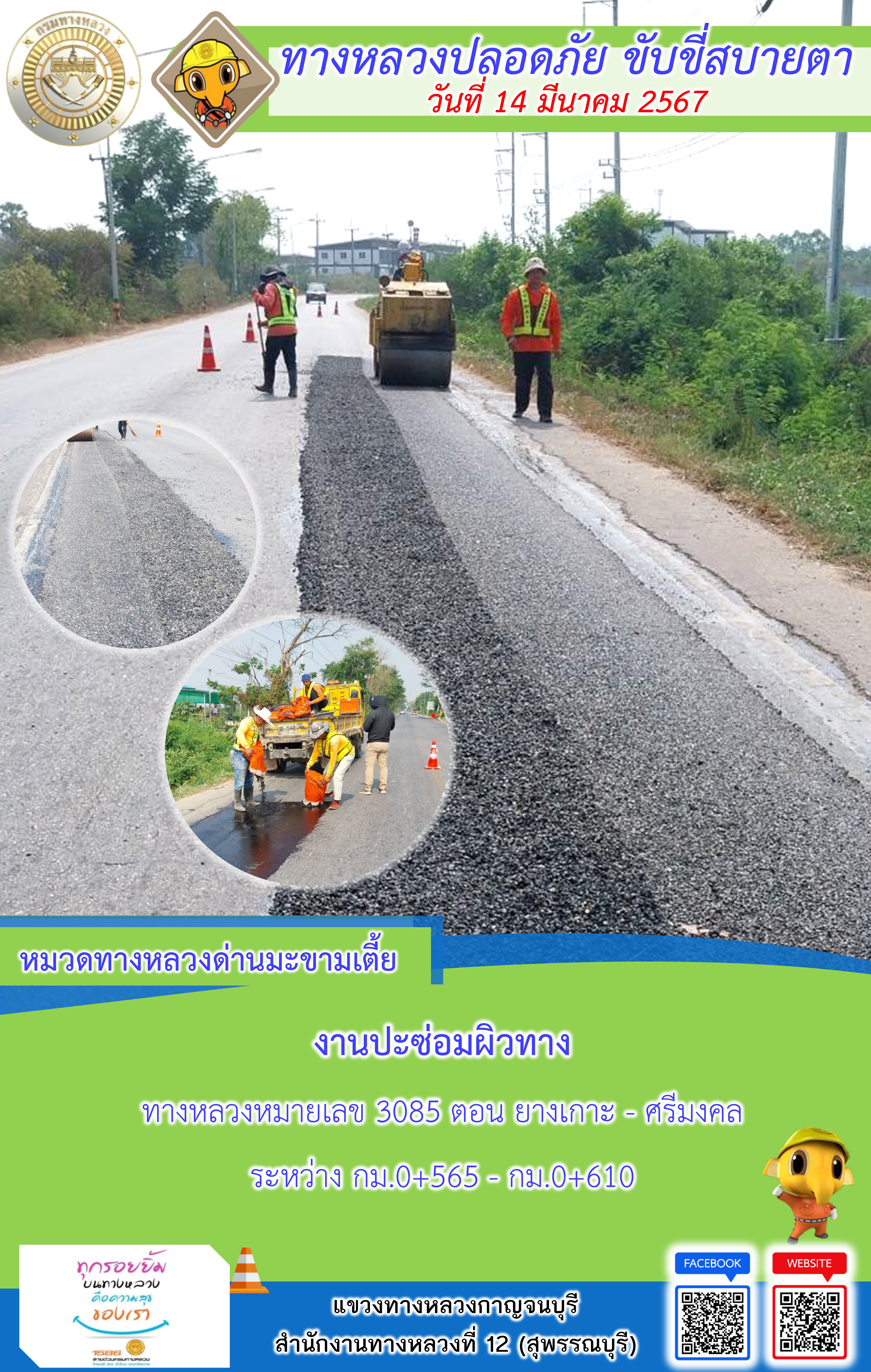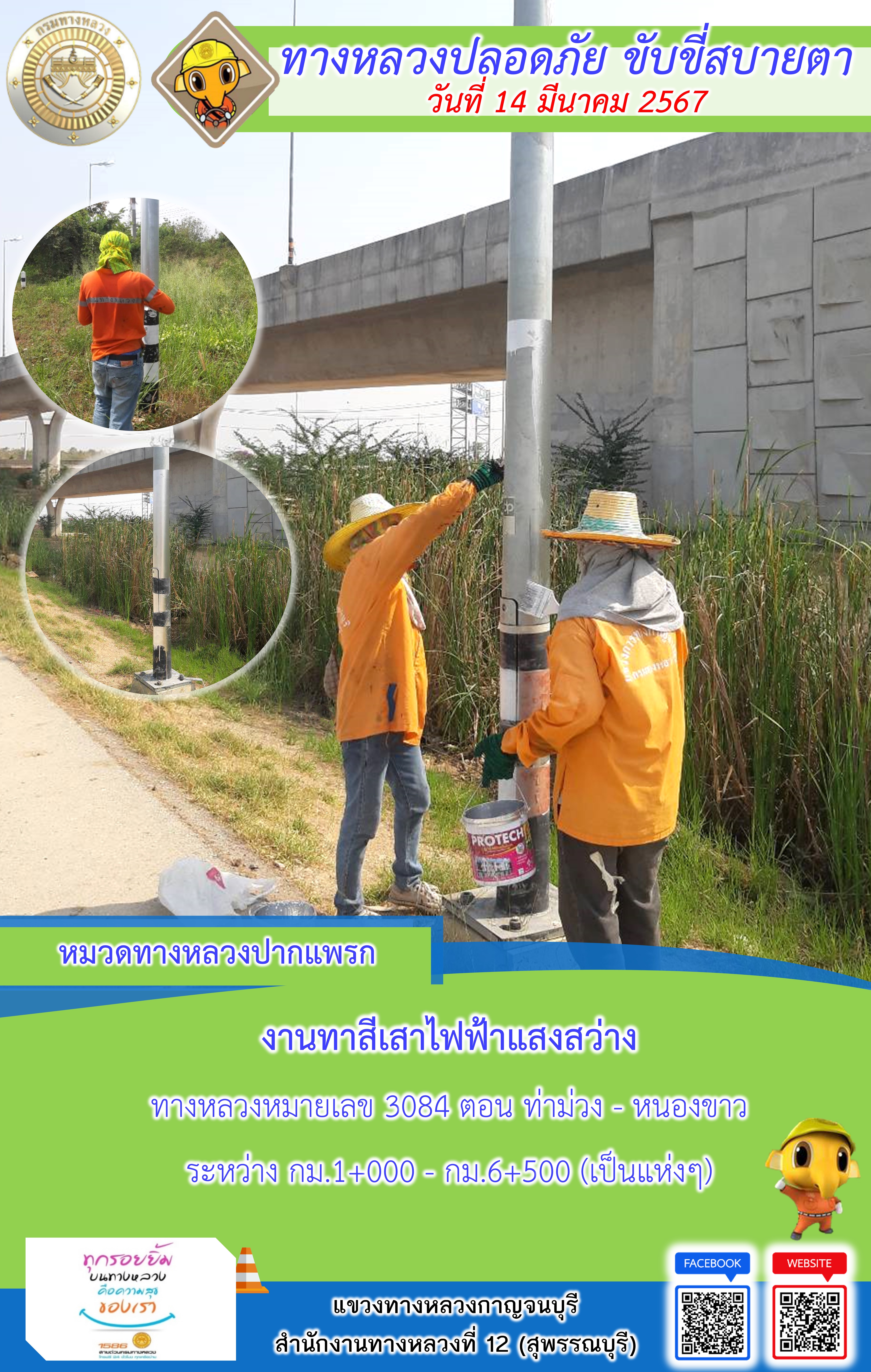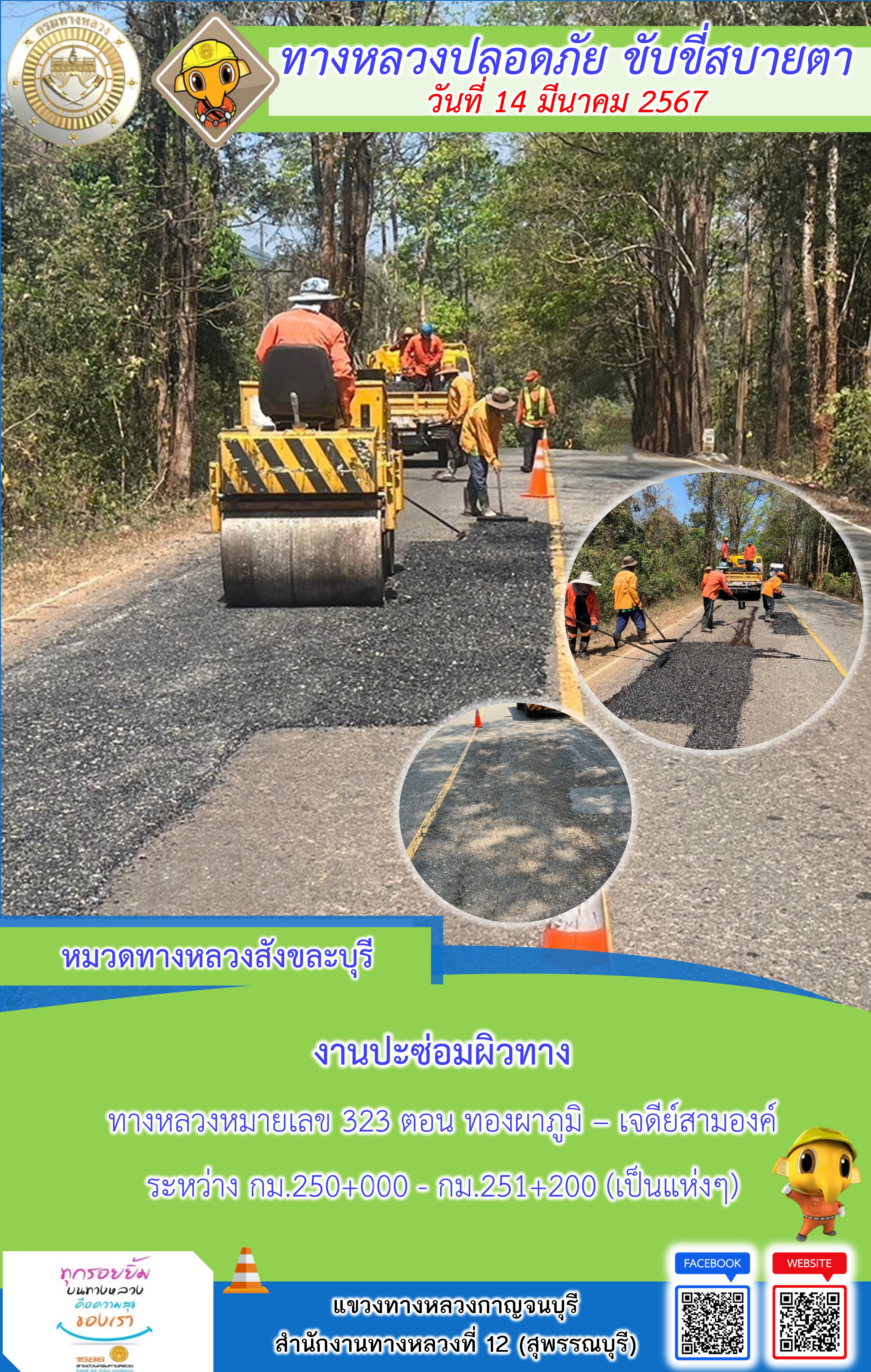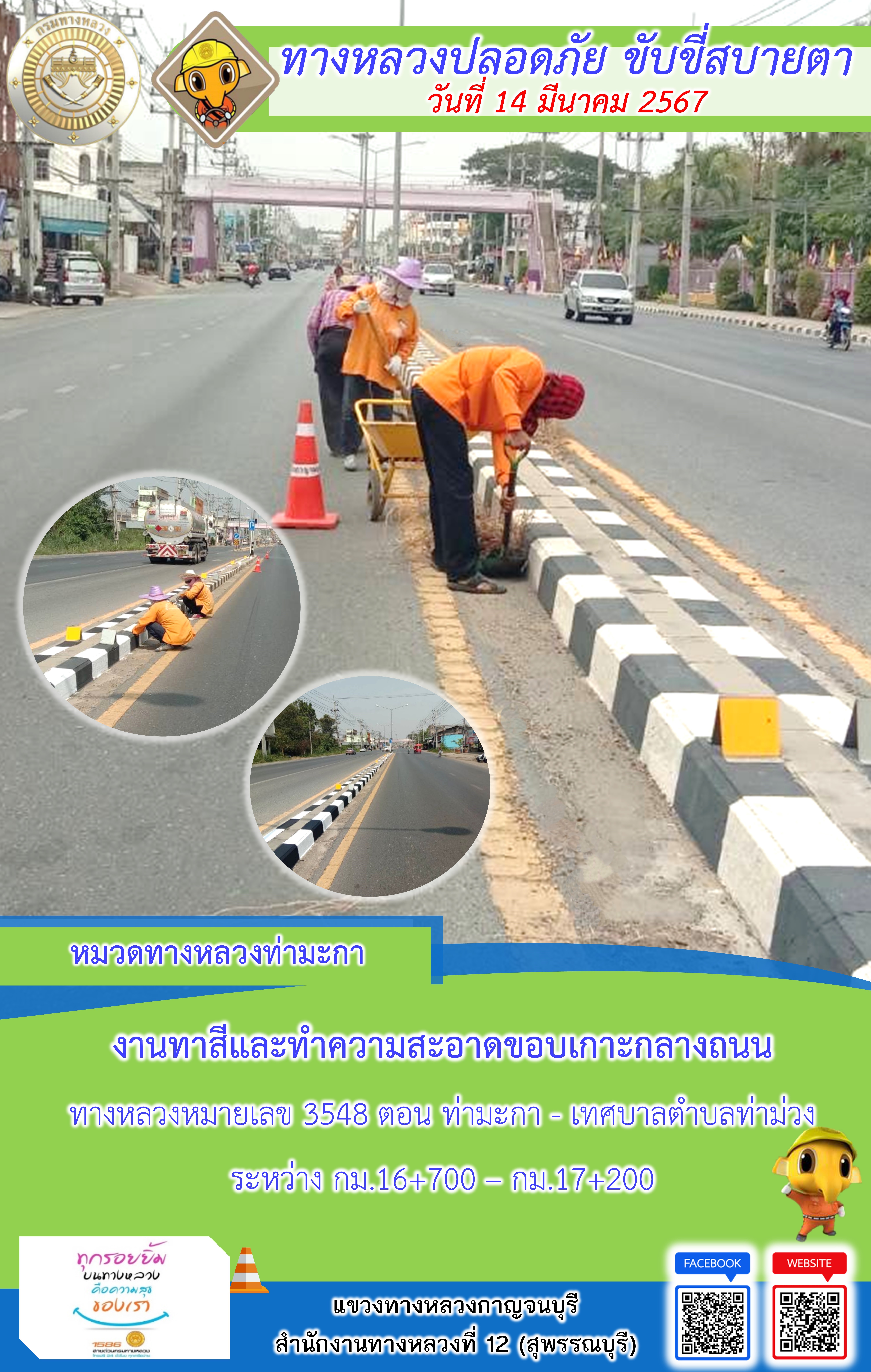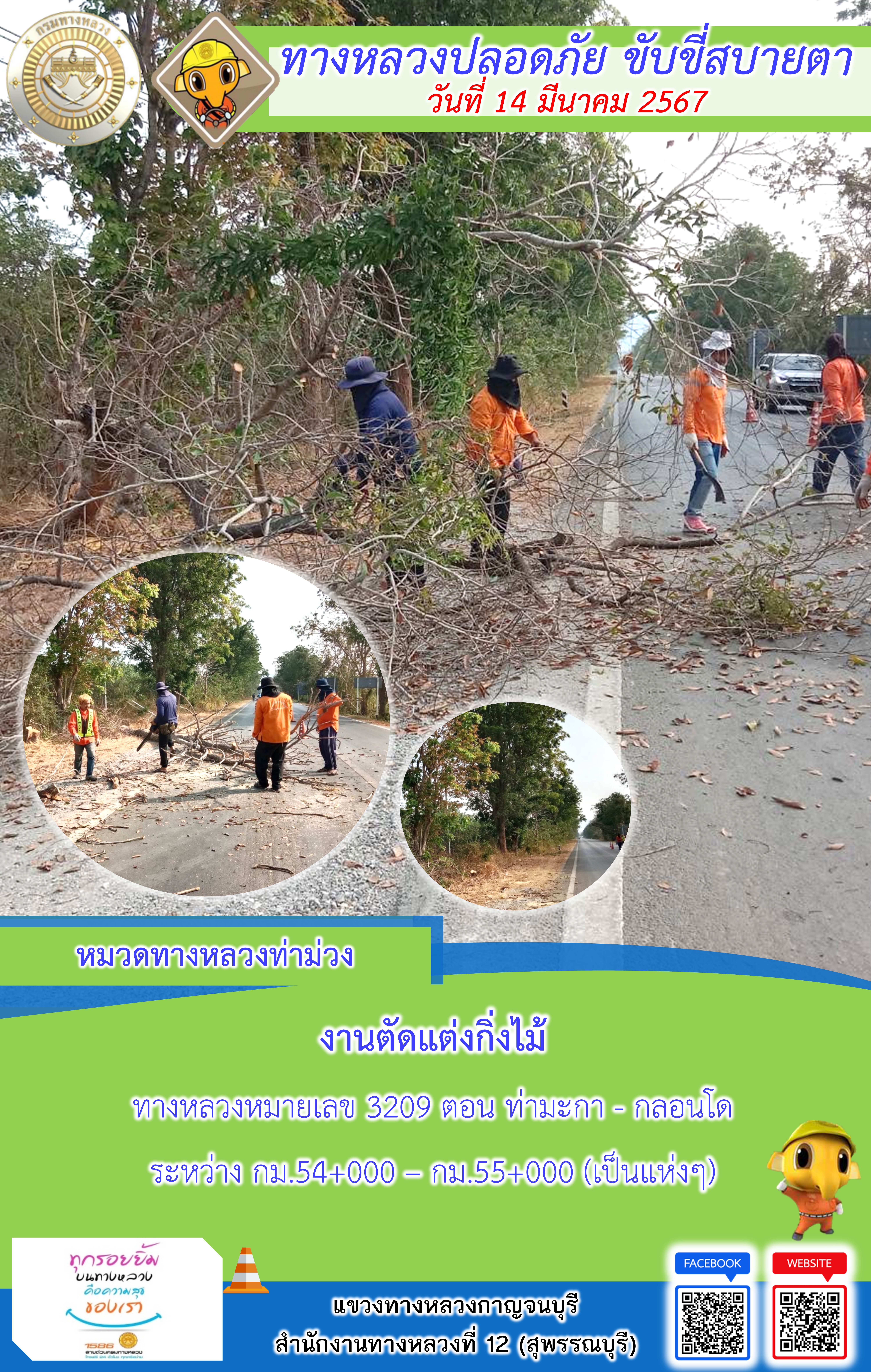 แขวงทางหลวงกาญจนบุรี โดยหมวดทางหลวงในสังกัดและงานอำนวยความปลอดภัย ปฏิบัติงาน ประจำวันที่ 14 มี.ค. 67