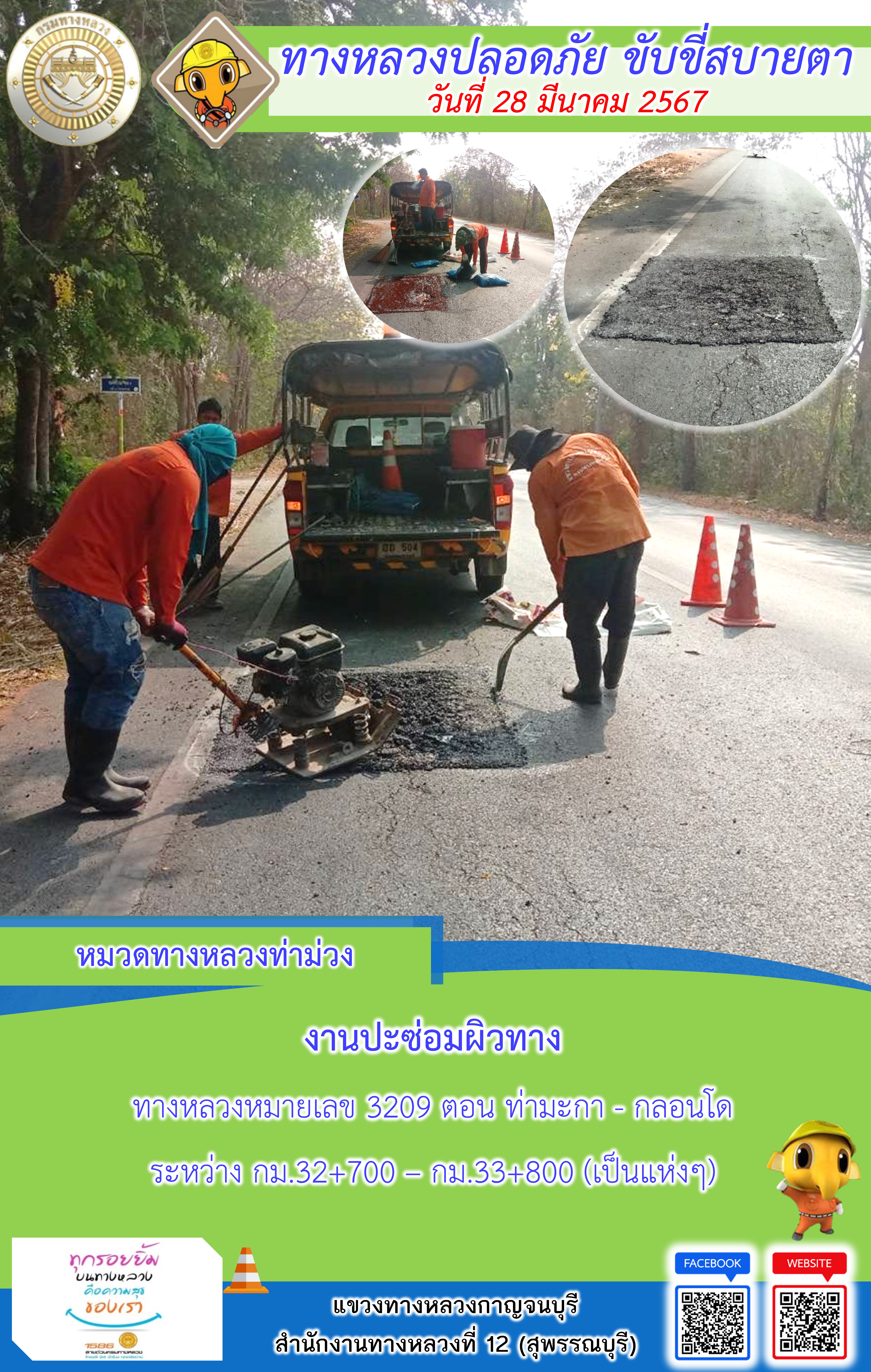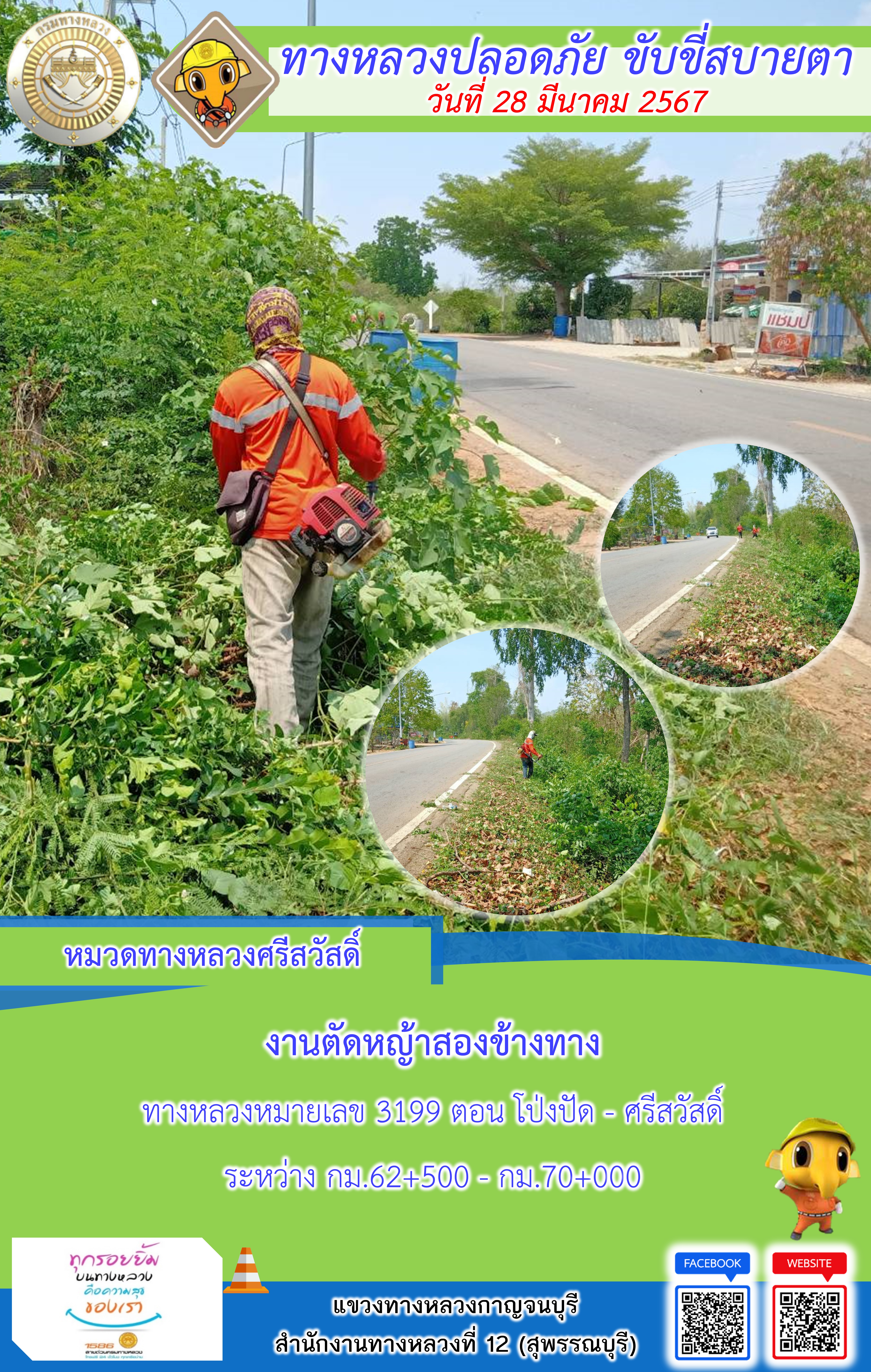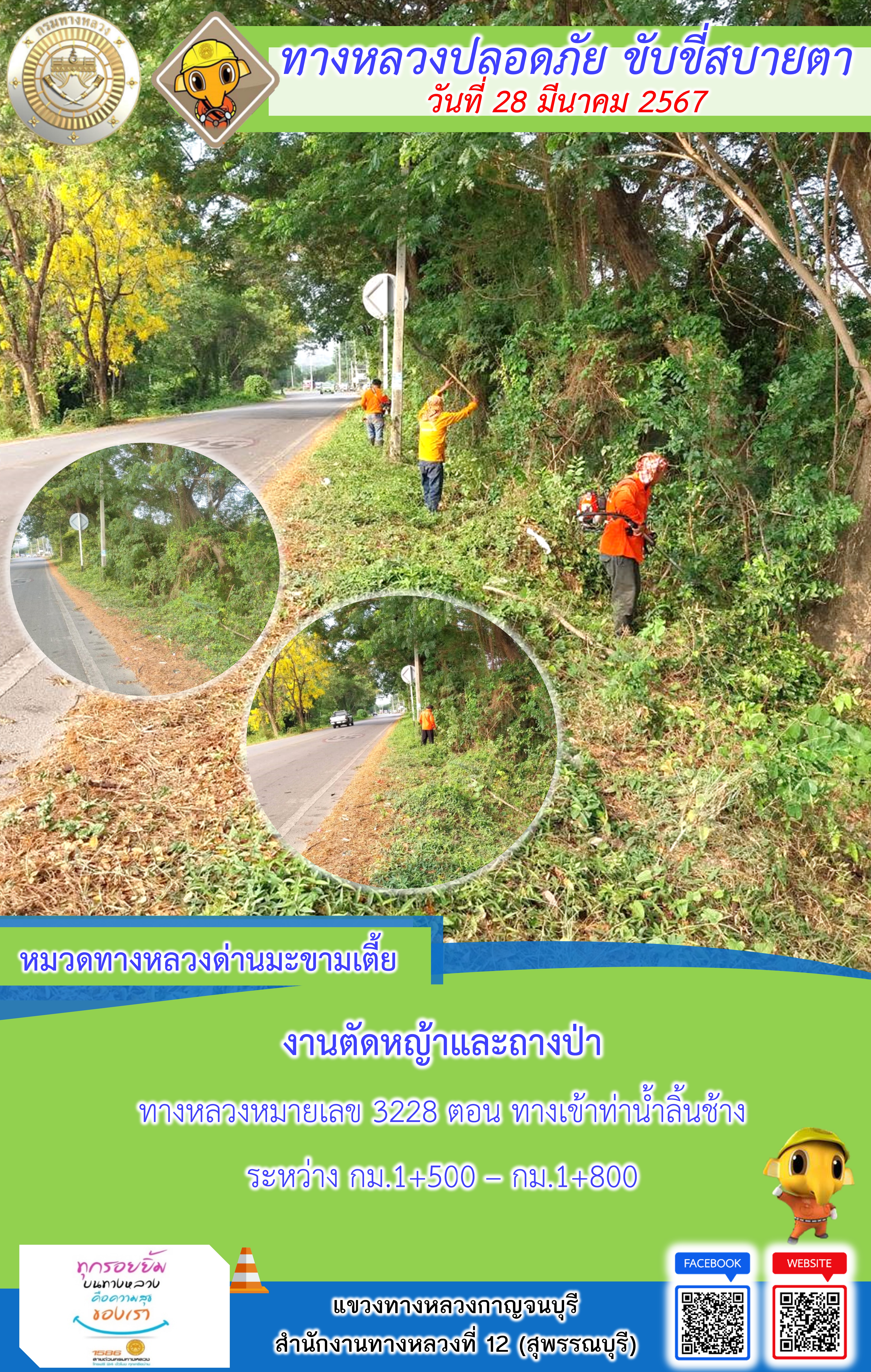 แขวงทางหลวงกาญจนบุรี โดยหมวดทางหลวงในสังกัดและงานอำนวยความปลอดภัย ปฏิบัติงาน ประจำวันที่ 28 มี.ค. 67