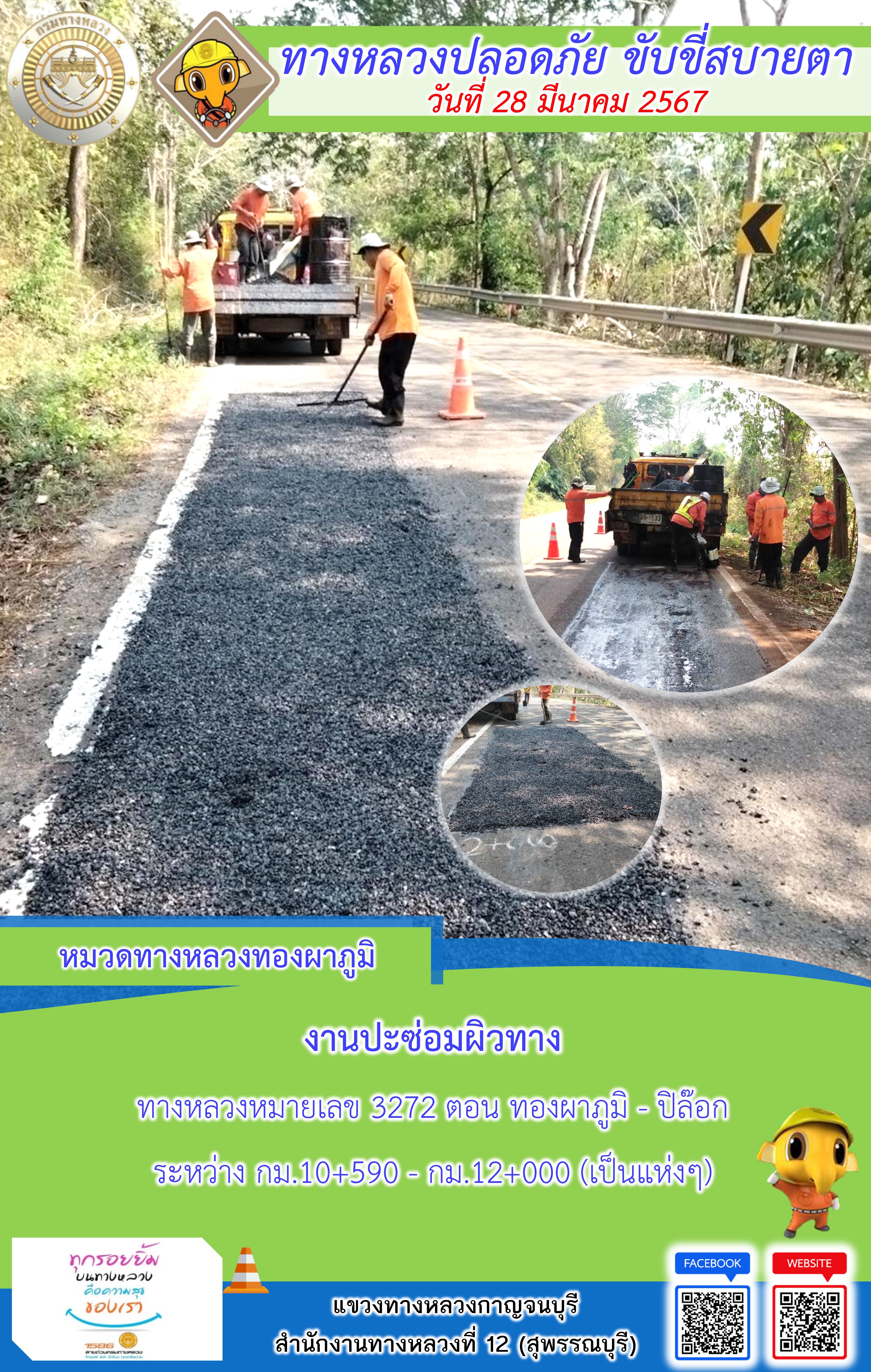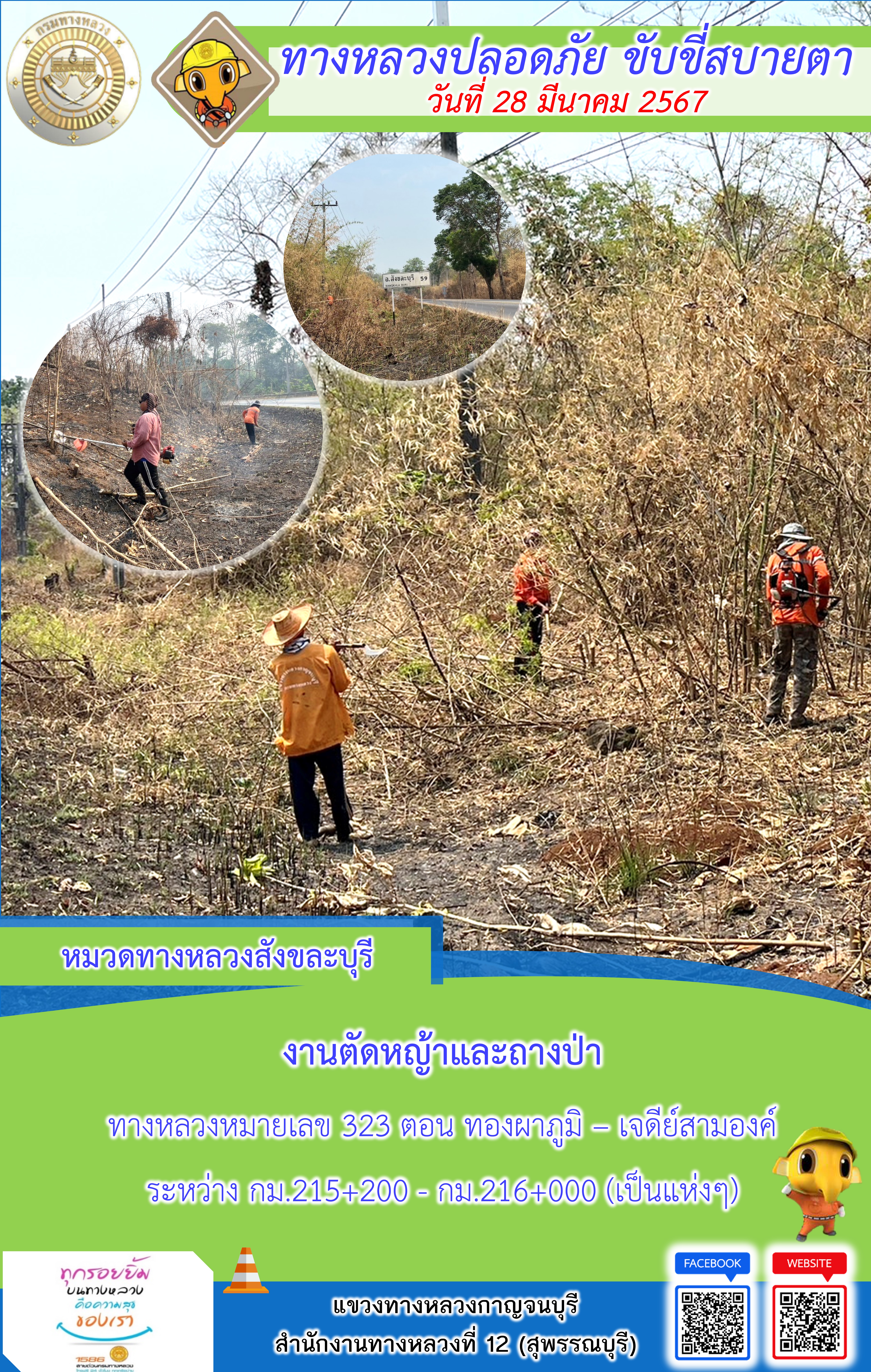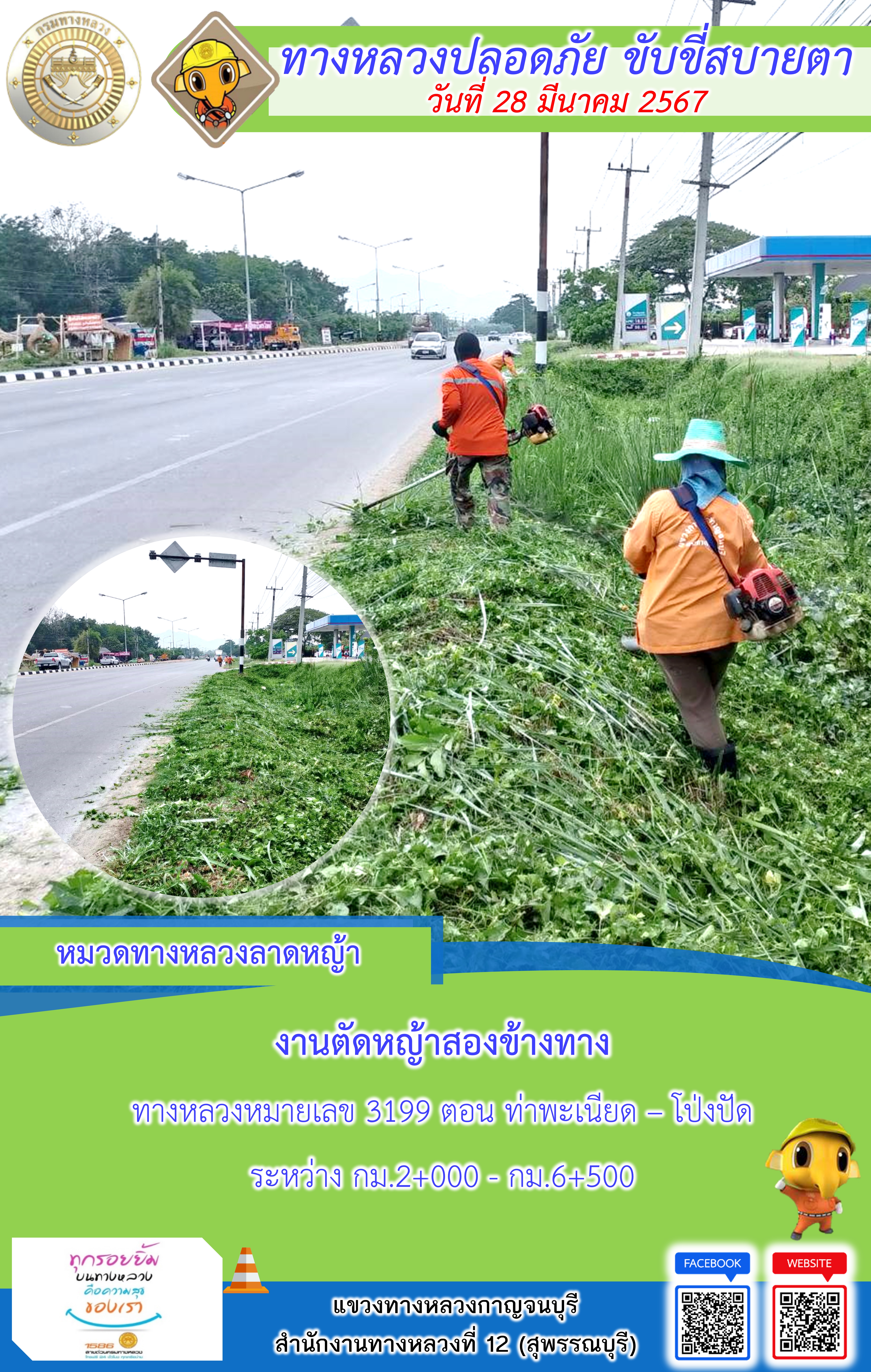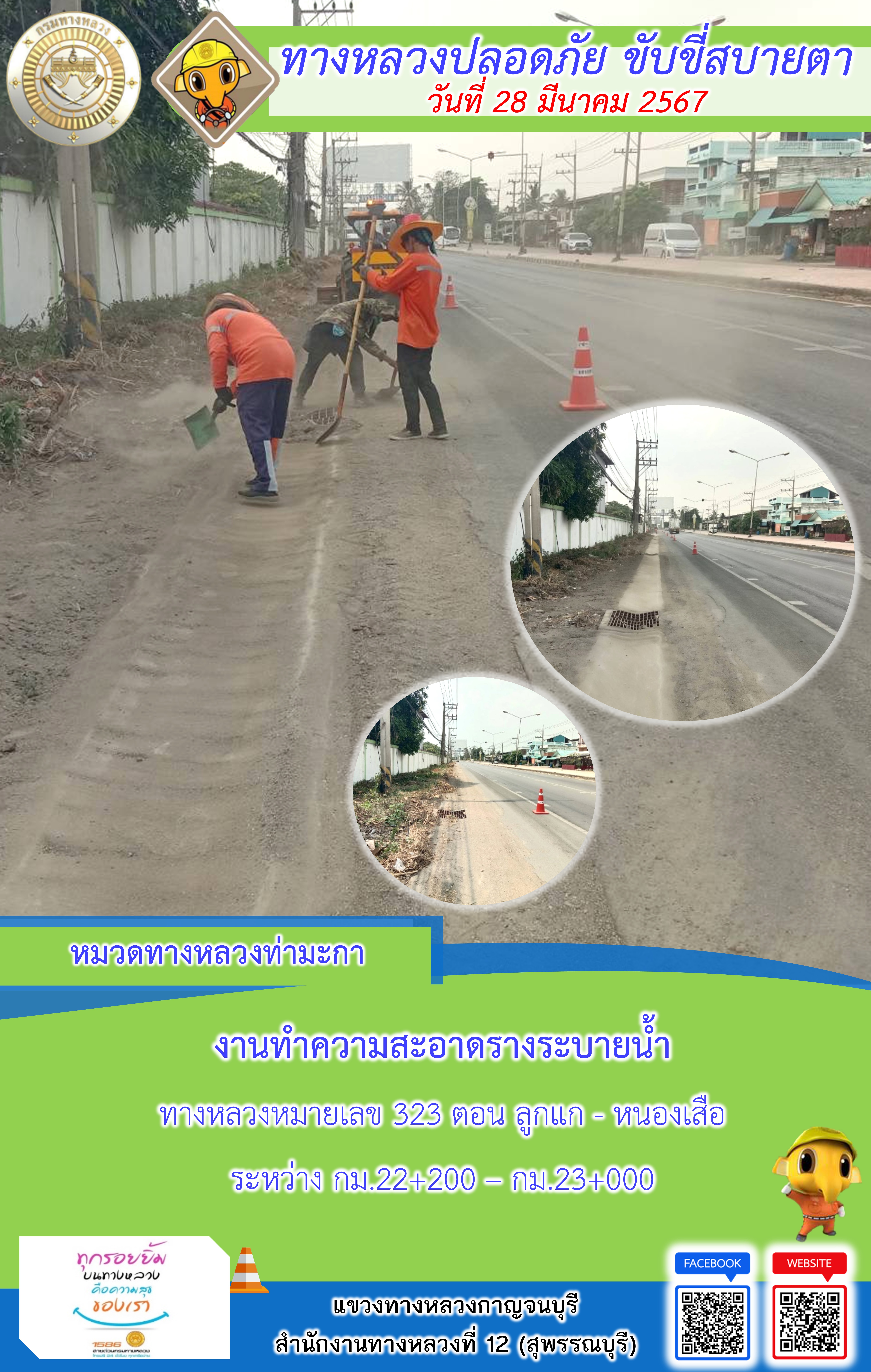แขวงทางหลวงกาญจนบุรี โดยหมวดทางหลวงในสังกัดและงานอำนวยความปลอดภัย ปฏิบัติงาน ประจำวันที่ 28 มี.ค. 67