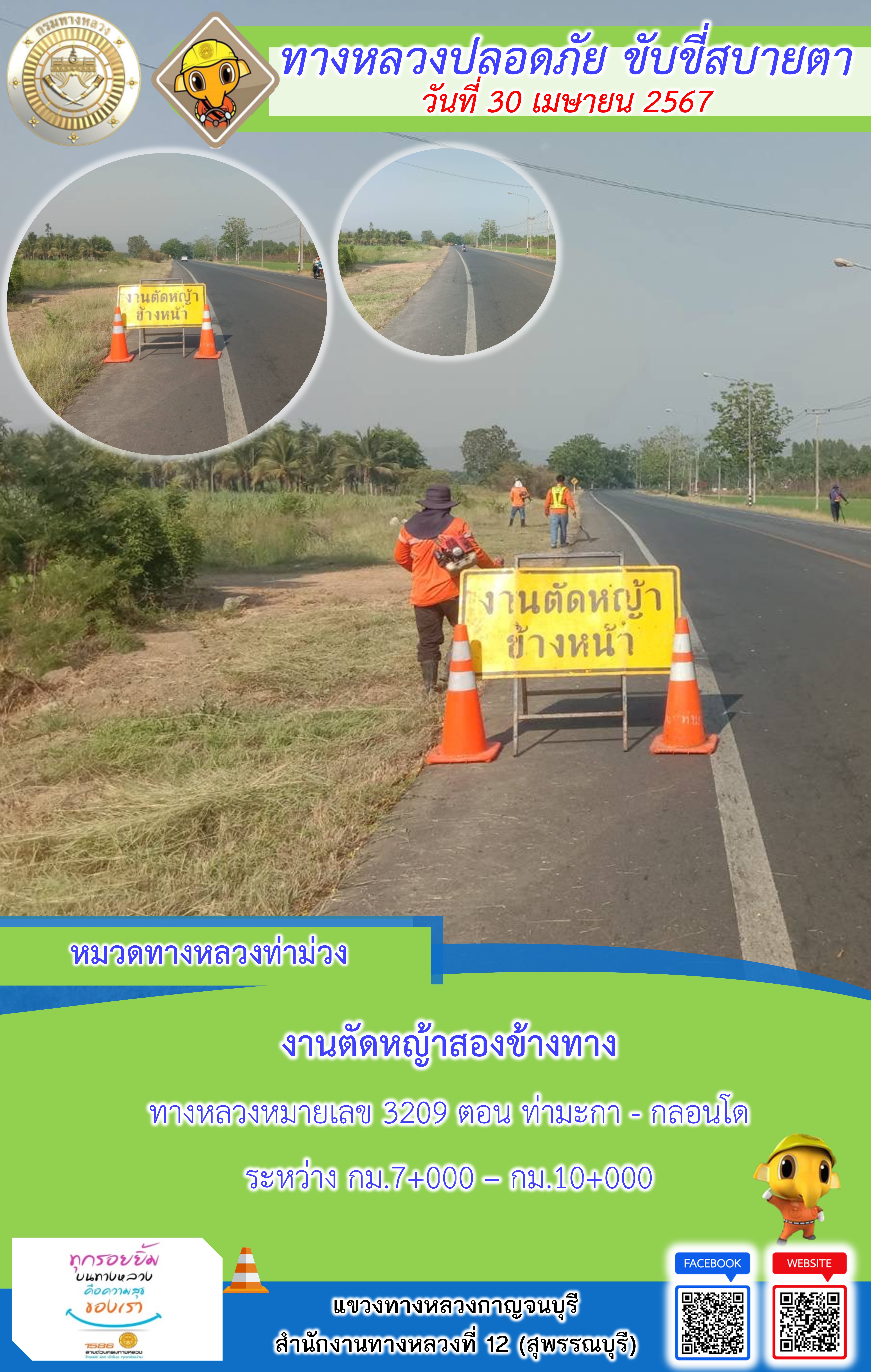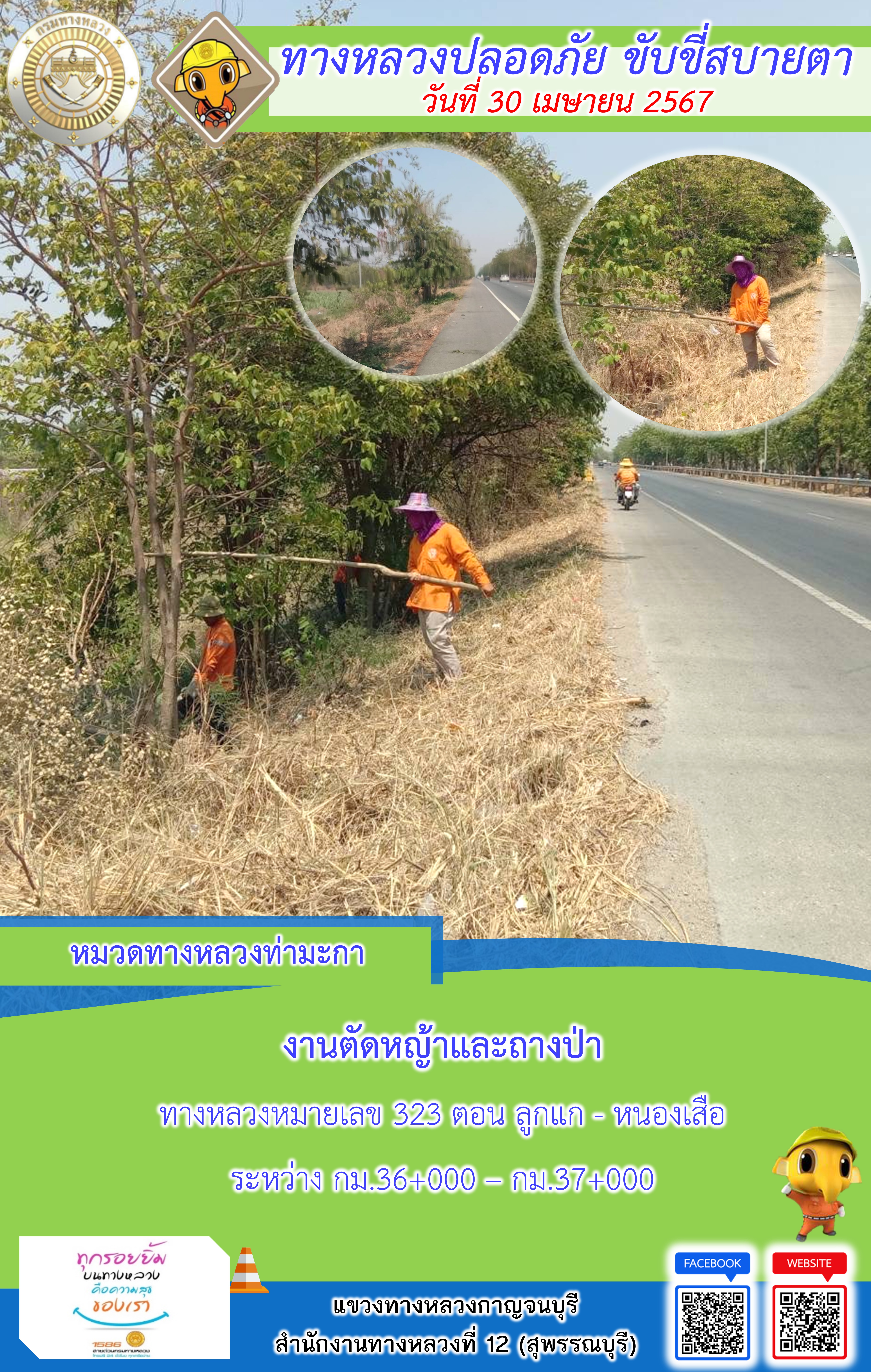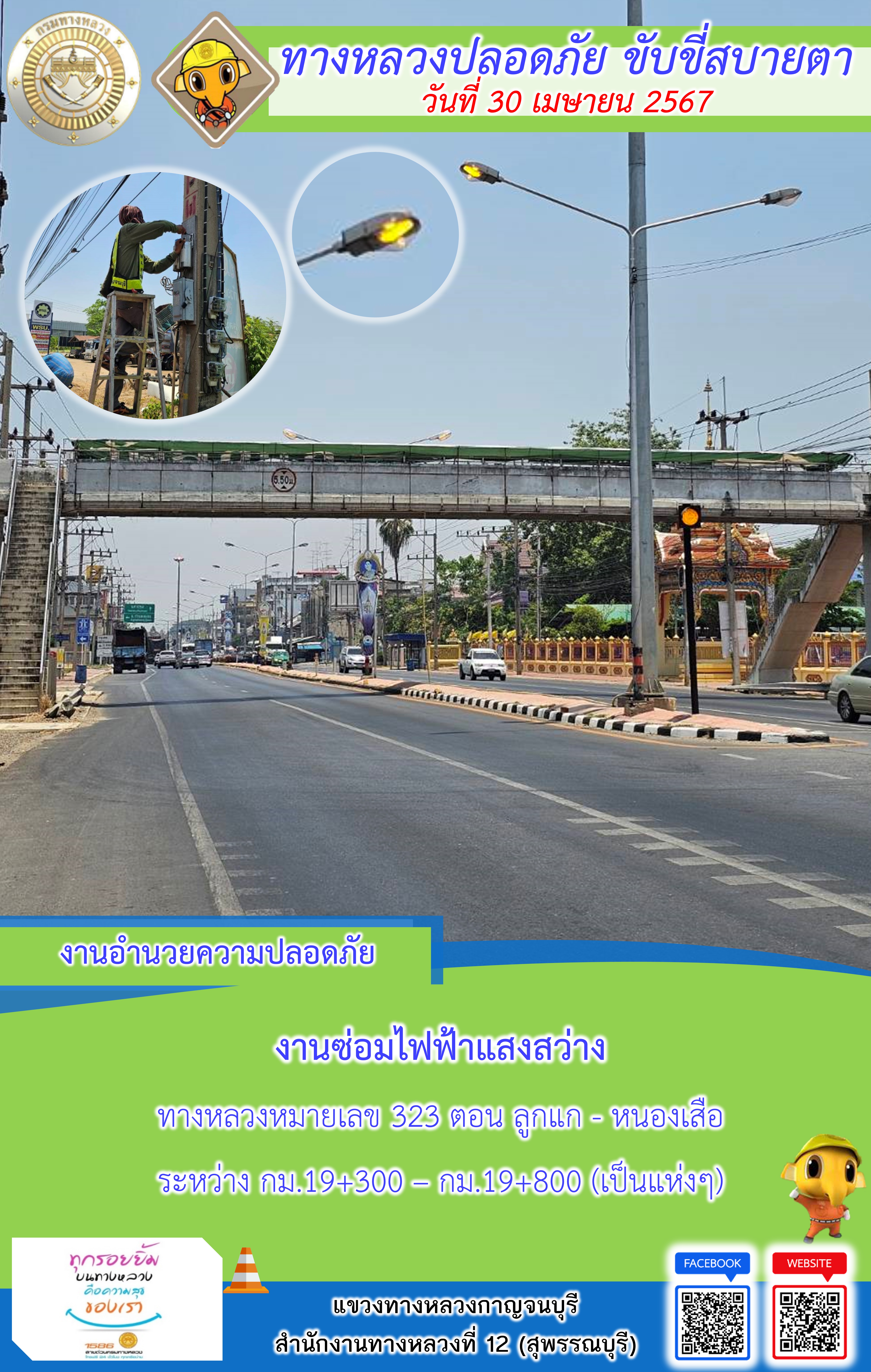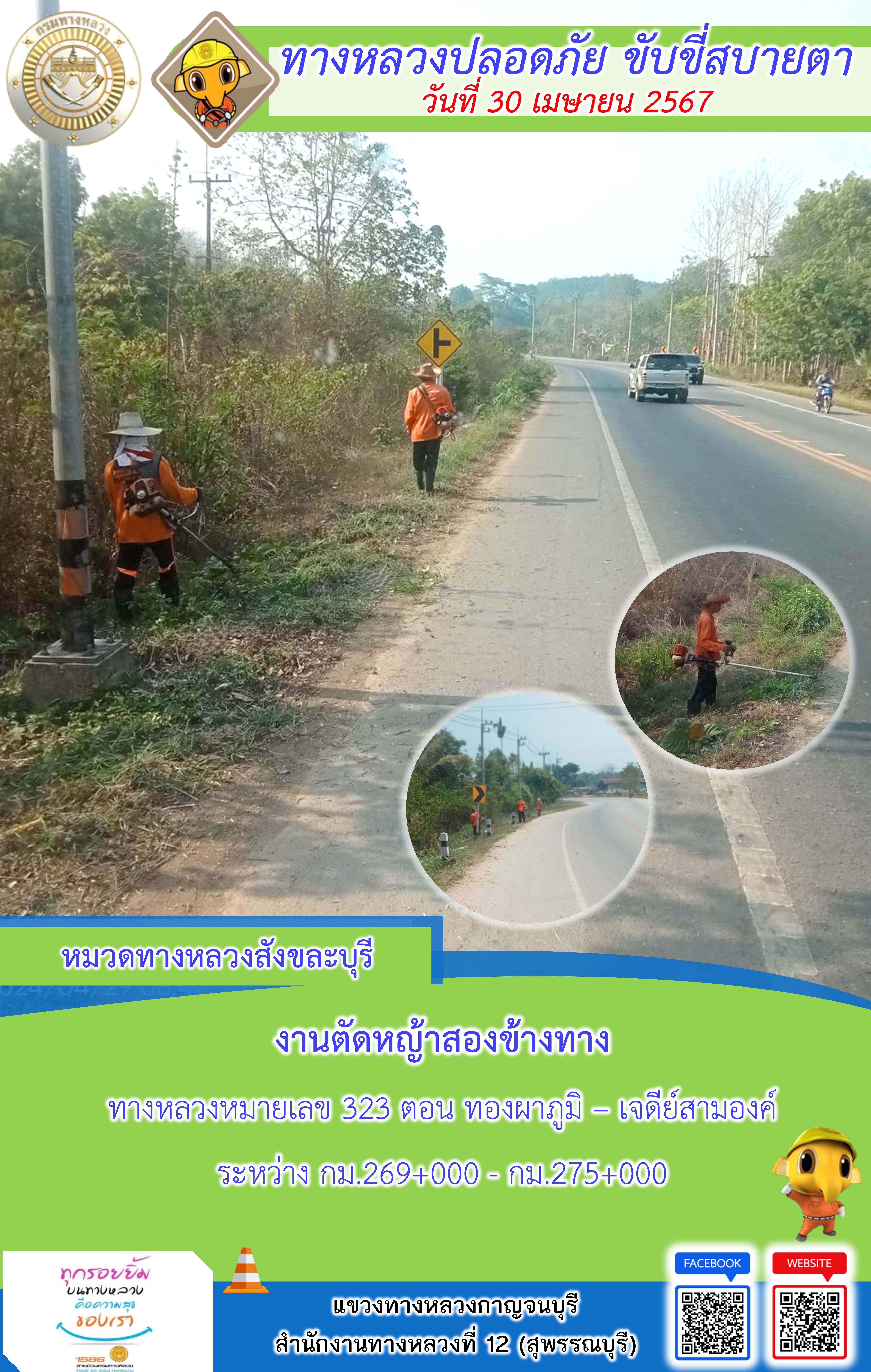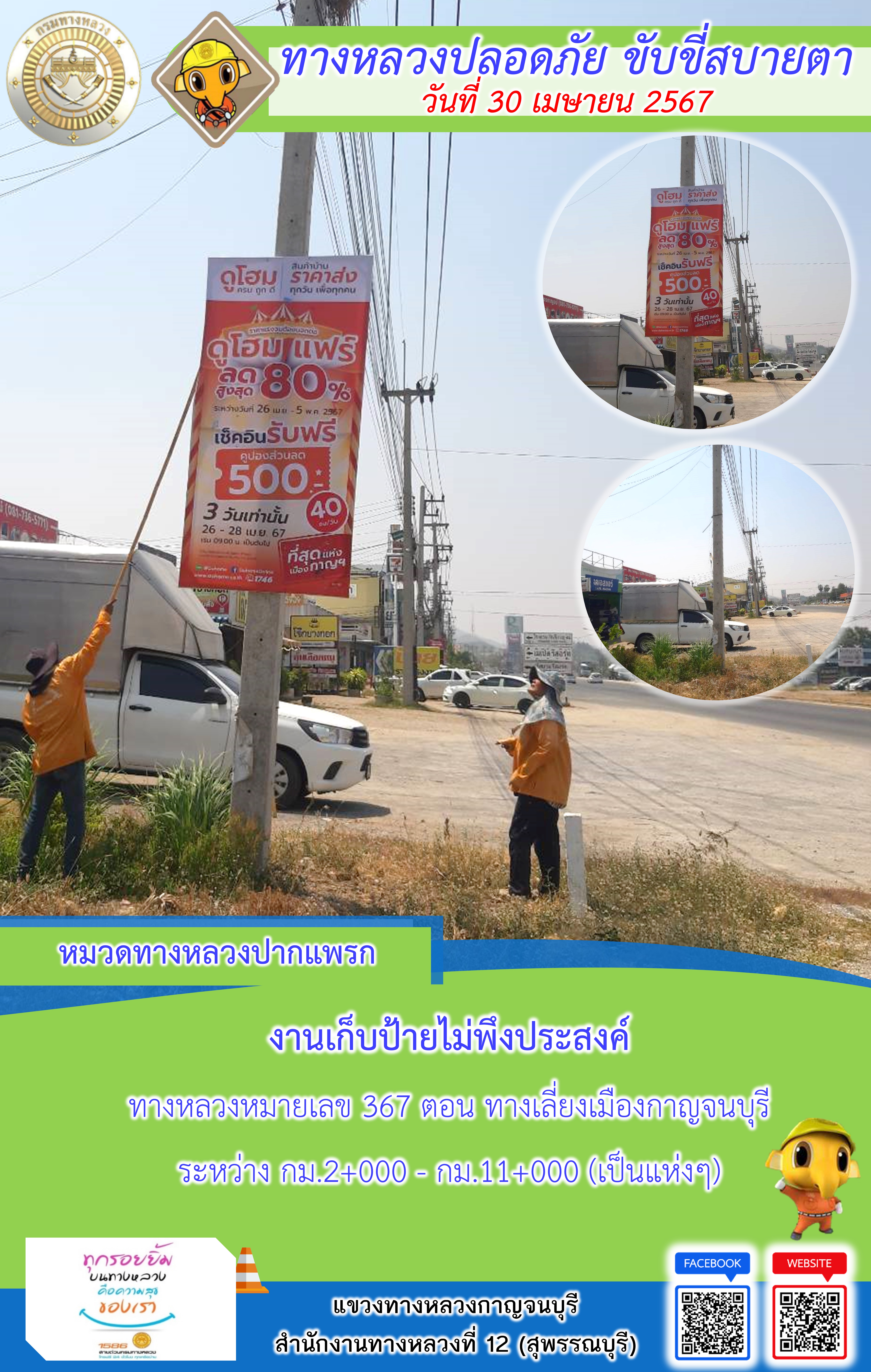 แขวงทางหลวงกาญจนบุรี โดยหมวดทางหลวงในสังกัดและงานอำนวยความปลอดภัย ปฏิบัติงาน ประจำวันที่ 30 เม.ย. 67