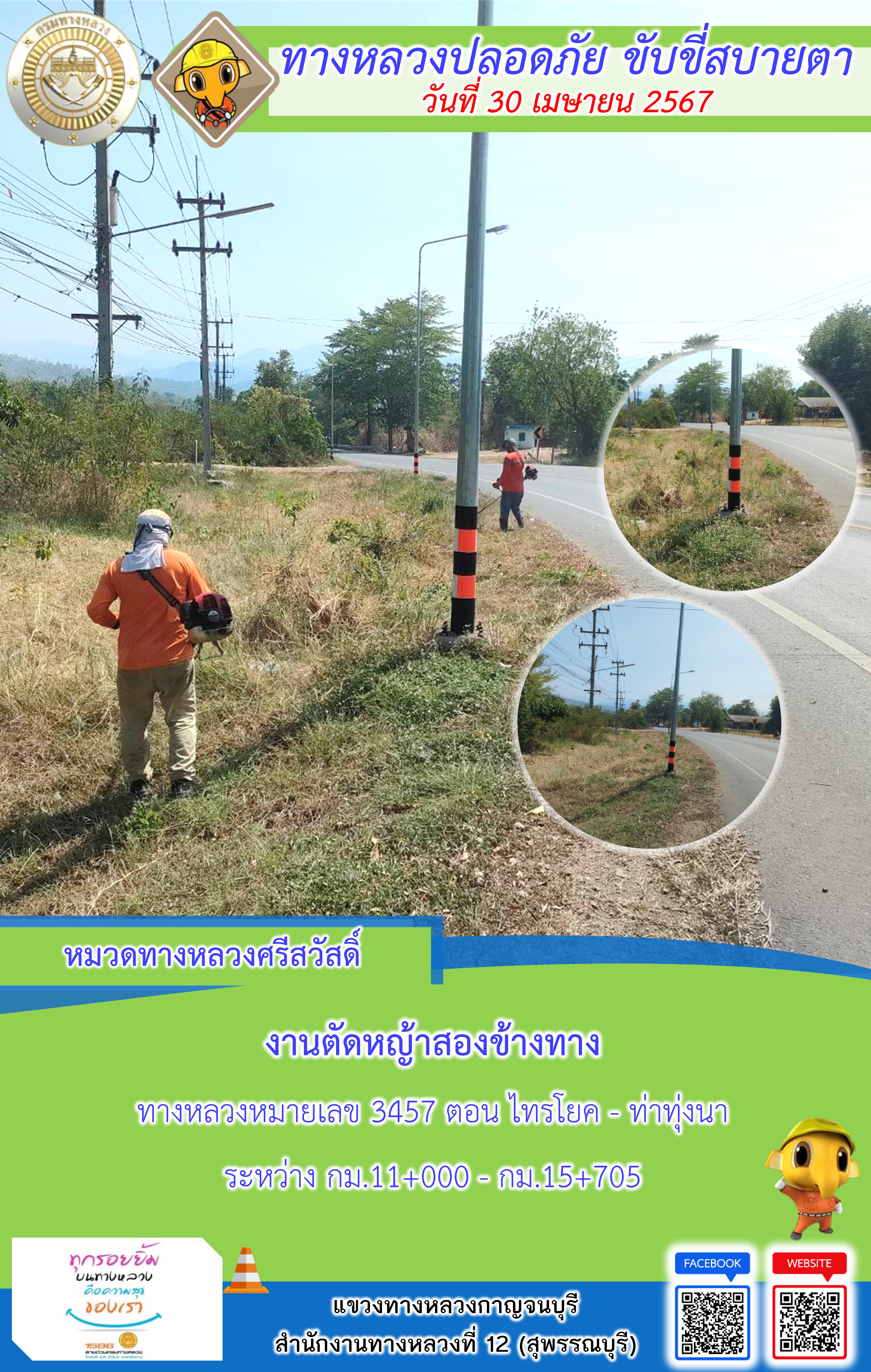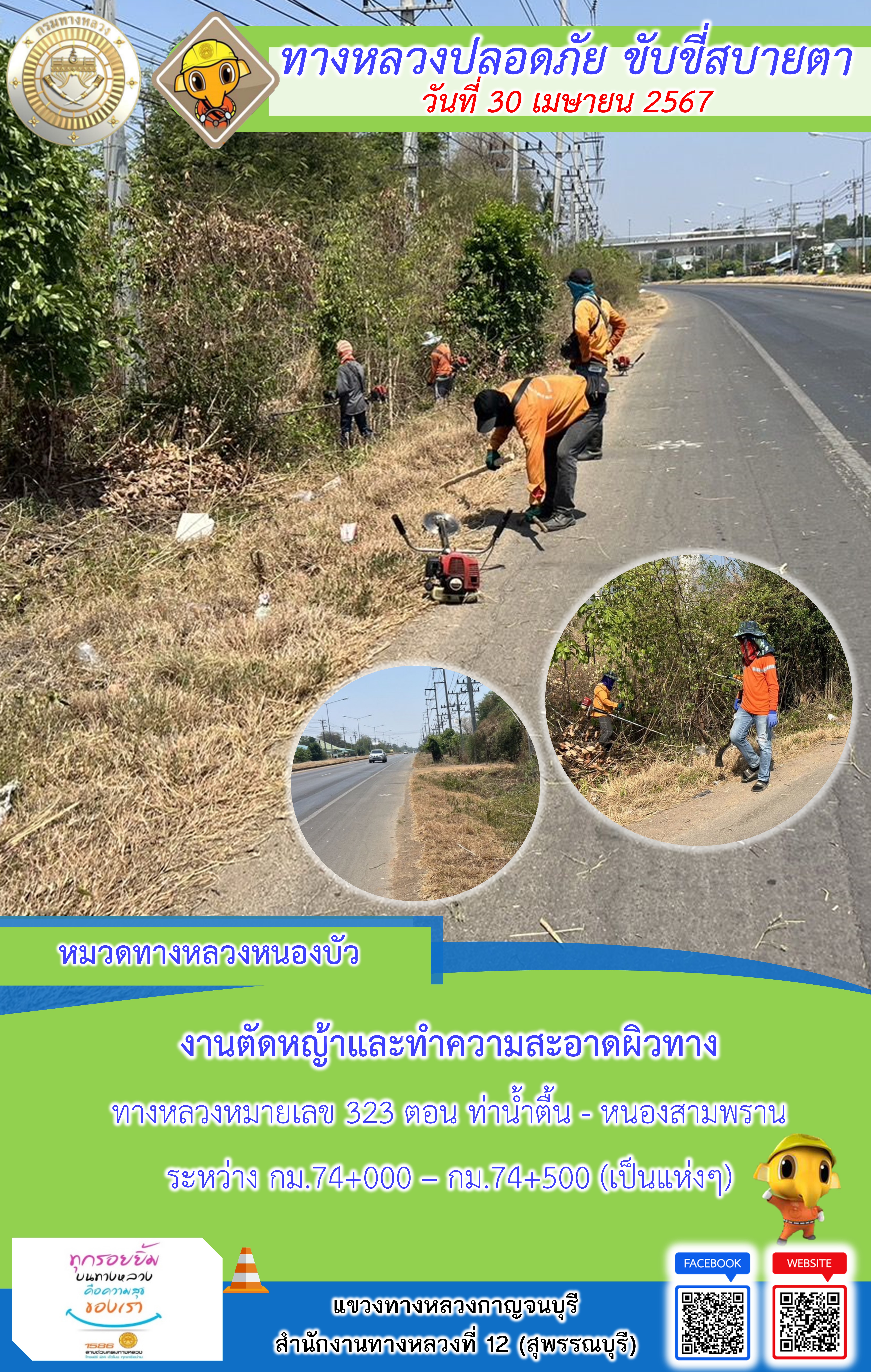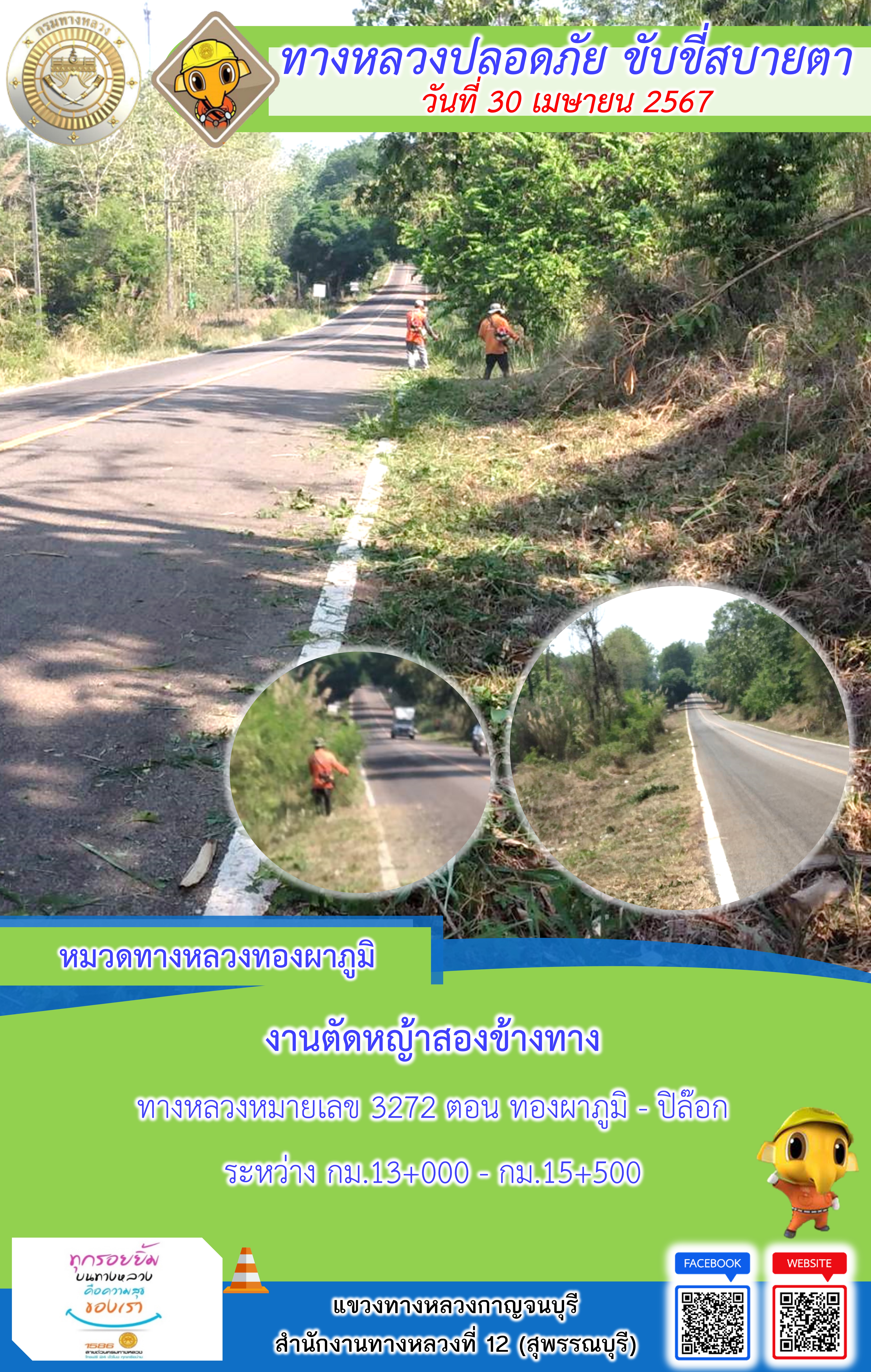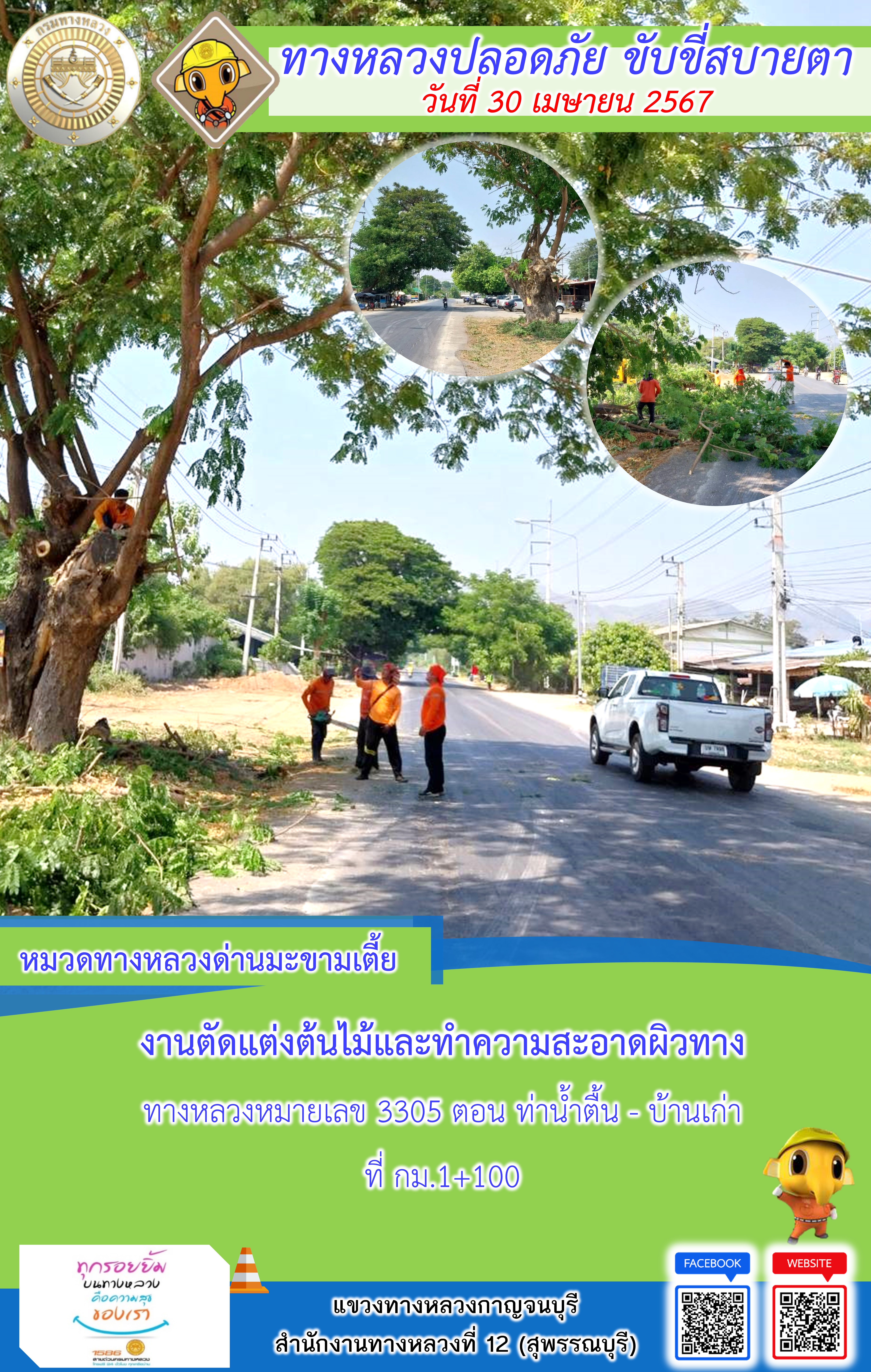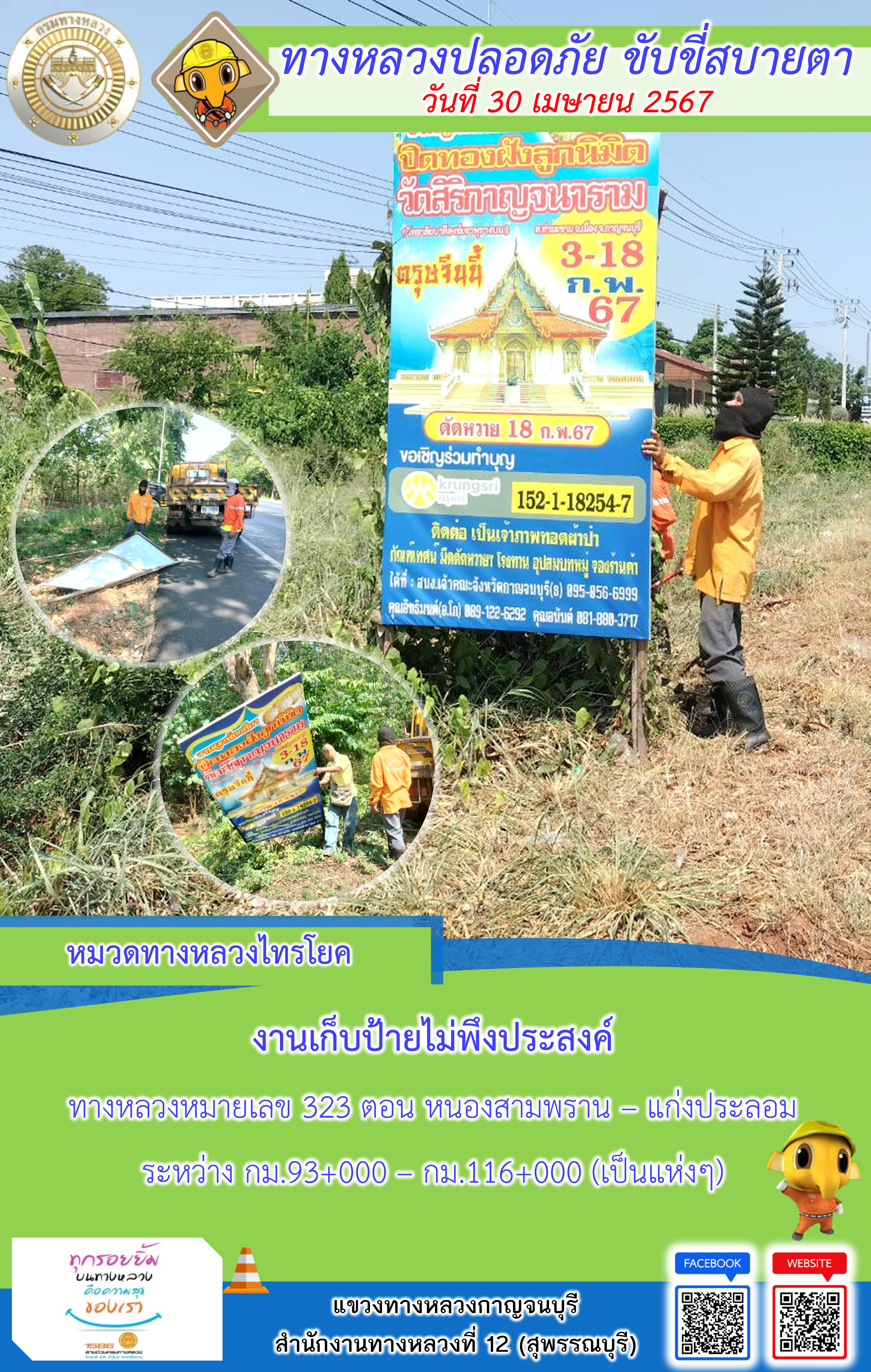แขวงทางหลวงกาญจนบุรี โดยหมวดทางหลวงในสังกัดและงานอำนวยความปลอดภัย ปฏิบัติงาน ประจำวันที่ 30 เม.ย. 67
