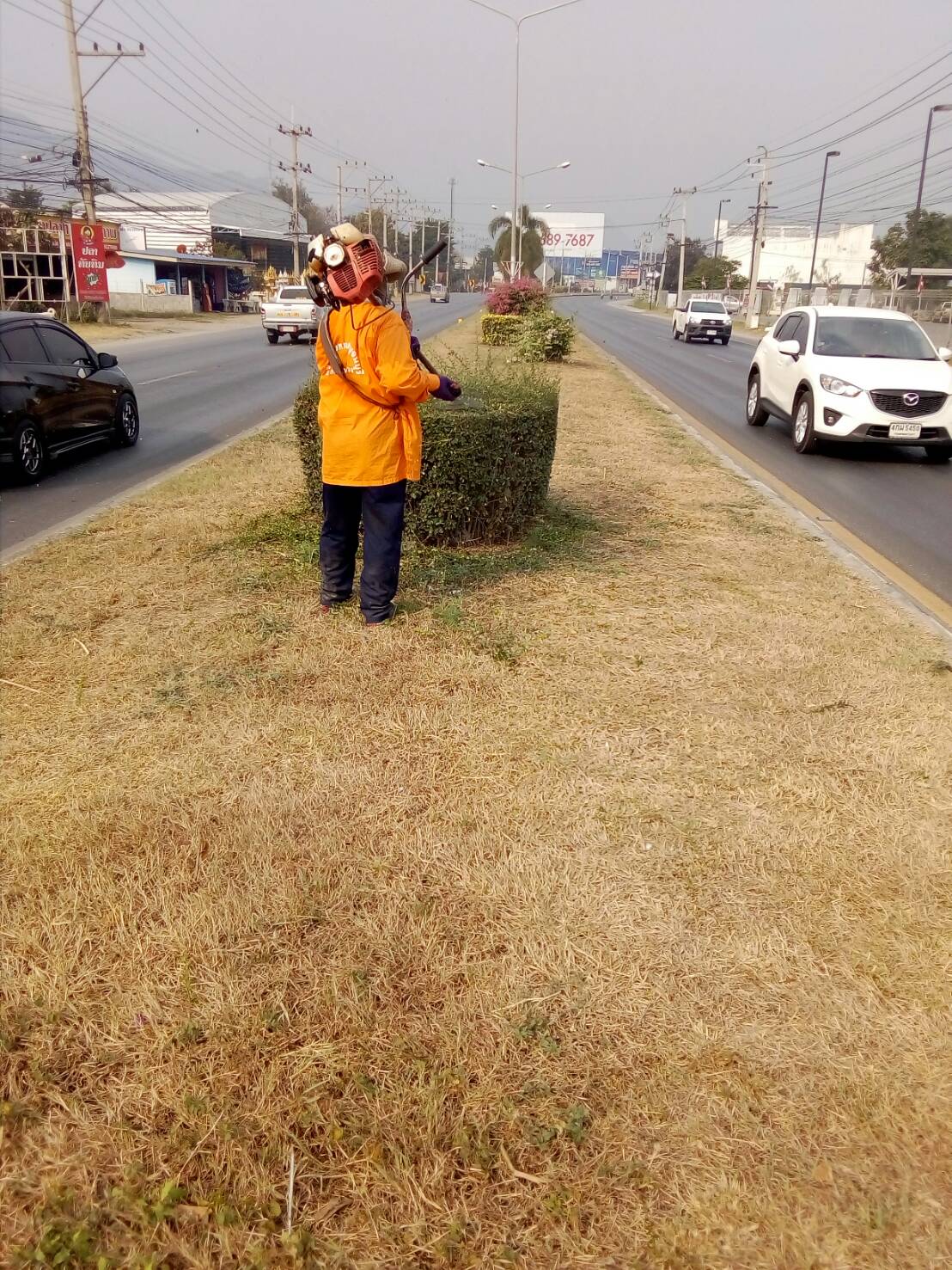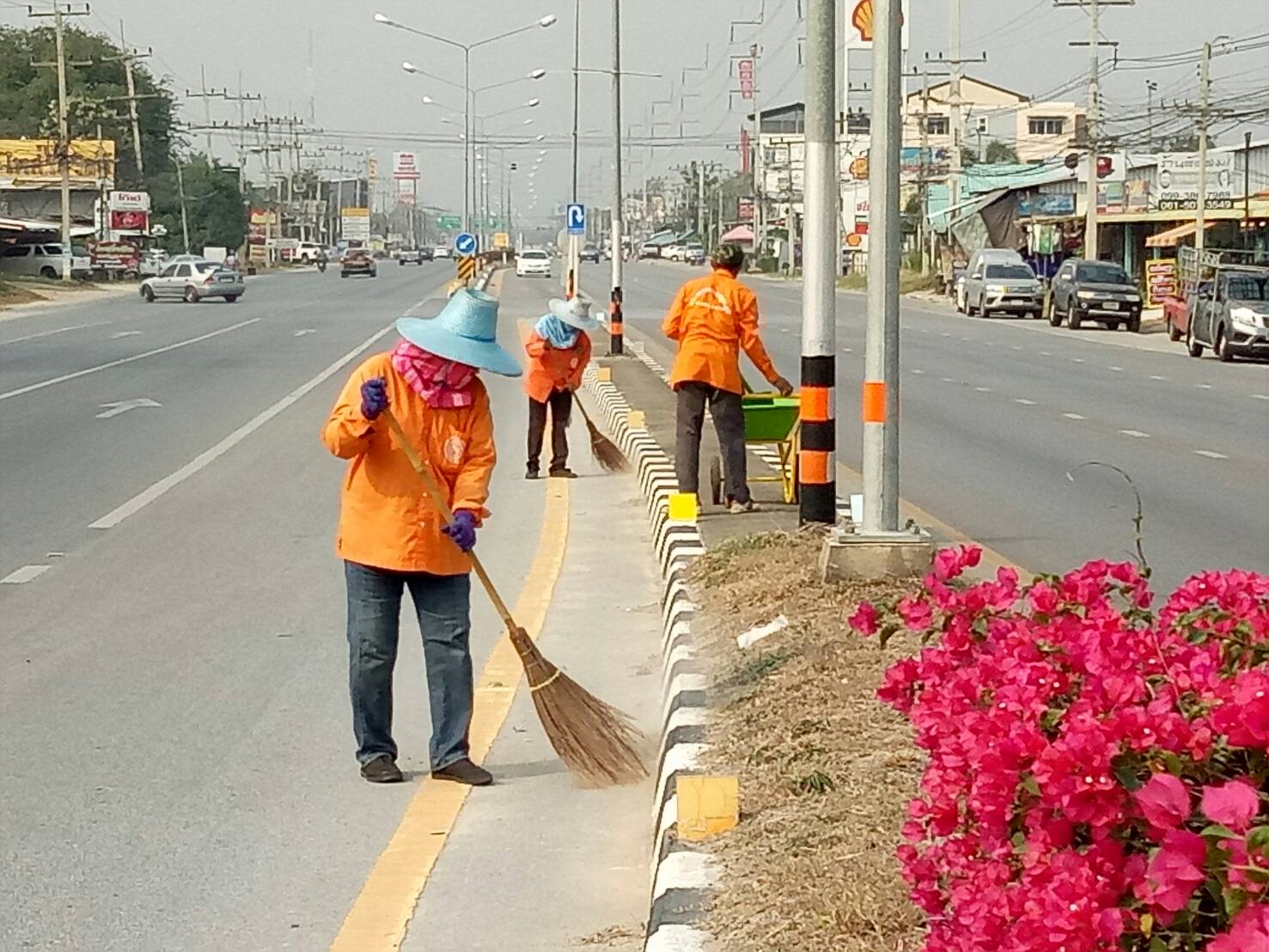 3.ทำความสะอาดบริเวณรอบเกาะกลาง ทางหลวงหมายเลข 3240100 ตอนกาญจนบุรี-หนองขาว ระหว่างกม.2+000 - กม.6+700
