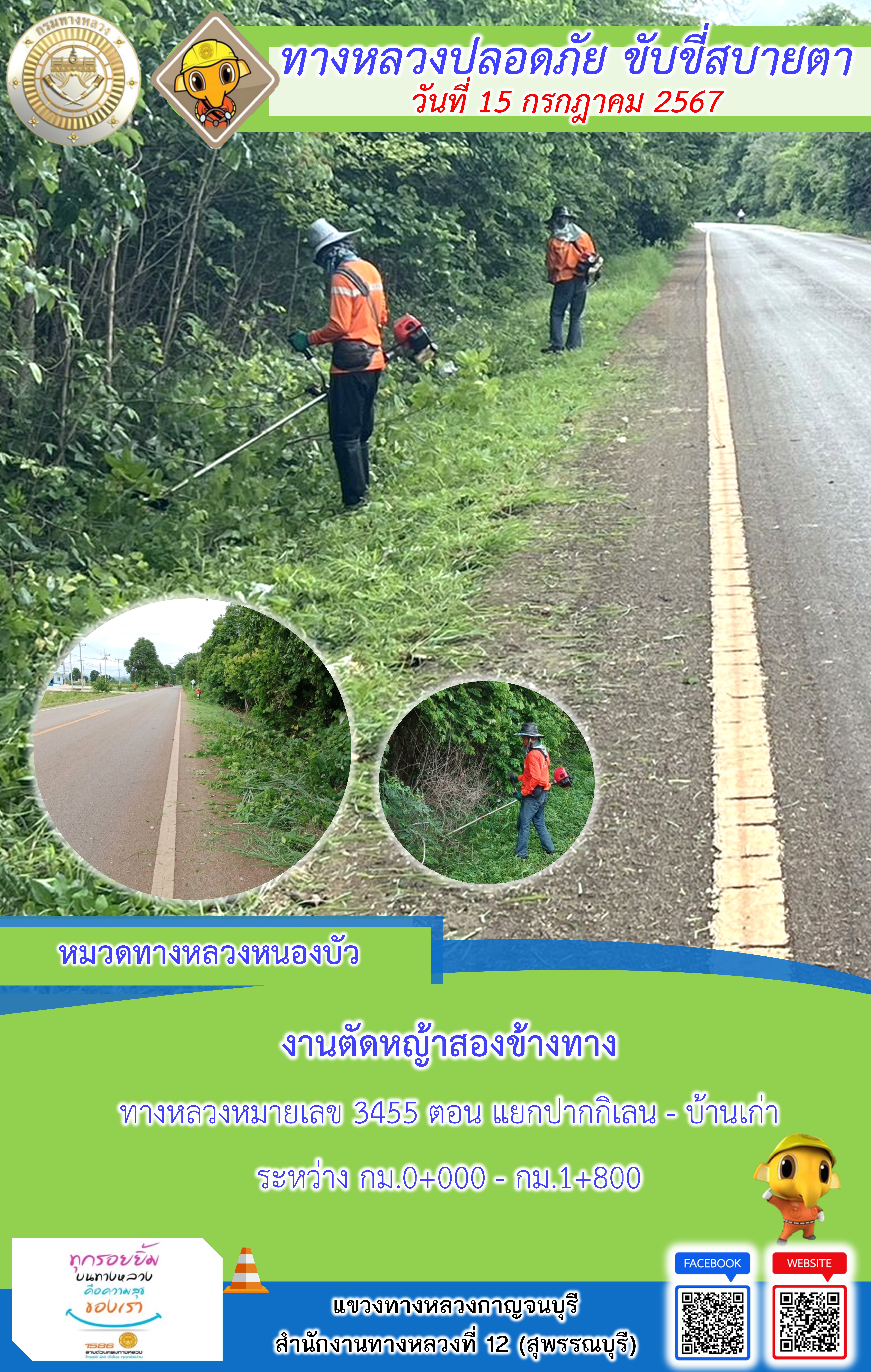 ข้อมูลภาพกิจกรรม : แขวงทางหลวงกาญจนบุรี โดยหมวดทางหลวงในสังกัด และงานอำนวยความปลอดภัยปฏิบัติงาน ประจำวันที่ 15 ก.ค. 67