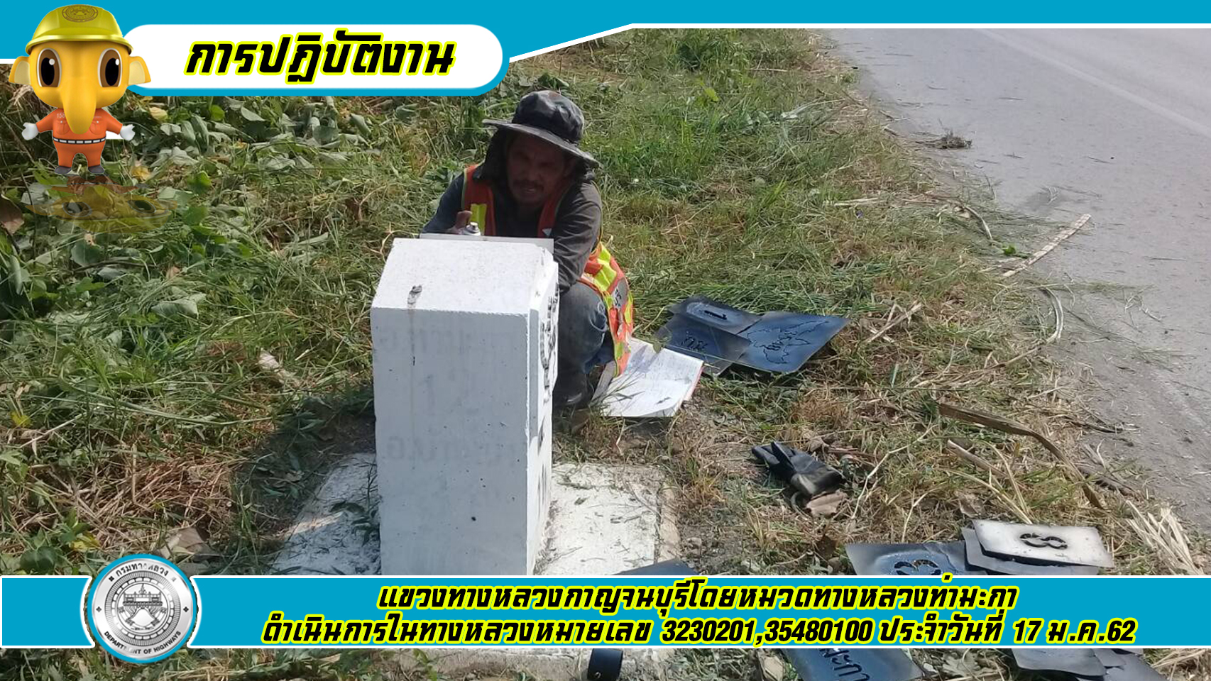 แขวงทางหลวงกาญจนบุรีโดยหมวดทางหลวงท่ามะกา ดำเนินการในทางหลวงหมายเลข 3230201,35480100 17/01/62