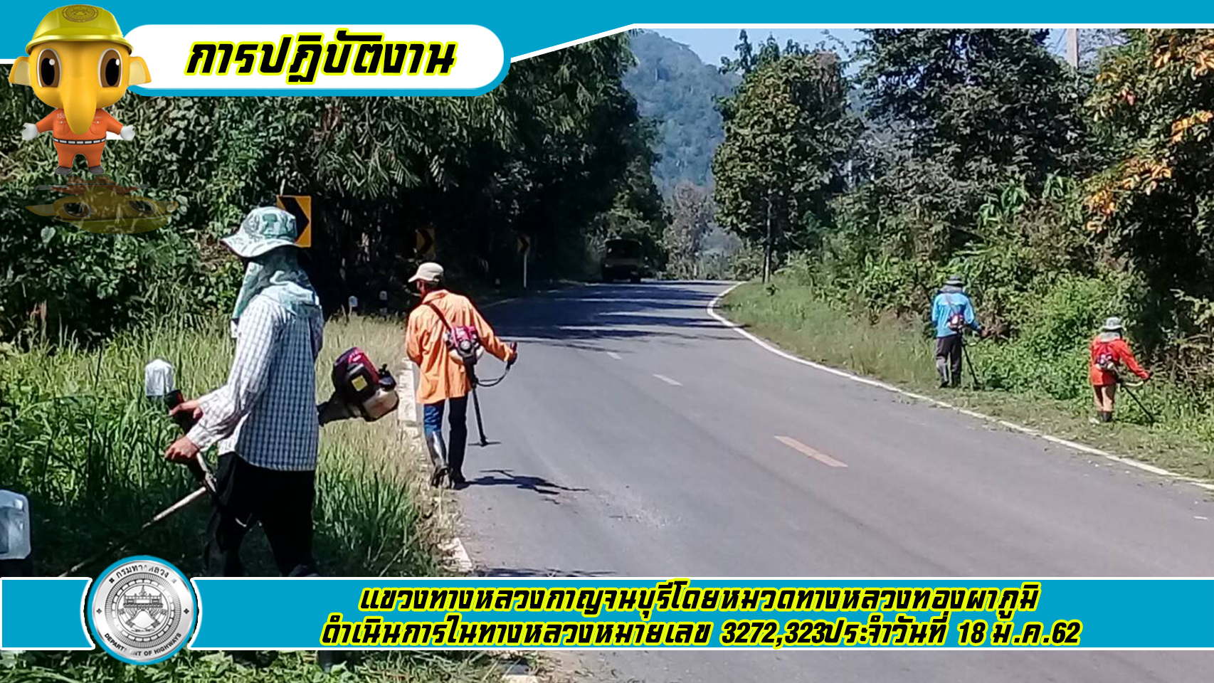 แขวงทางหลวงกาญจนบุรีโดยหมวดทางหลวงทองผาภูมิ ดำเนินการในทางหลวงหมายเลข 3272,323