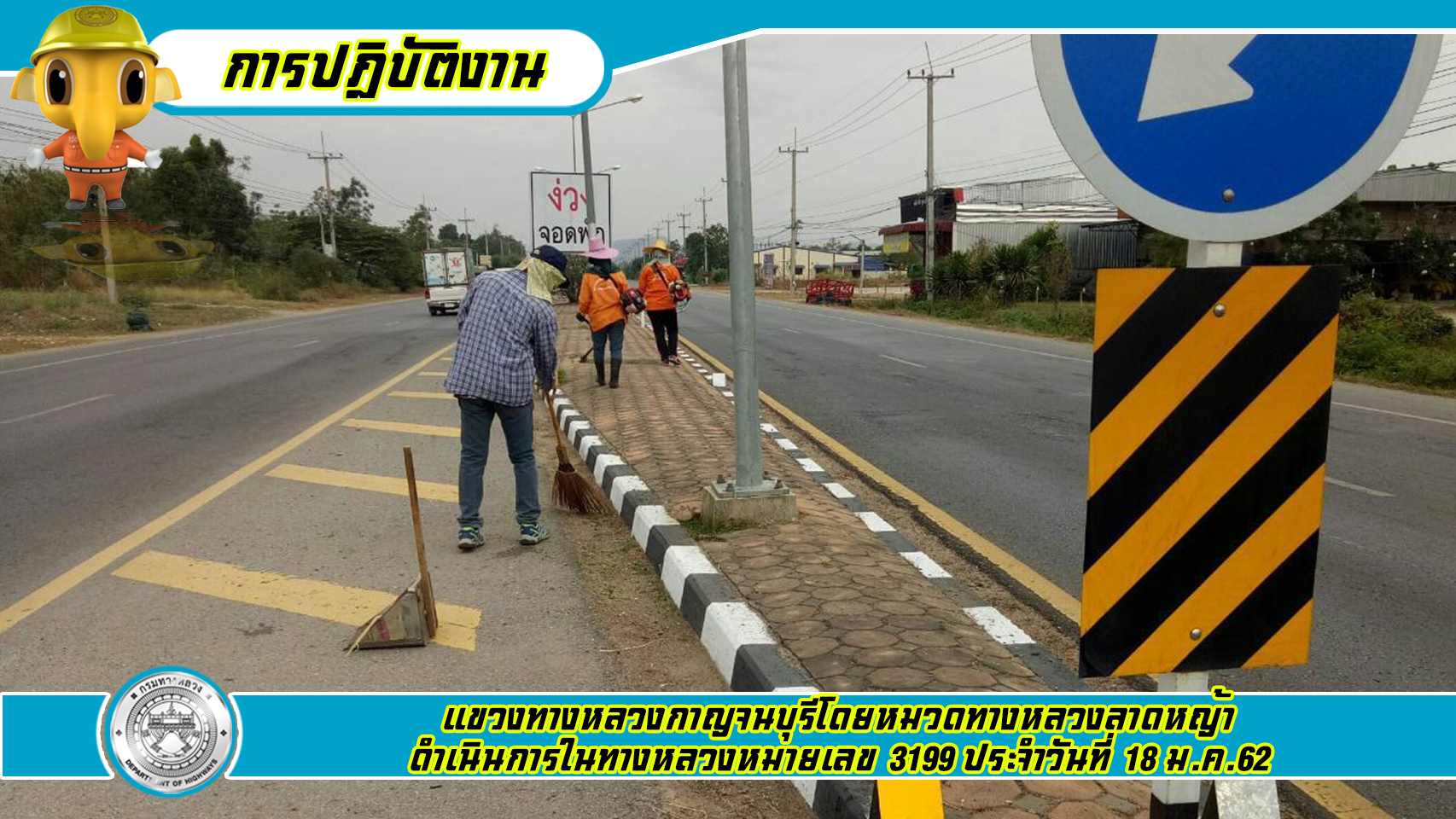 แขวงทางหลวงกาญจนบุรีโดยหมวดทางหลวงลาดหญ้า ดำเนินการในทางหลวงหมายเลข 3199 18/01/62