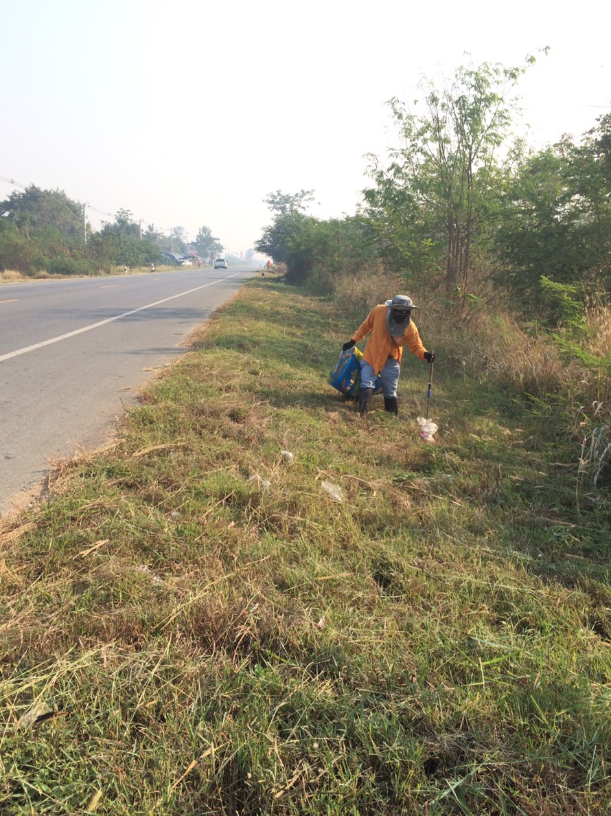 พร้อมเก็บป้ายไม่พึงประสงค์และ ขยะบริเวณไหลทาง