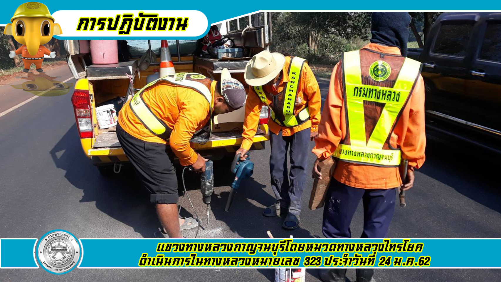 แขวงทางหลวงกาญจนบุรีโดยหมวดทางหลวงไทรโยค ดำเนินการในทางหลวงหมายเลข 323 24/01/62