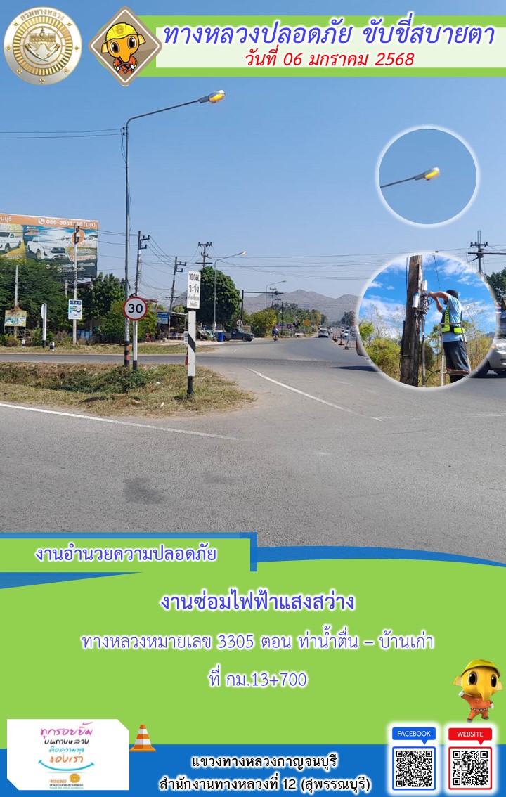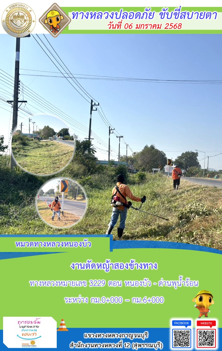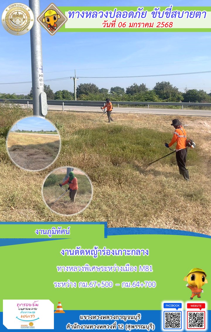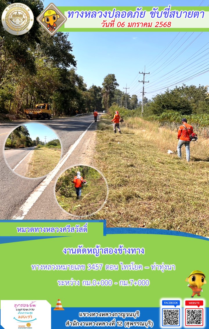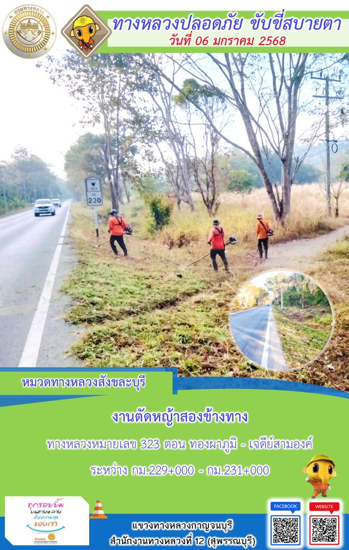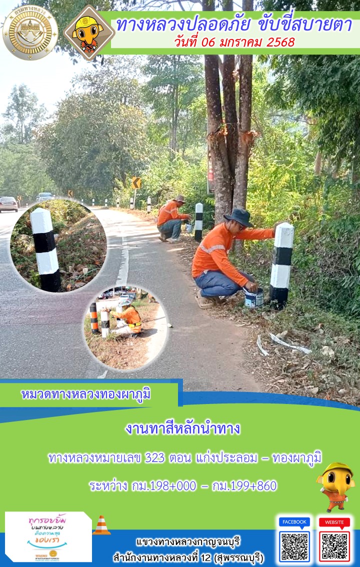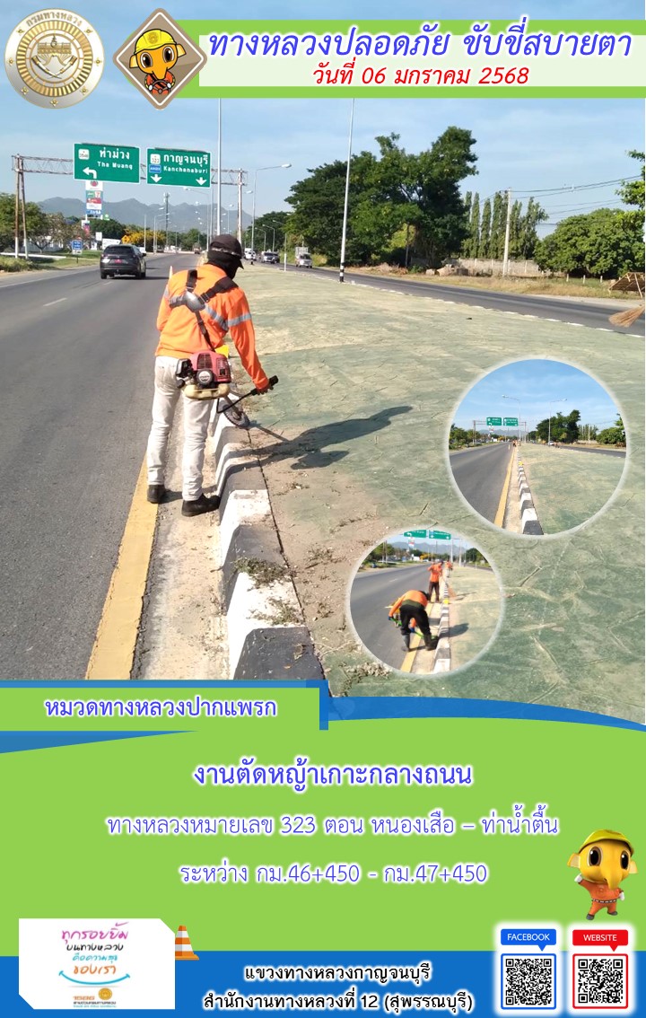 แขวงทางหลวงกาญจนบุรี โดยหมวดทางหลวงในสังกัด และงานอำนวยความปลอดภัยปฏิบัติงาน ประจำวันที่ 06 ม.ค. 68