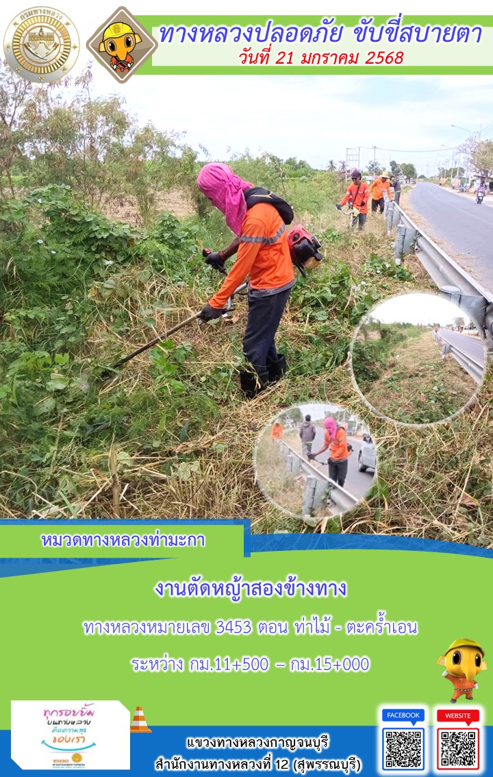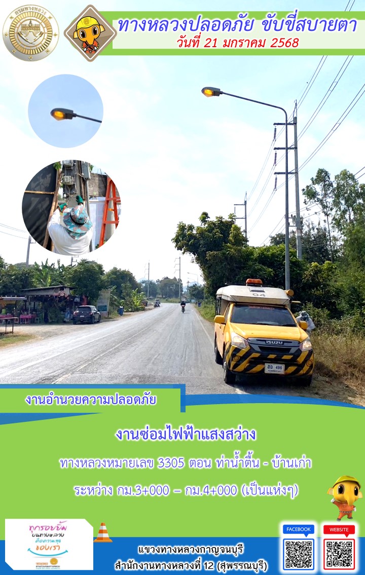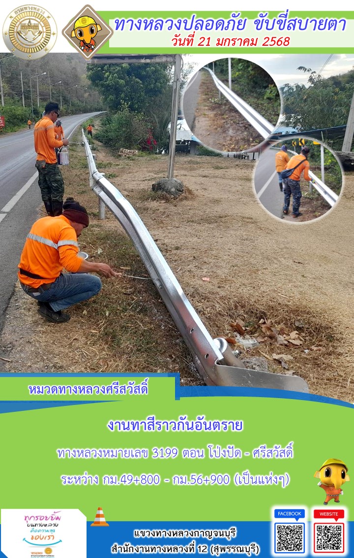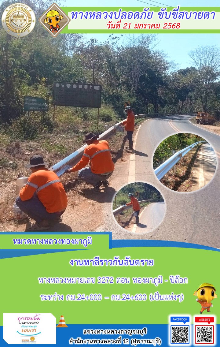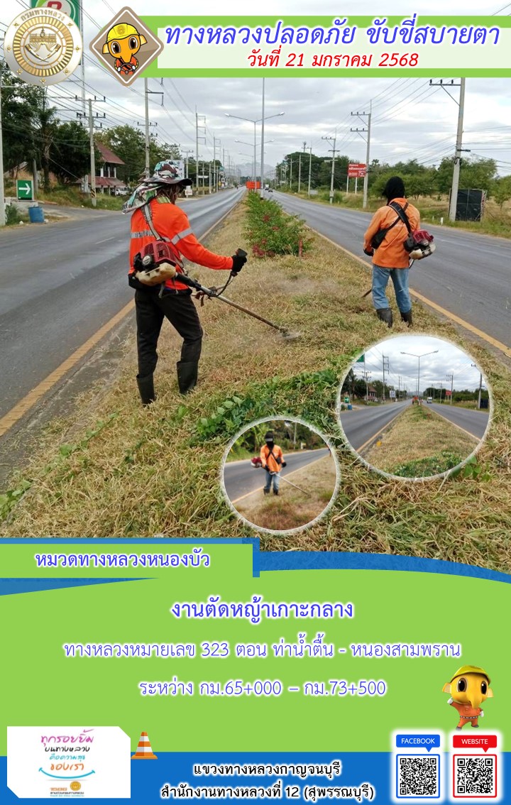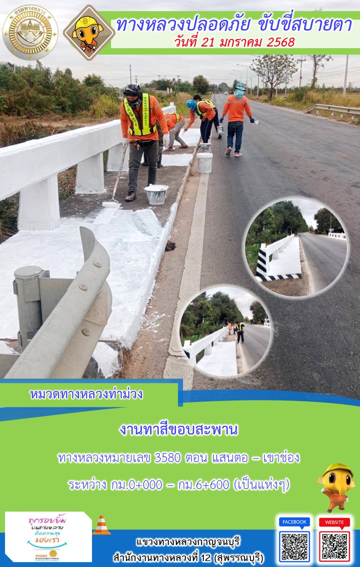 แขวงทางหลวงกาญจนบุรี โดยหมวดทางหลวงในสังกัด และงานอำนวยความปลอดภัยปฏิบัติงาน ประจำวันที่ 21 ม.ค. 68