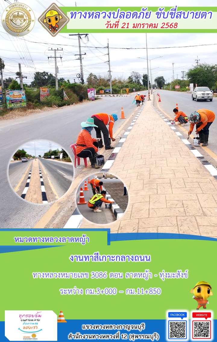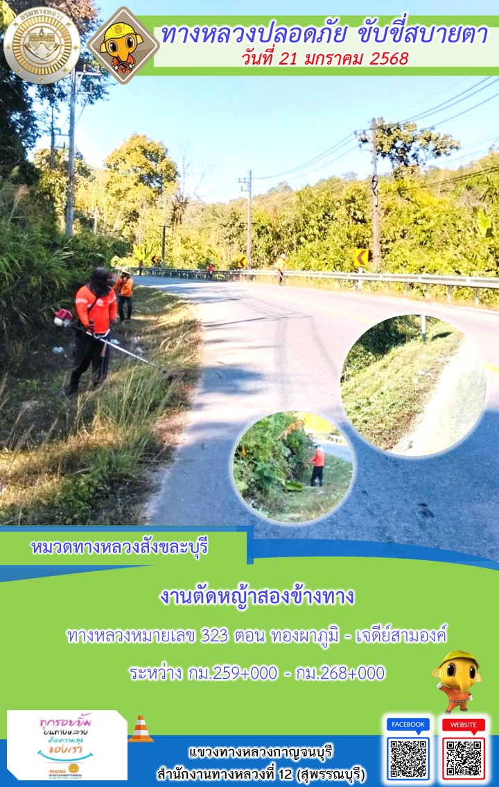 ข้อมูลภาพกิจกรรม : แขวงทางหลวงกาญจนบุรี โดยหมวดทางหลวงในสังกัด และงานอำนวยความปลอดภัยปฏิบัติงาน ประจำวันที่ 21 ม.ค. 68