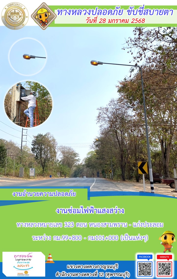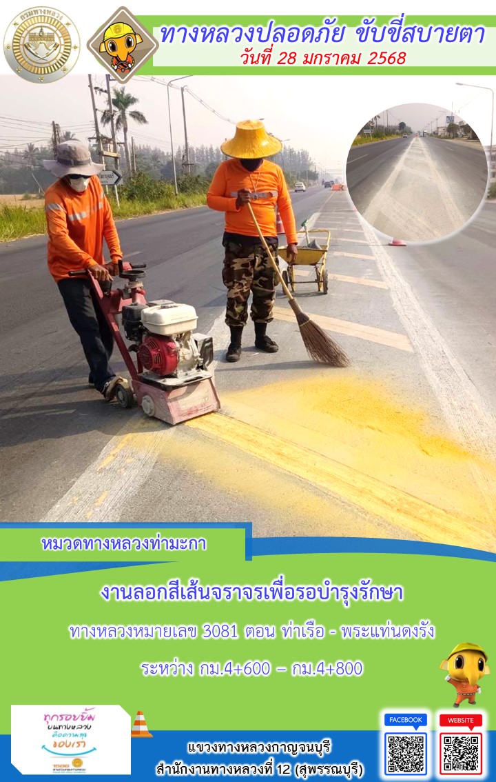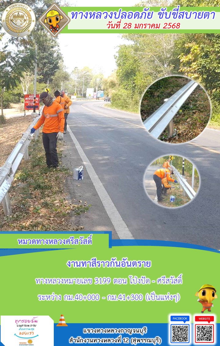แขวงทางหลวงกาญจนบุรี โดยหมวดทางหลวงในสังกัด และงานอำนวยความปลอดภัยปฏิบัติงาน ประจำวันที่ 28 ม.ค. 68