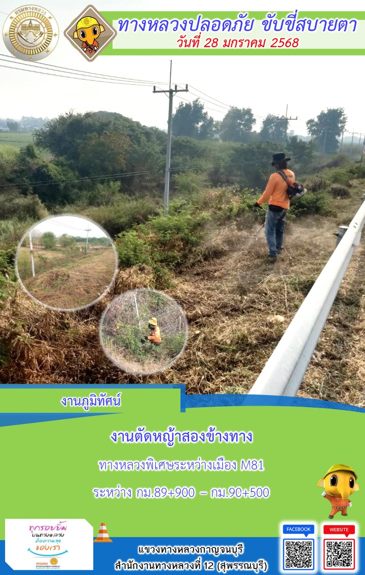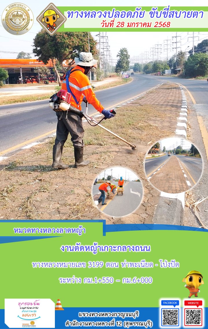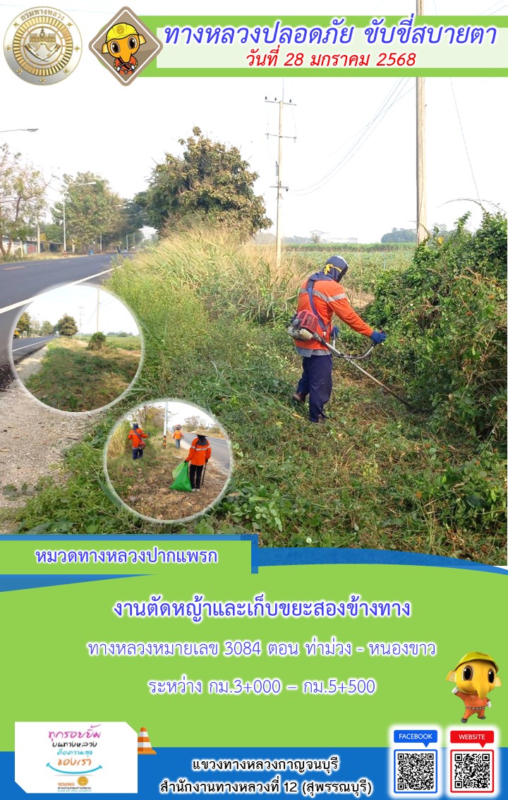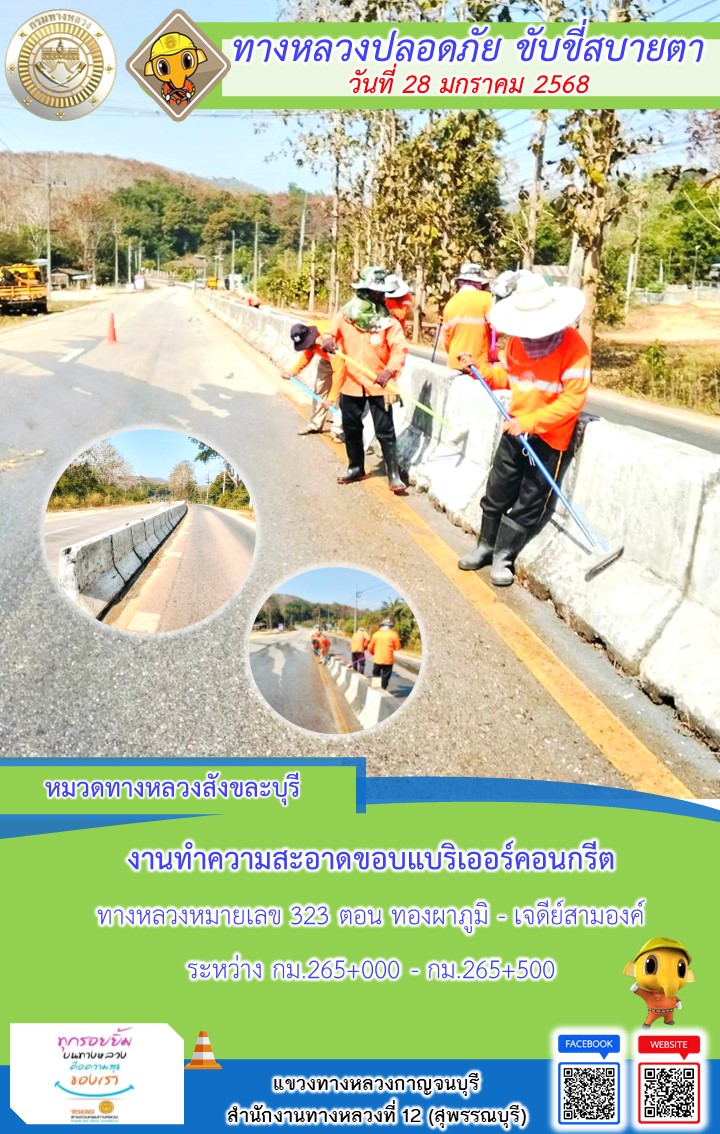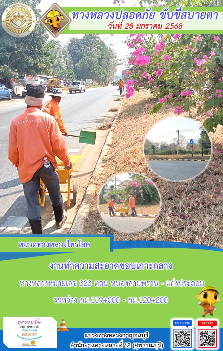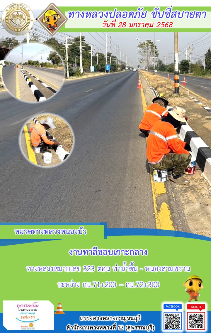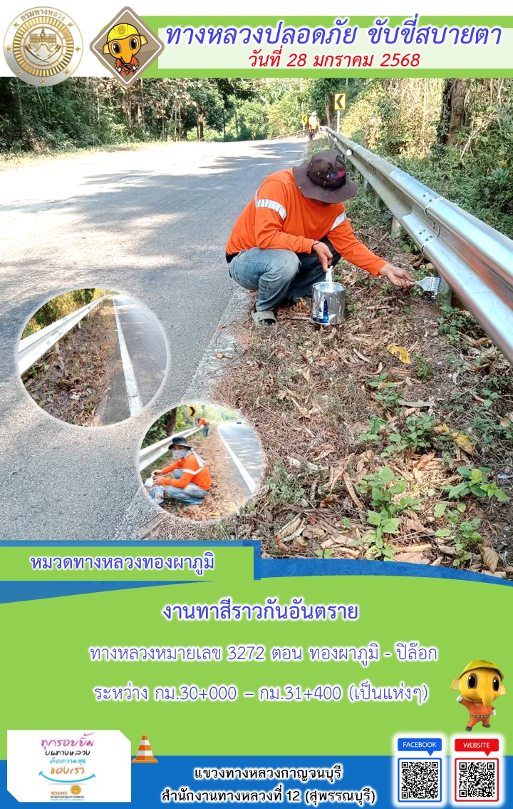 ข้อมูลภาพกิจกรรม : แขวงทางหลวงกาญจนบุรี โดยหมวดทางหลวงในสังกัด และงานอำนวยความปลอดภัยปฏิบัติงาน ประจำวันที่ 28 ม.ค. 68