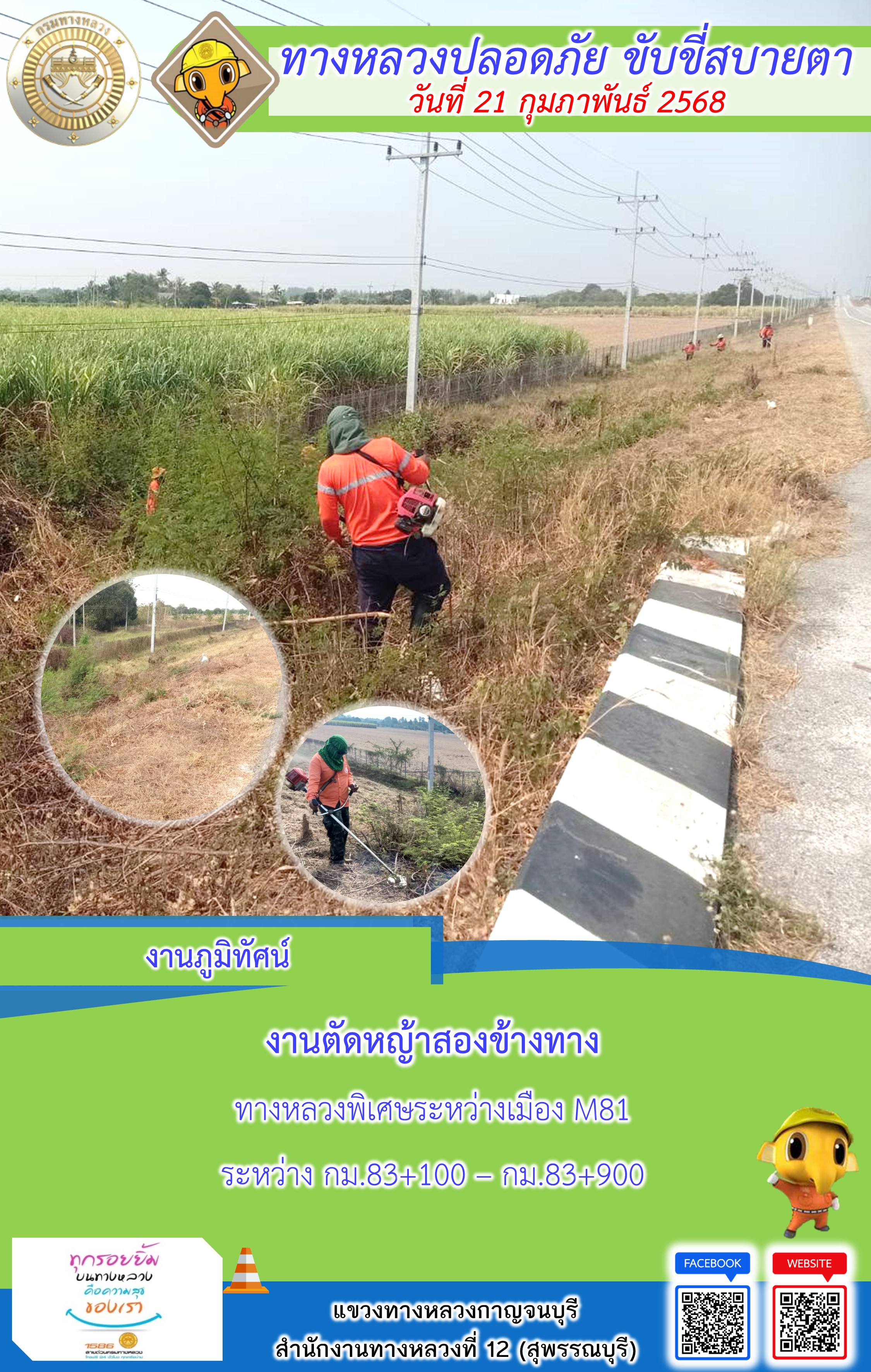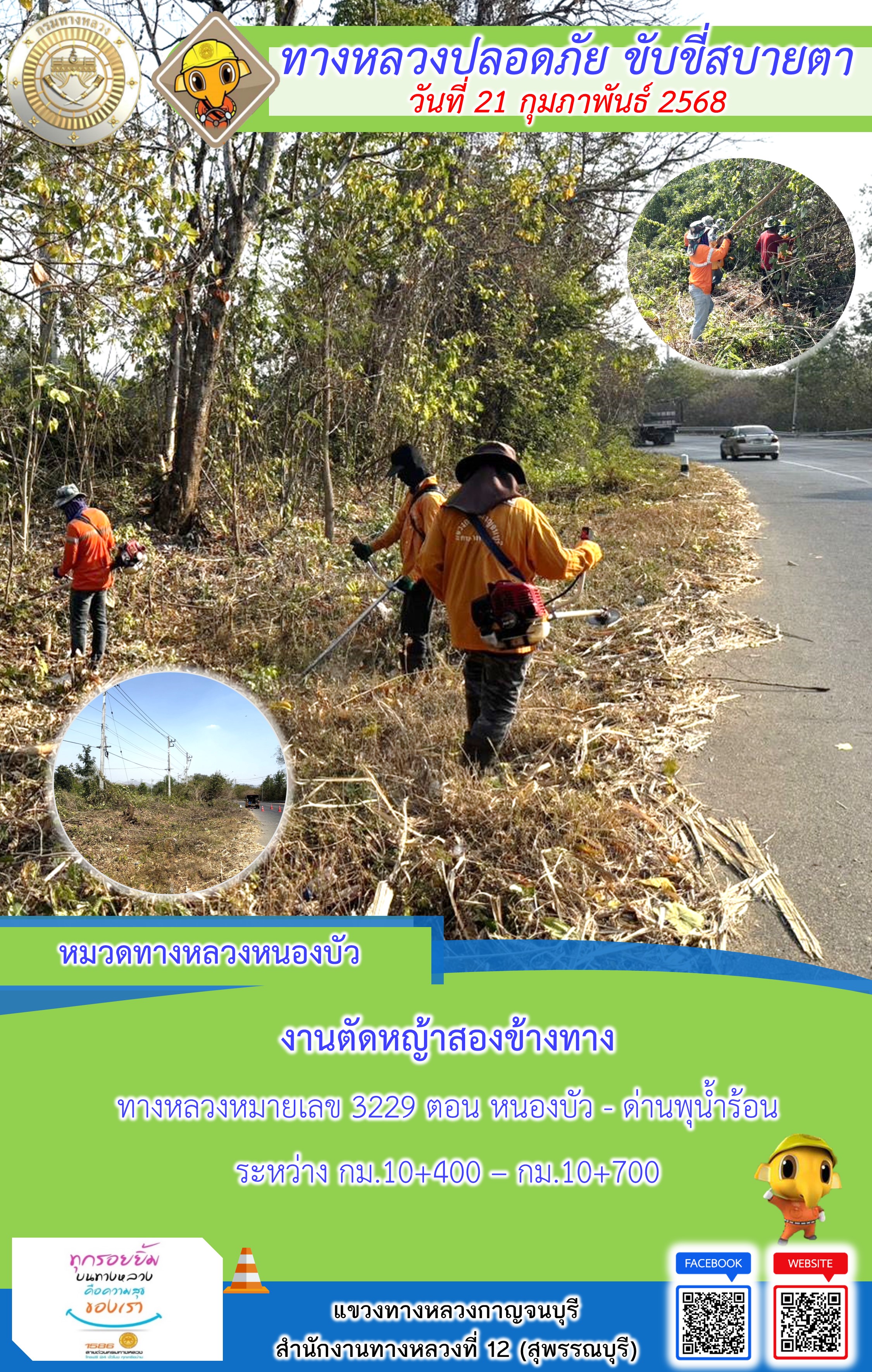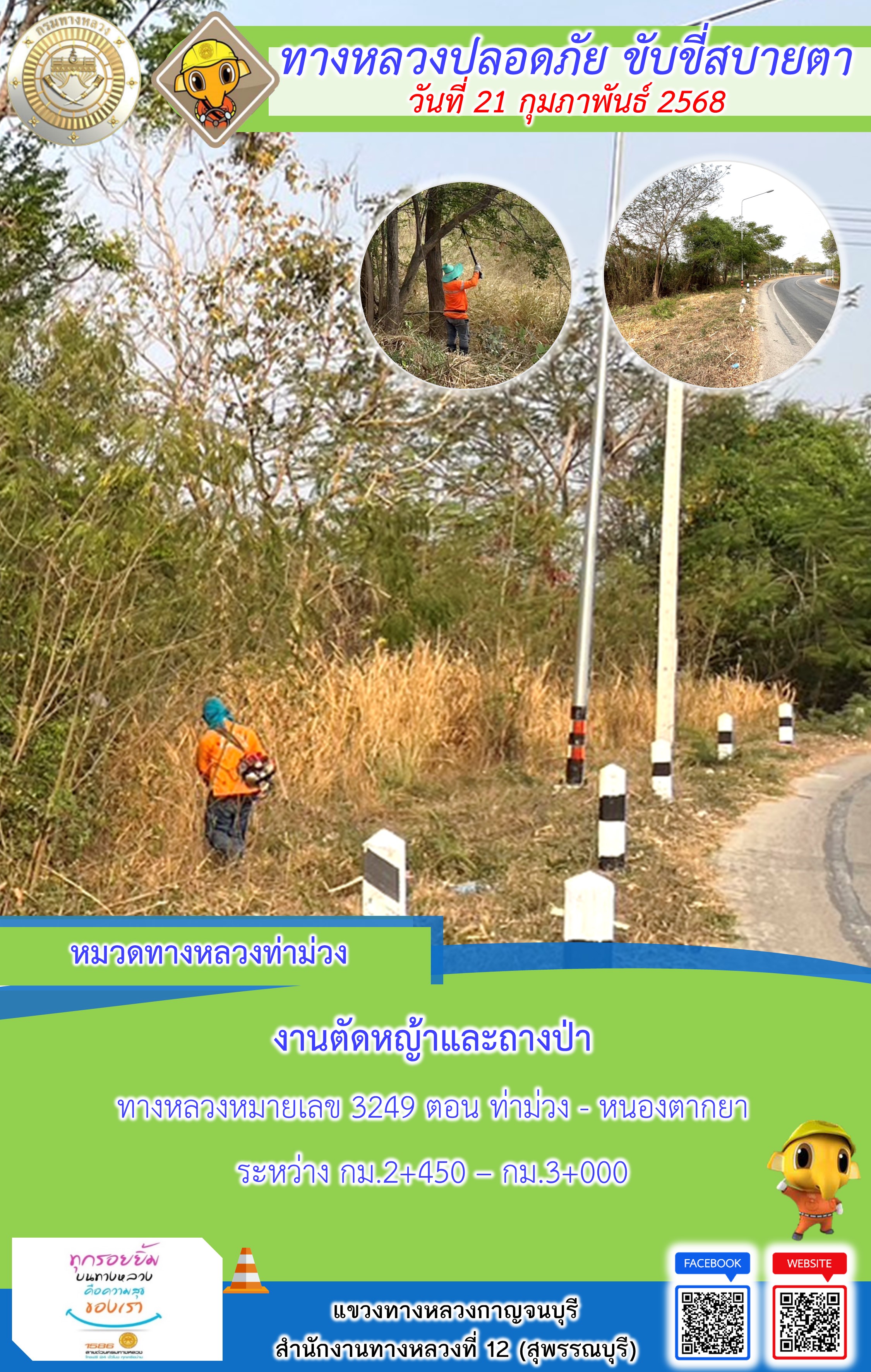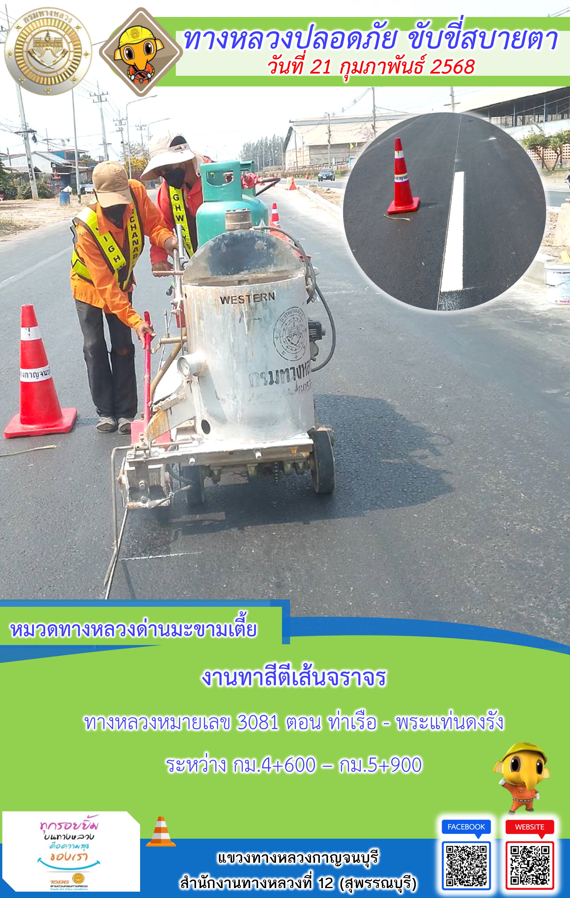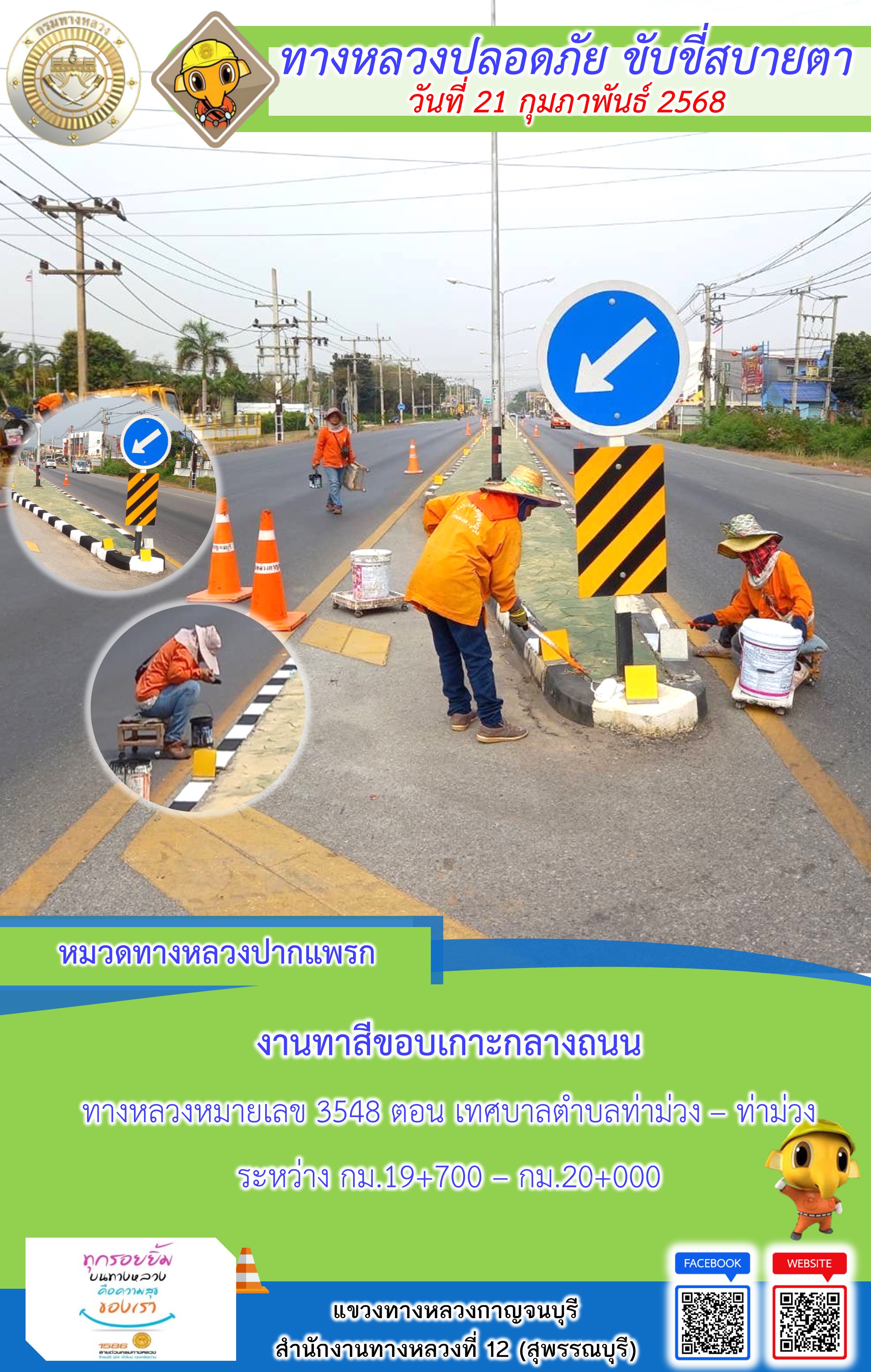 แขวงทางหลวงกาญจนบุรี โดยหมวดทางหลวงในสังกัด และงานอำนวยความปลอดภัยปฏิบัติงาน ประจำวันที่ 21 ก.พ. 68