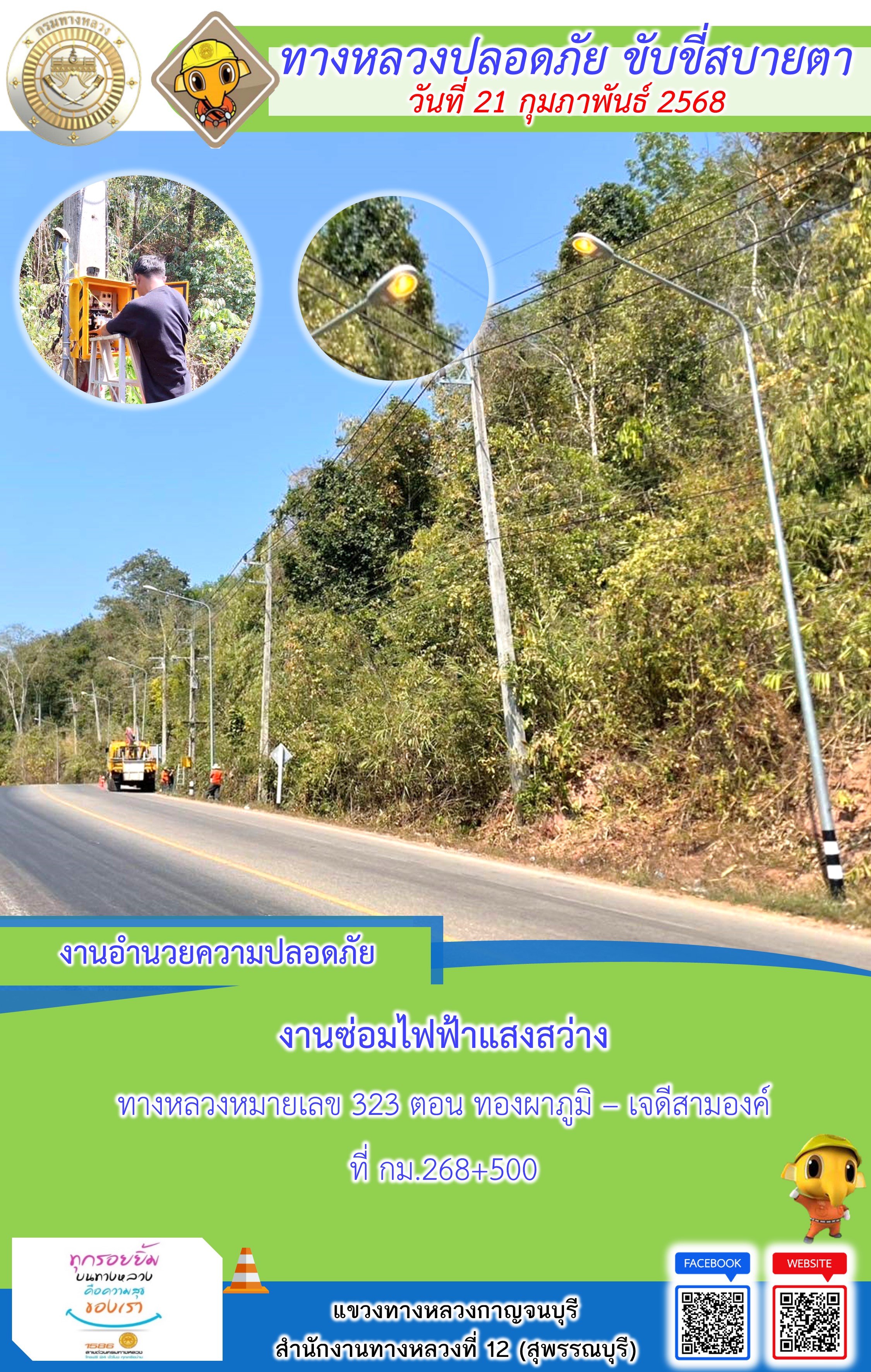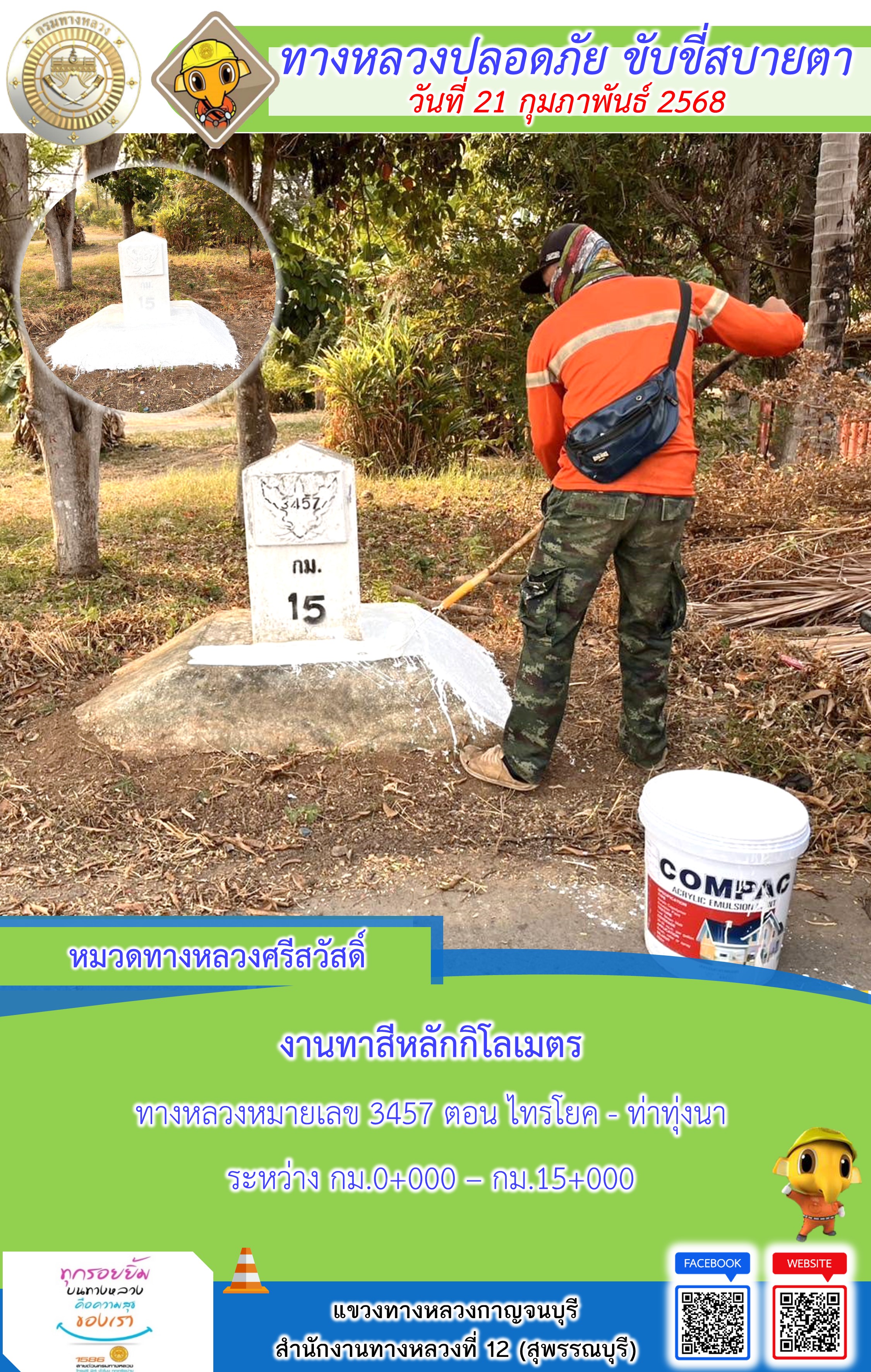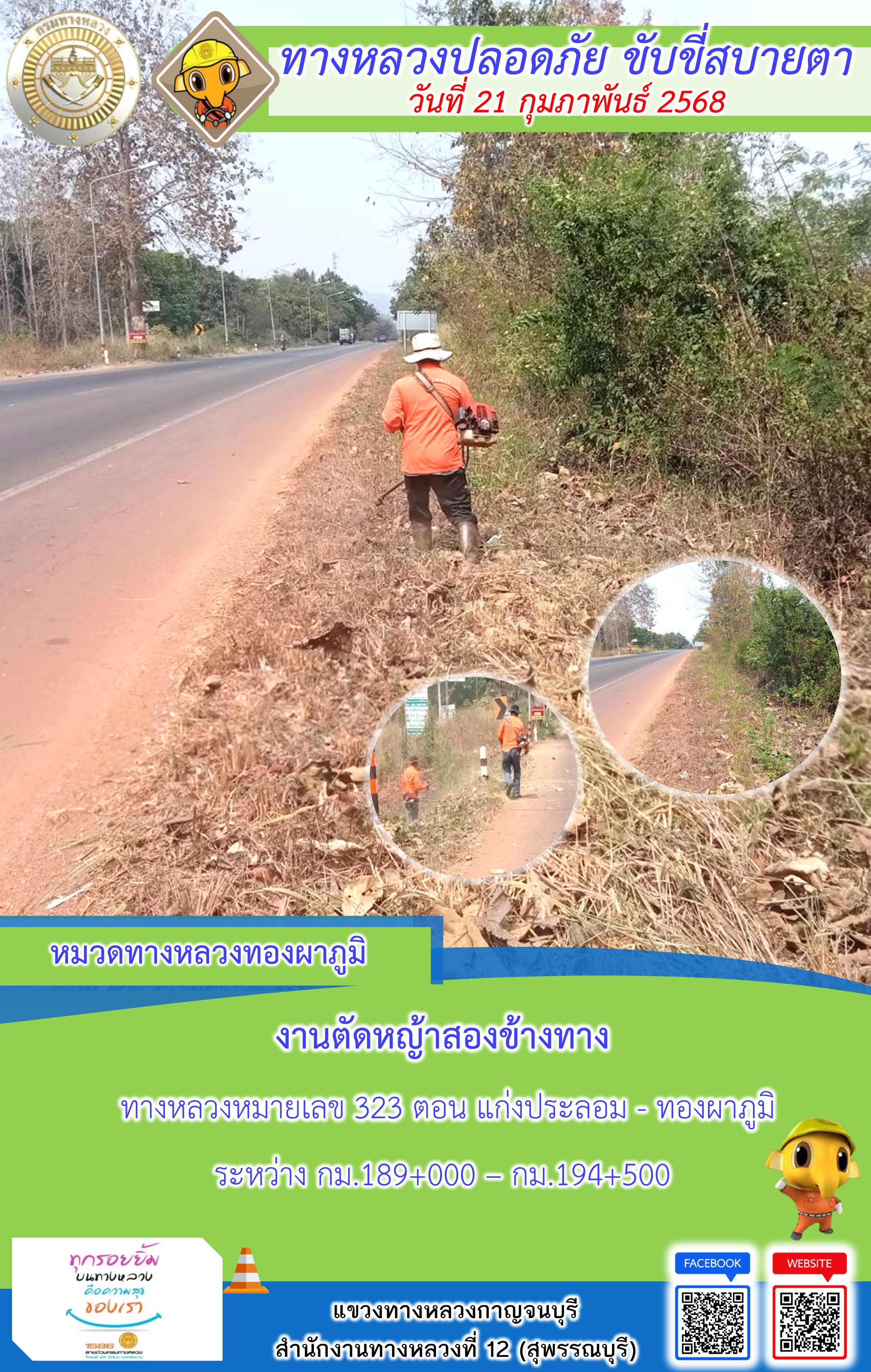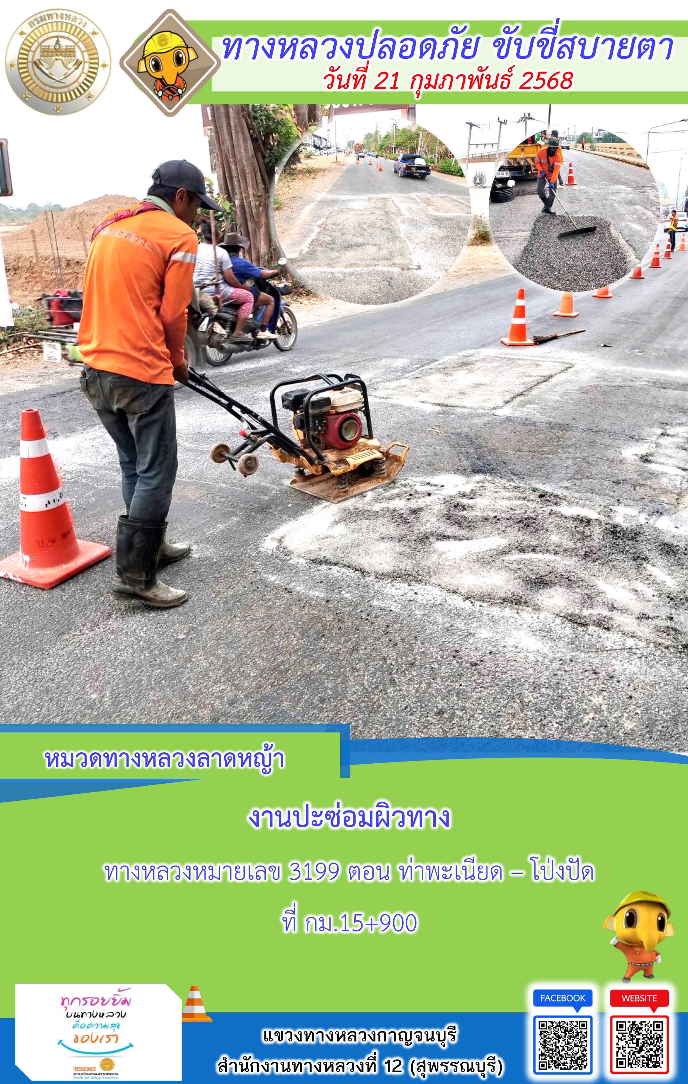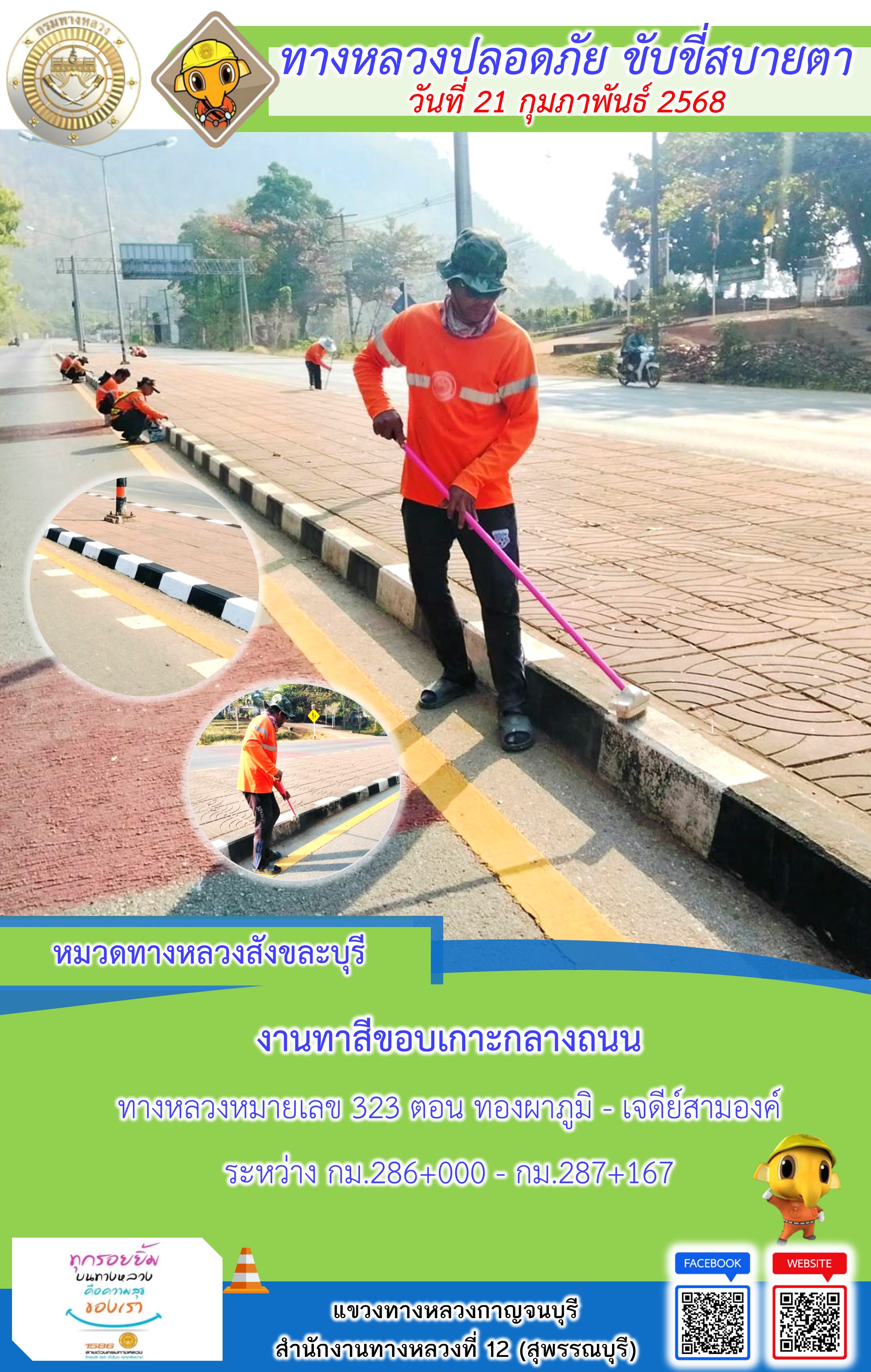 ข้อมูลภาพกิจกรรม : แขวงทางหลวงกาญจนบุรี โดยหมวดทางหลวงในสังกัด และงานอำนวยความปลอดภัยปฏิบัติงาน ประจำวันที่ 21 ก.พ. 68