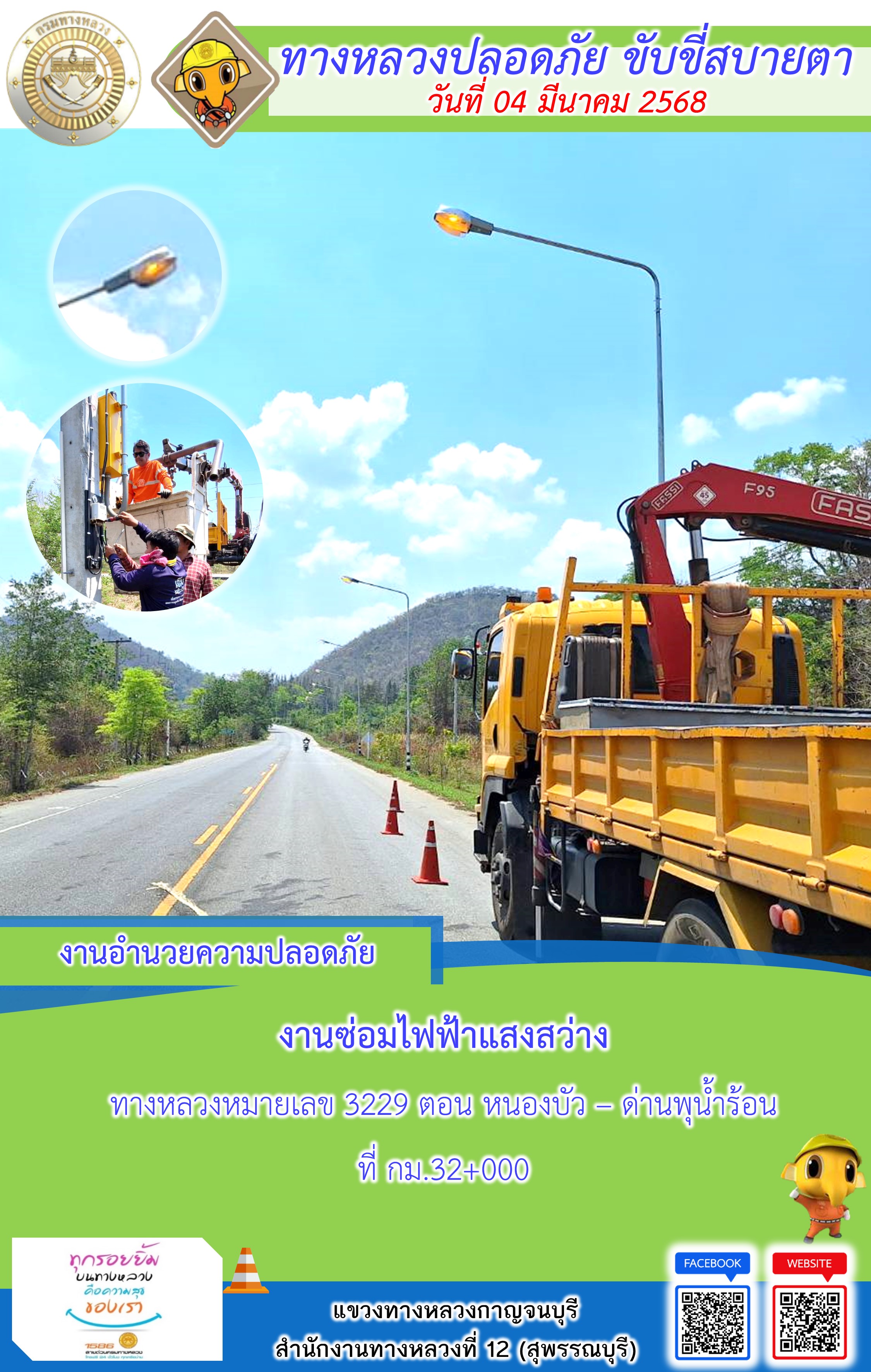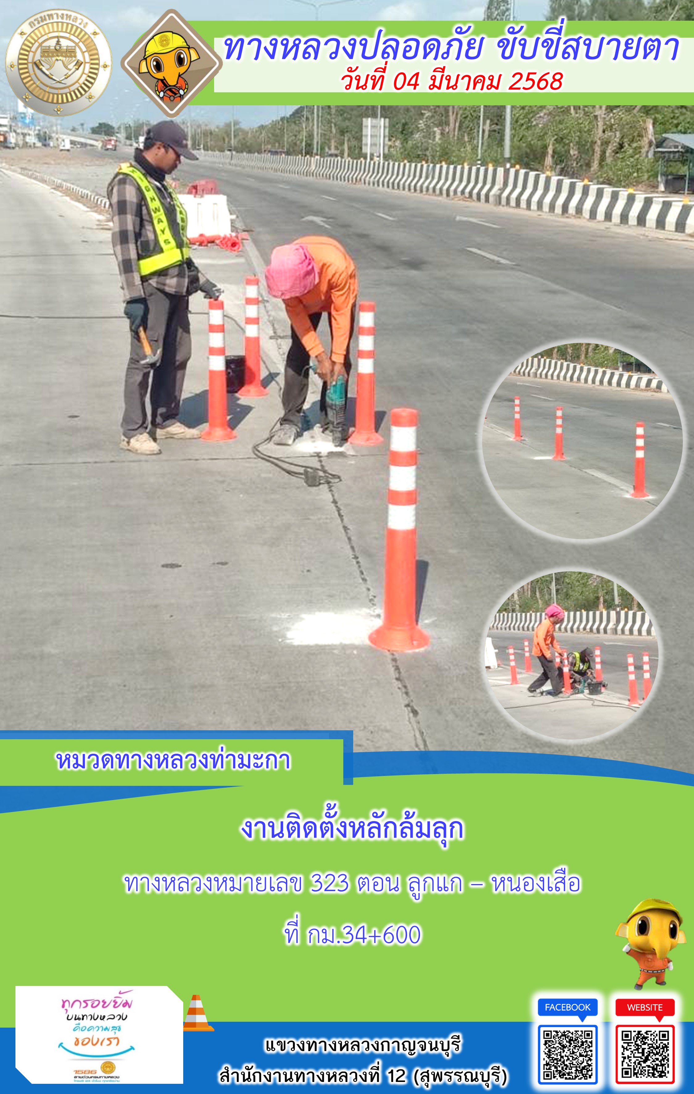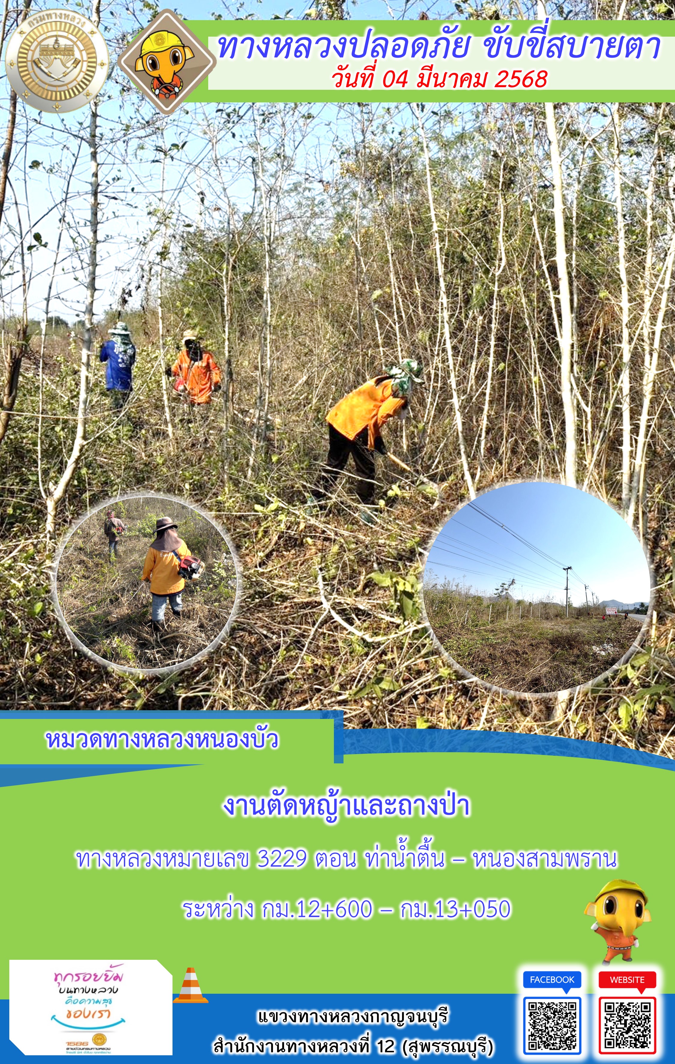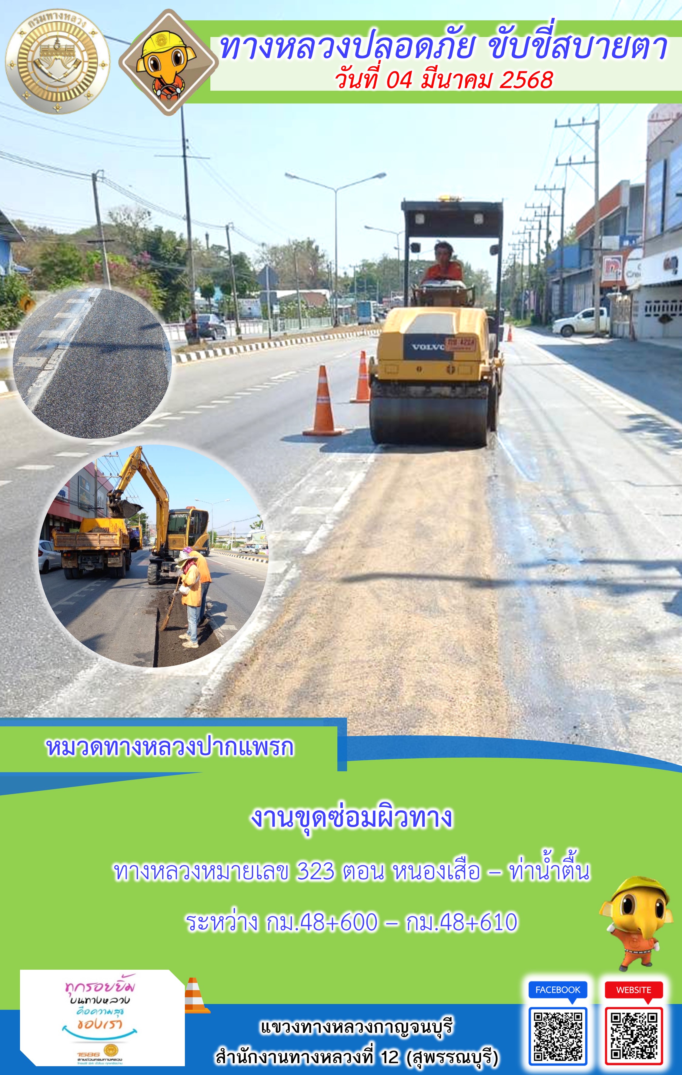 แขวงทางหลวงกาญจนบุรี โดยหมวดทางหลวงในสังกัด และงานอำนวยความปลอดภัยปฏิบัติงาน ประจำวันที่ 4 มี.ค. 68