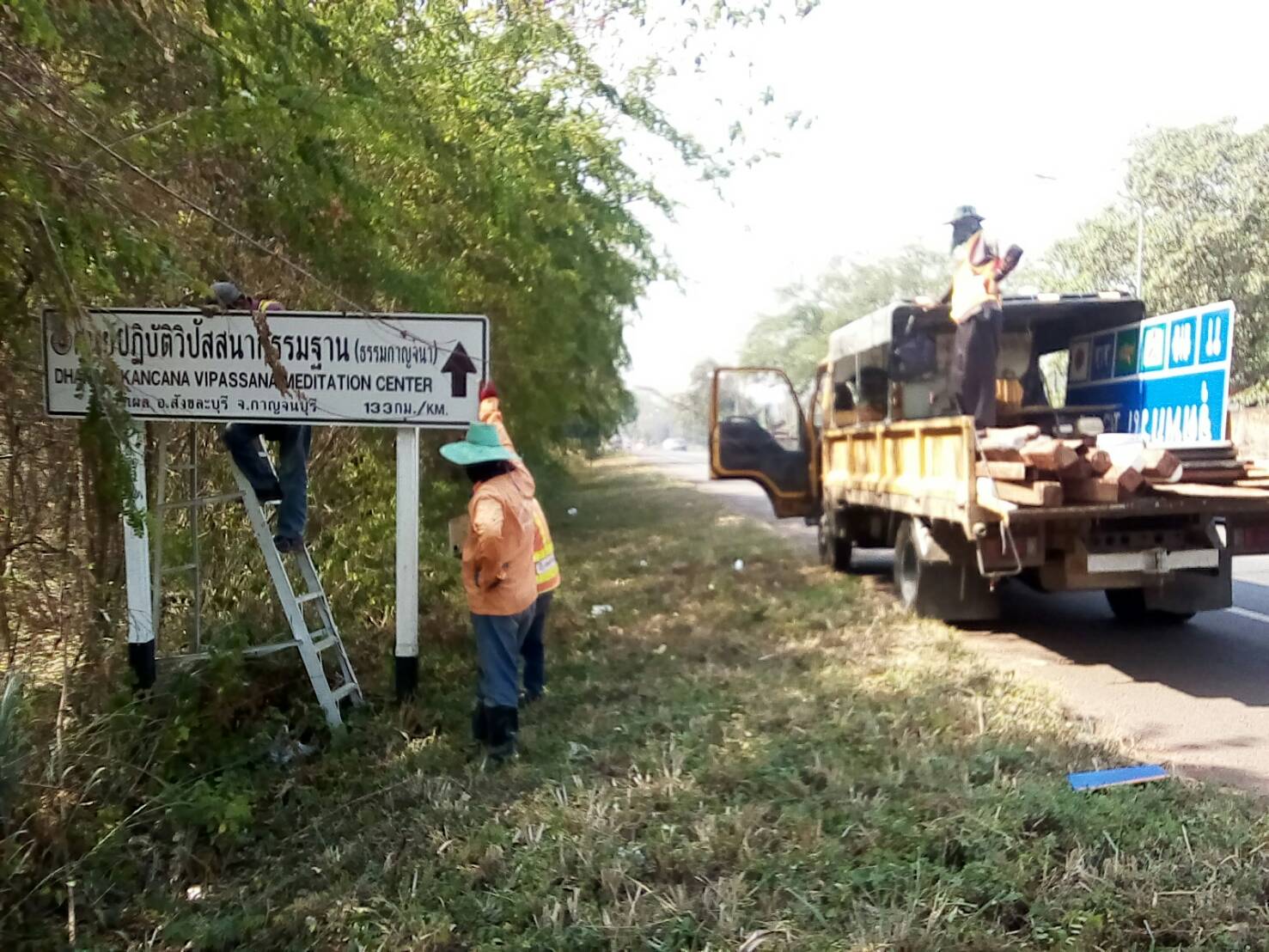 แขวงทางหลวงกาญจนบุรีโดยหมวดทางหลวงงานอำนวยความปลอดภัย ดำเนินการในทางหลวงหมายเลข 323