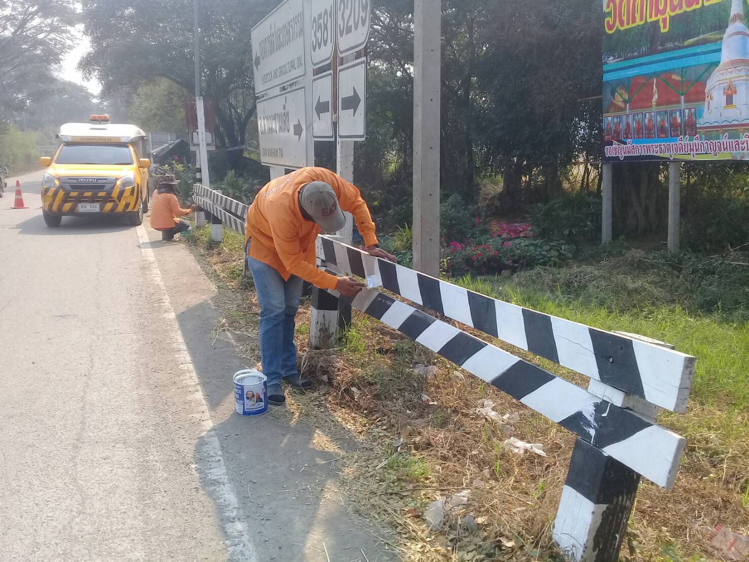 1.ทาสีแผงไม้กั้นทางแยก ทล.3209 ตอน ด่านมะขามเตี้ย-กาญจนบุรี กม.64+200(แยกวังปลาหมู)61+300(แยกเขาปู่คง)พร้อมเก็บป้ายไม่พึงประสงค์