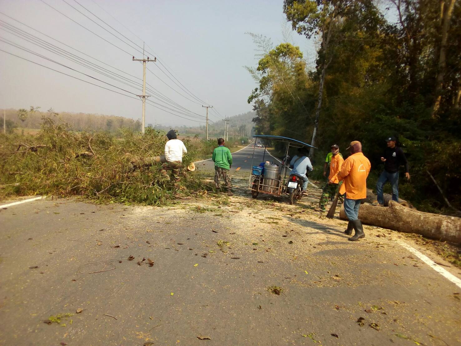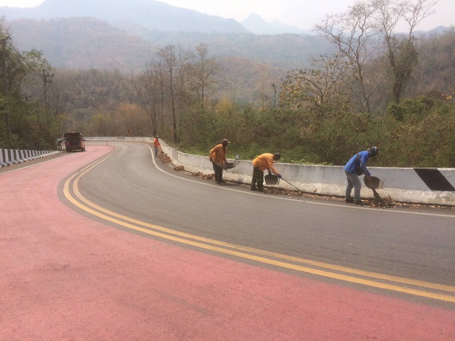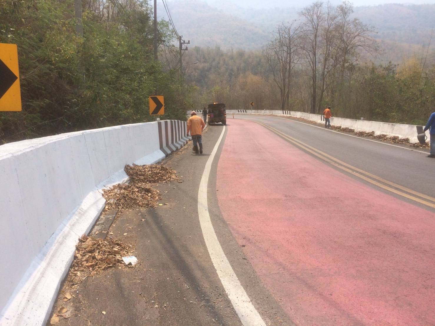 1.ดำเนินการทำความสะอาดผิวจราจร ทล.3199 กม.58+000-กม.61+000