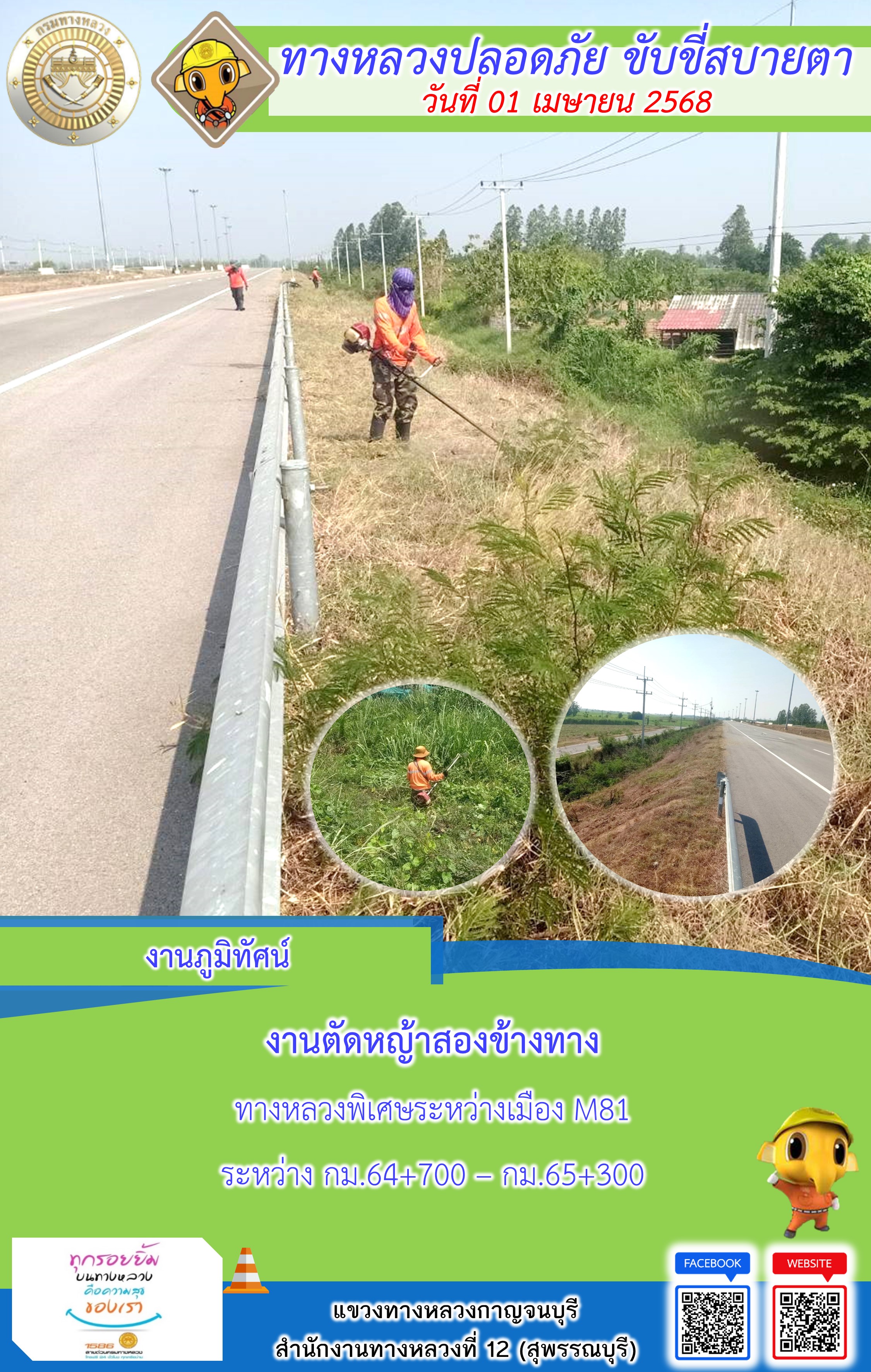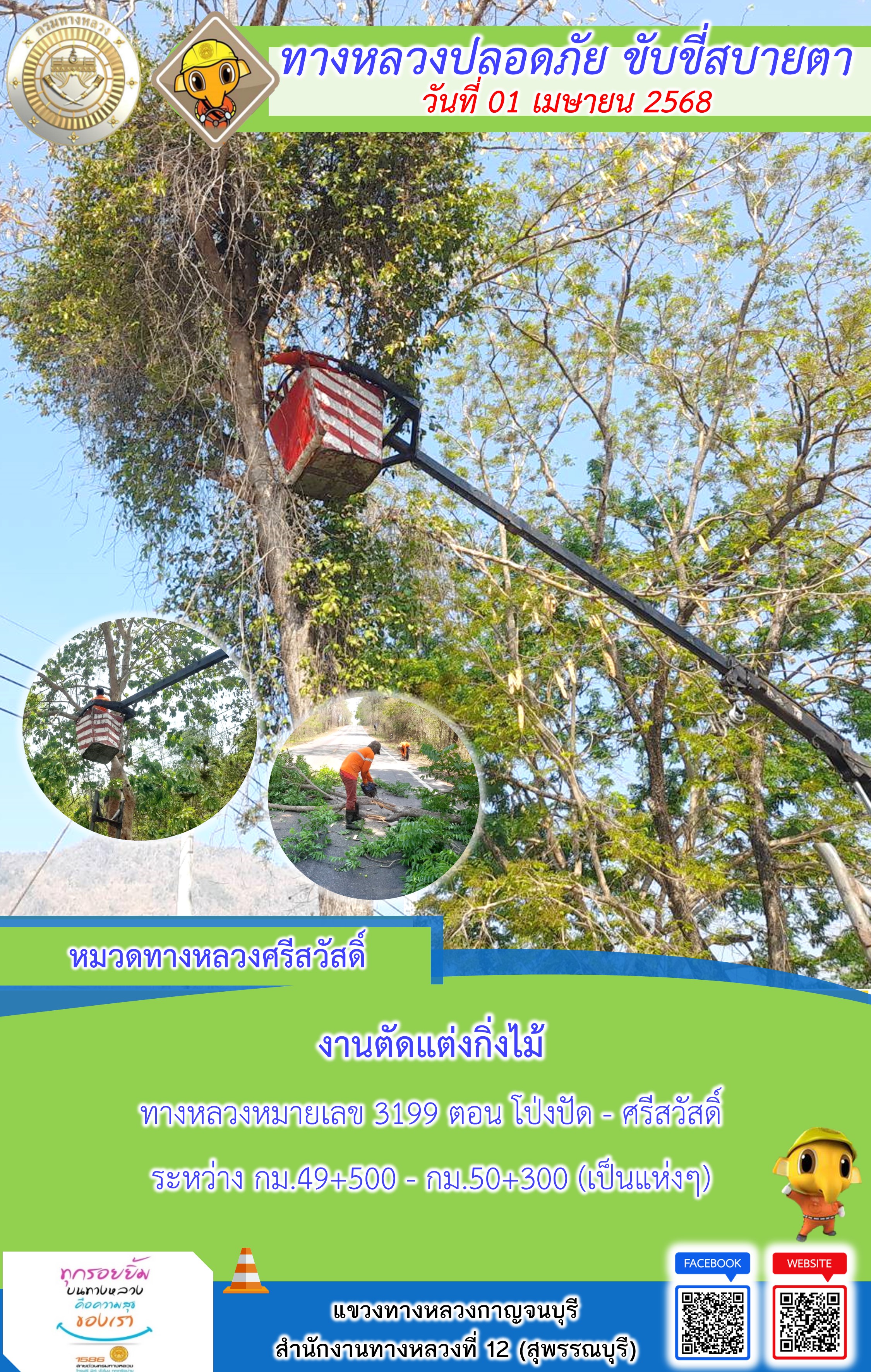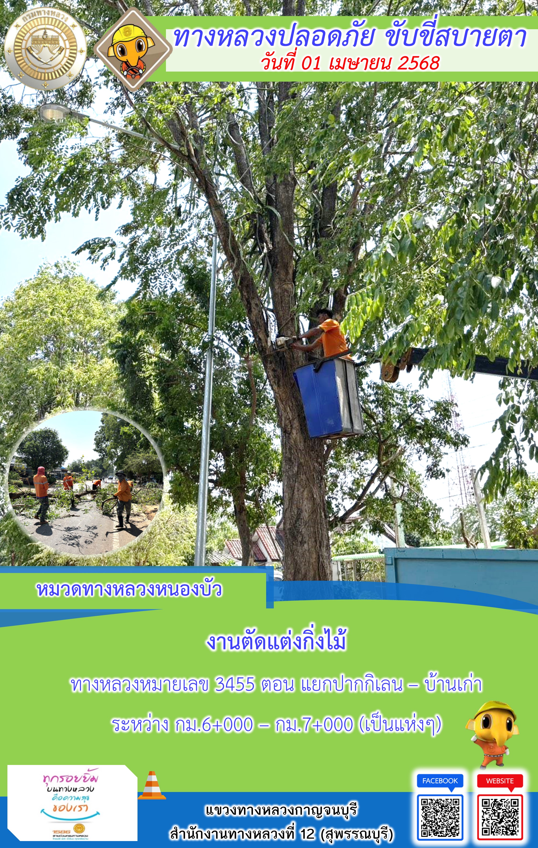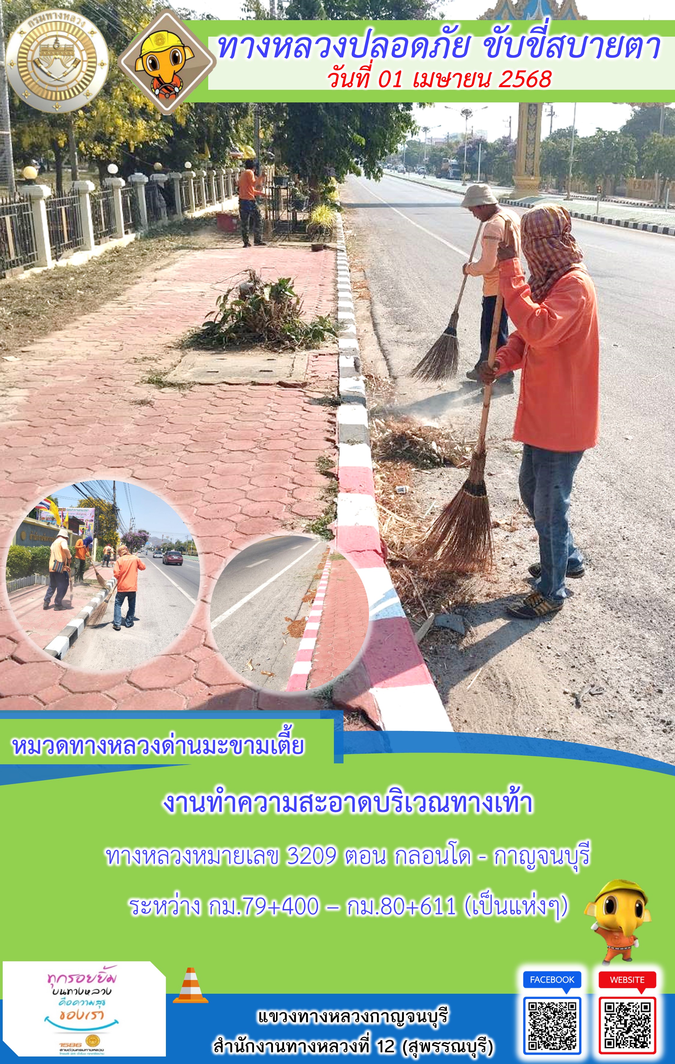 ข้อมูลภาพกิจกรรม : แขวงทางหลวงกาญจนบุรี โดยหมวดทางหลวงในสังกัด และงานอำนวยความปลอดภัยปฏิบัติงาน ประจำวันที่ 1 เม.ย. 68