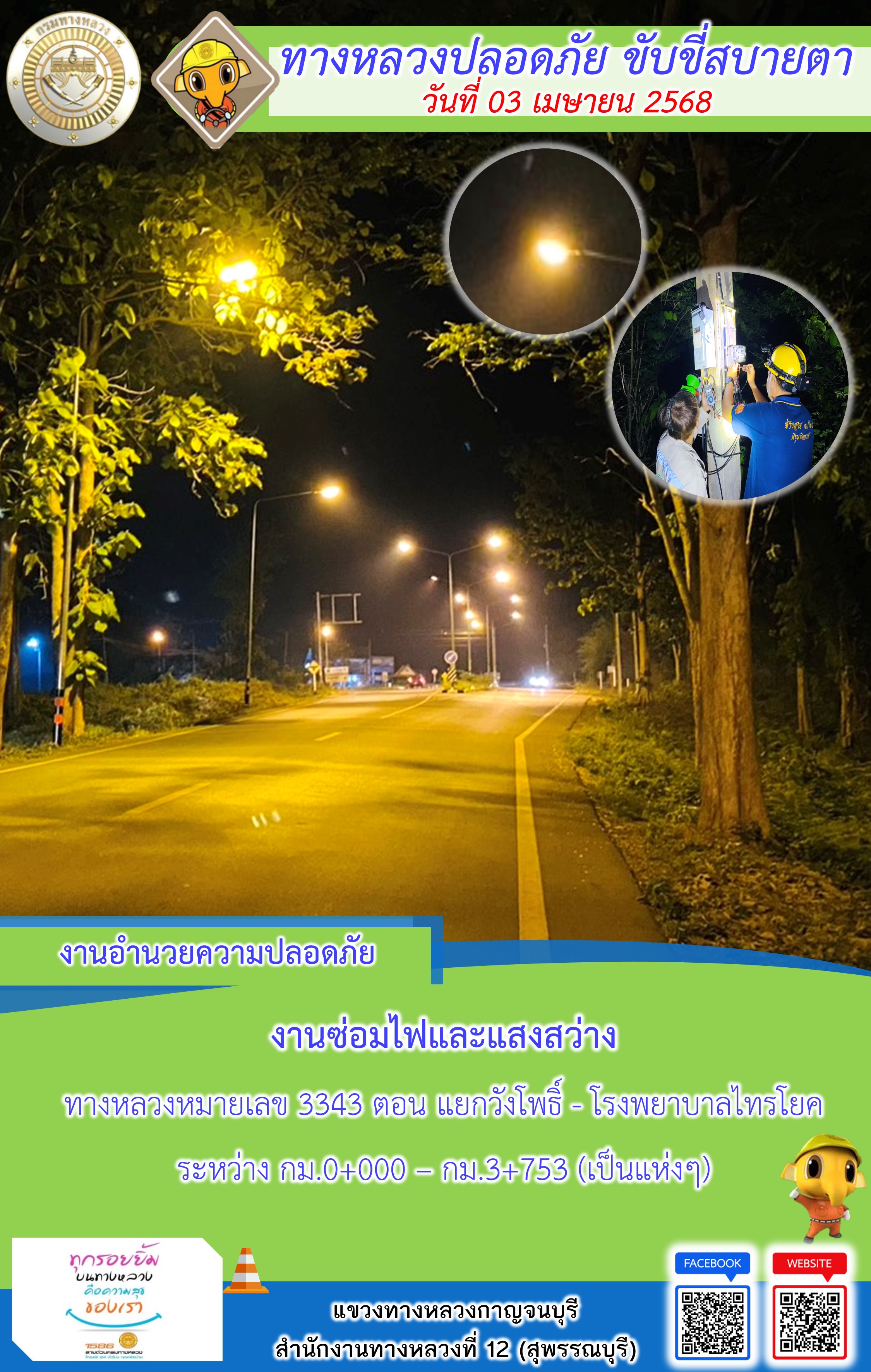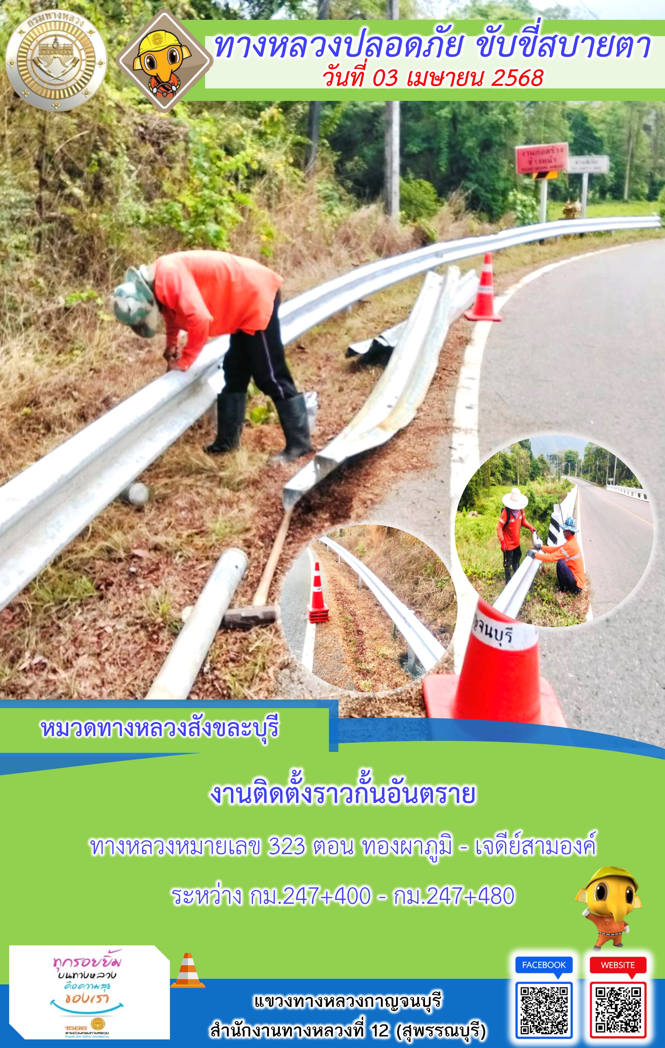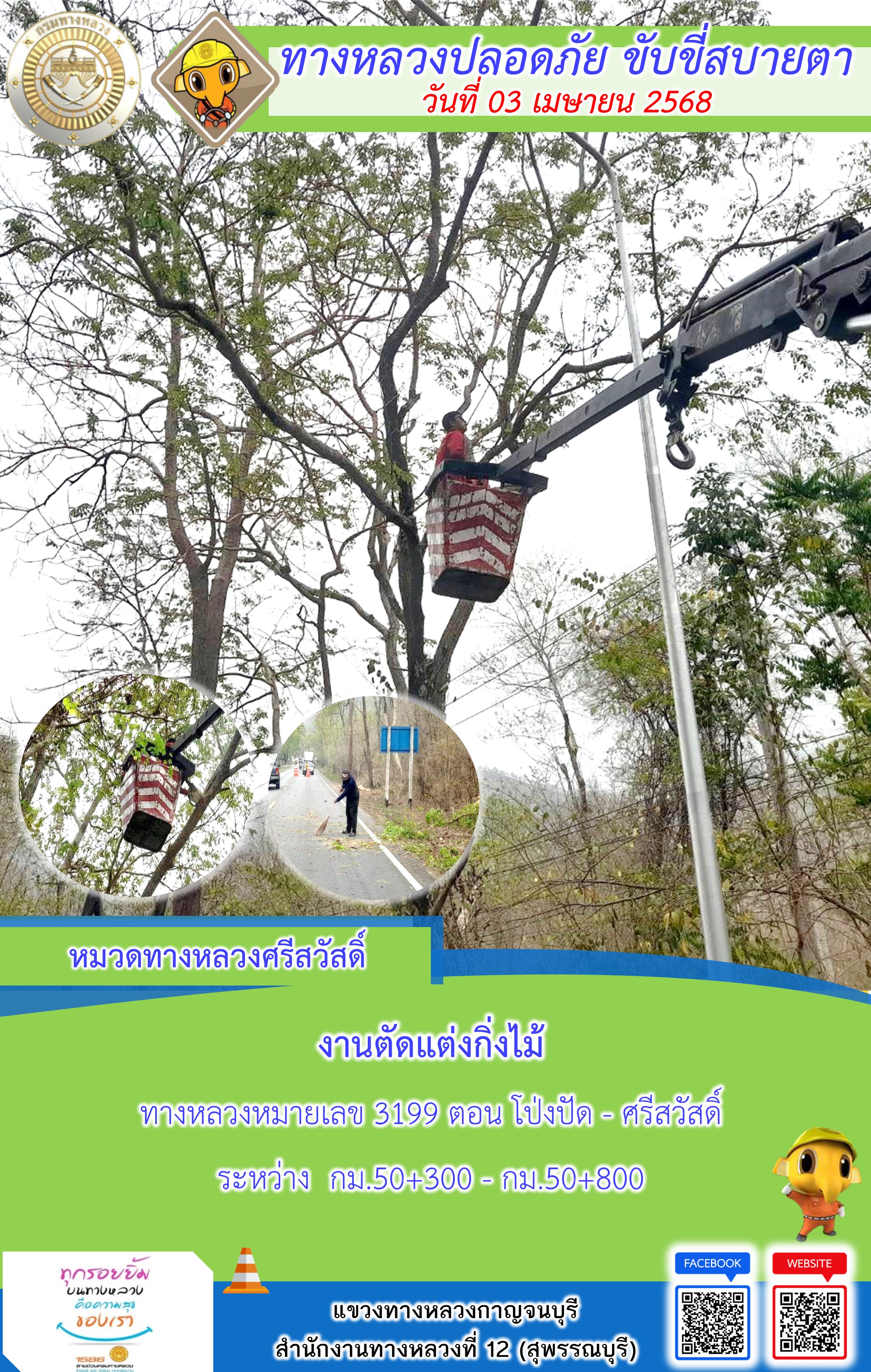 แขวงทางหลวงกาญจนบุรี โดยหมวดทางหลวงในสังกัด และงานอำนวยความปลอดภัยปฏิบัติงาน ประจำวันที่ 3 เม.ย. 68