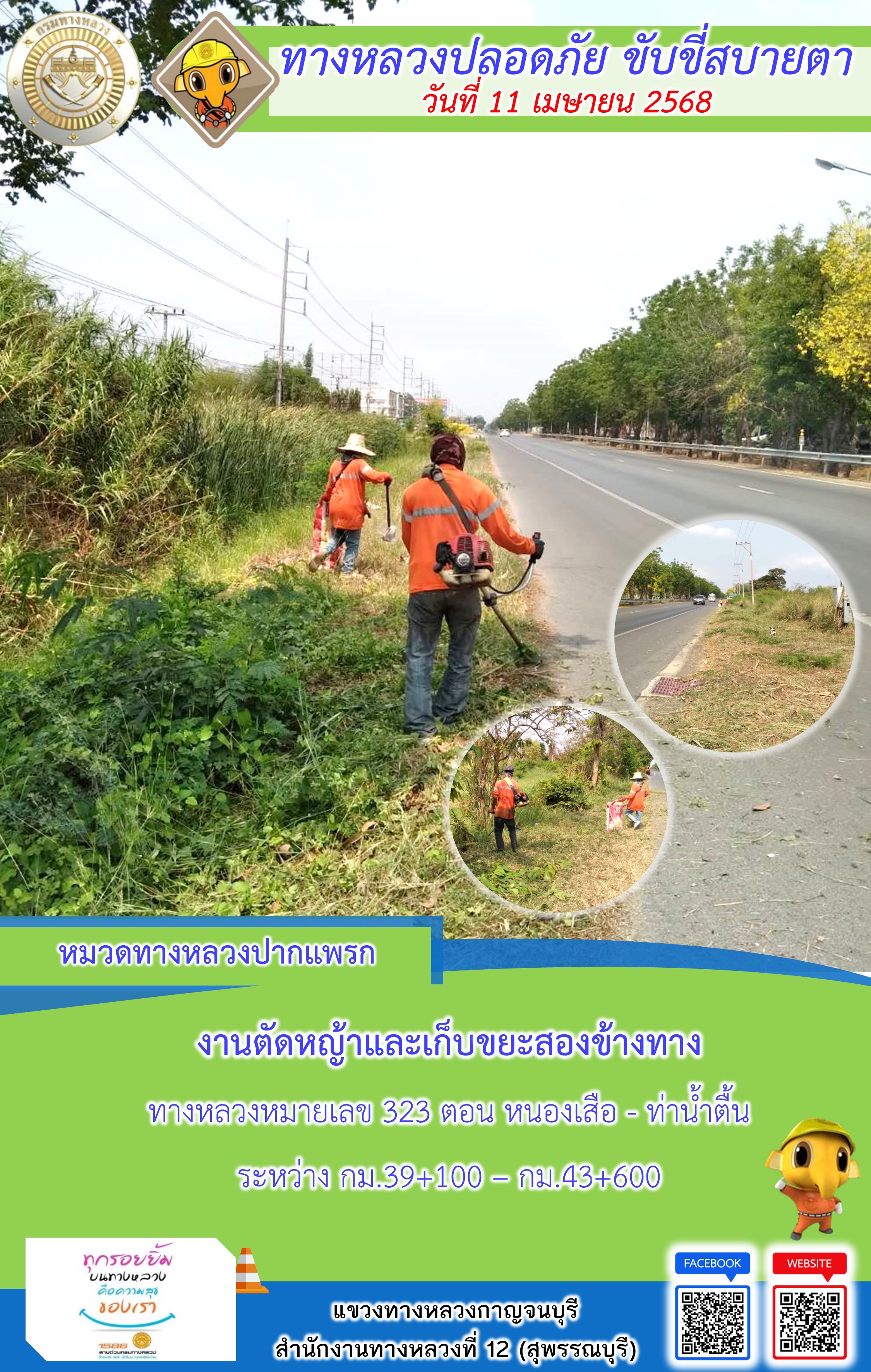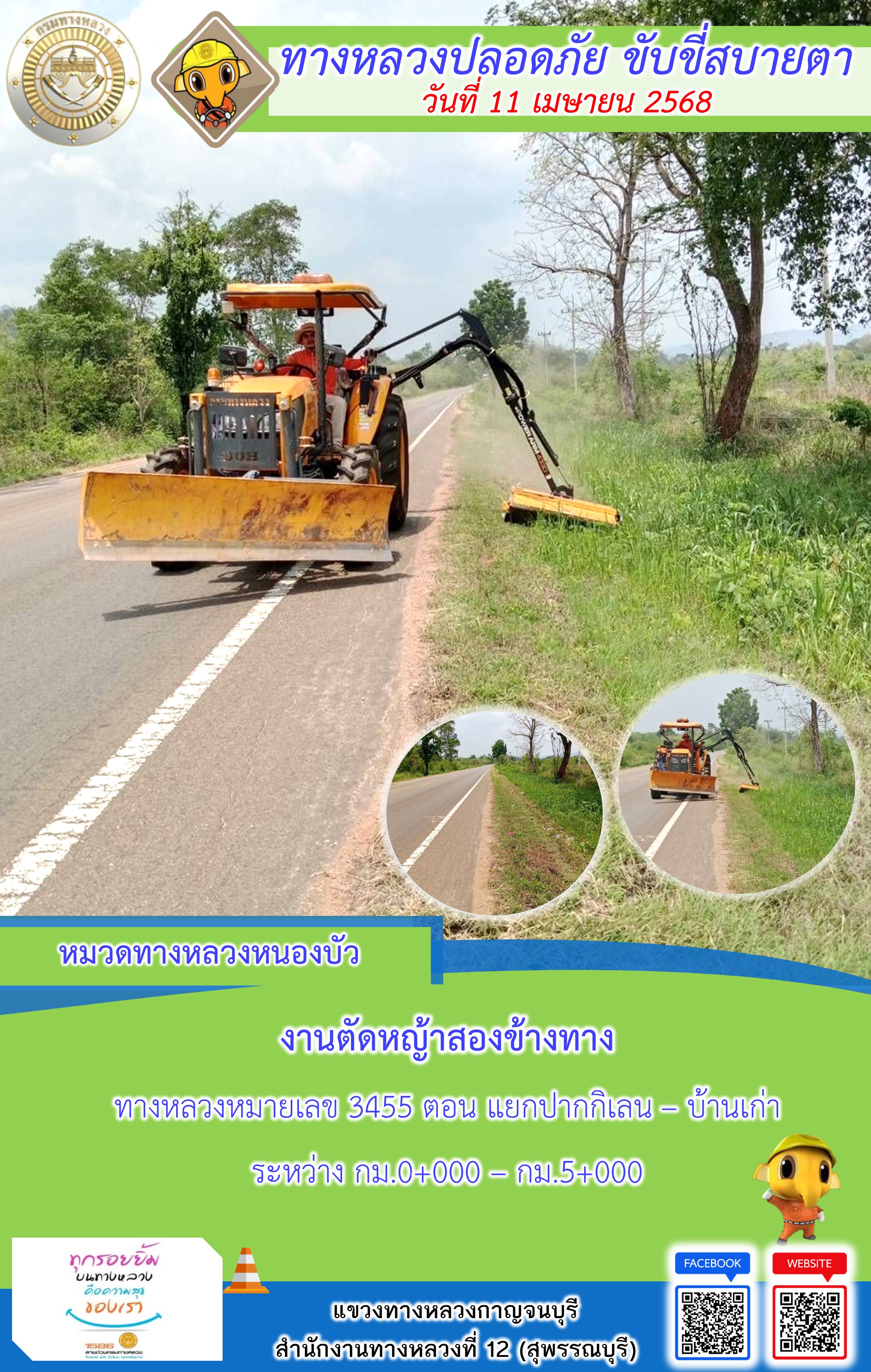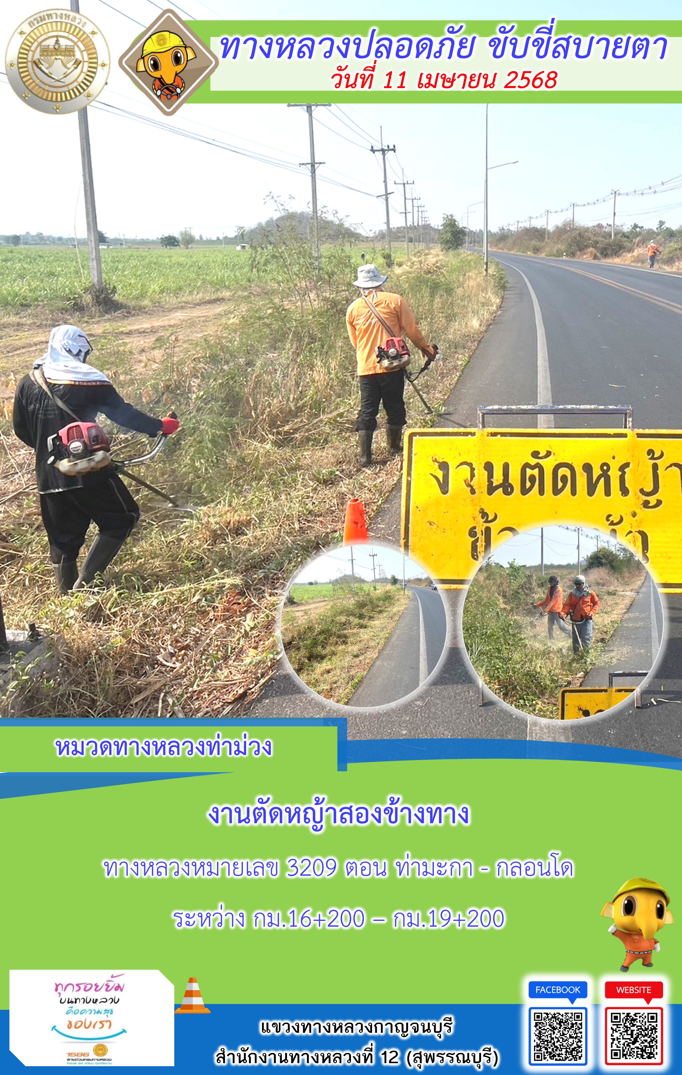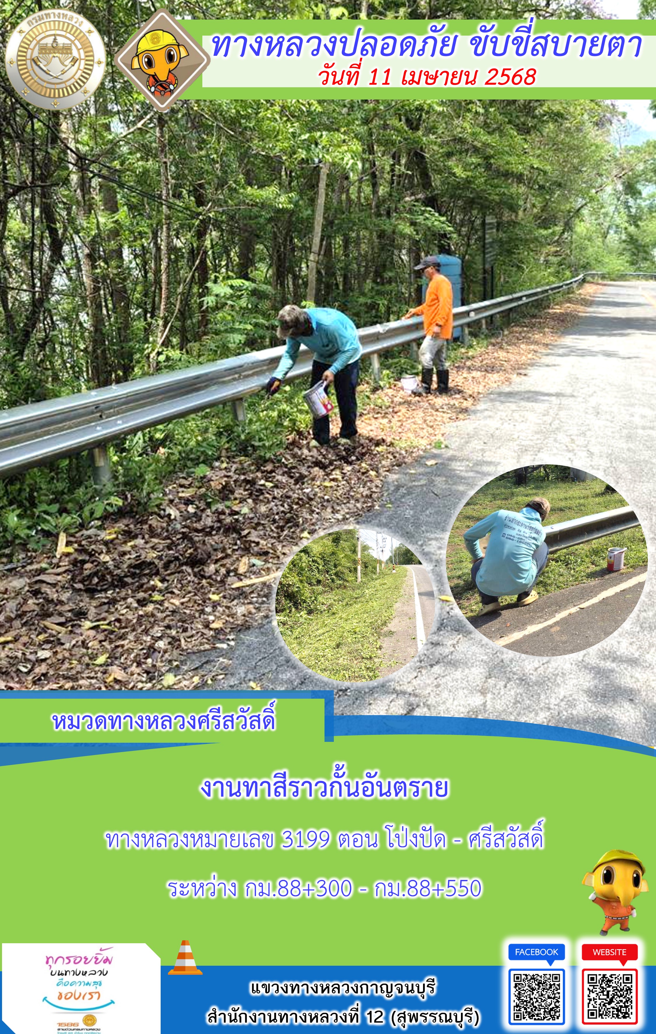 ข้อมูลภาพกิจกรรม : แขวงทางหลวงกาญจนบุรี โดยหมวดทางหลวงในสังกัด และงานอำนวยความปลอดภัยปฏิบัติงาน ประจำวันที่ 11 เม.ย. 68