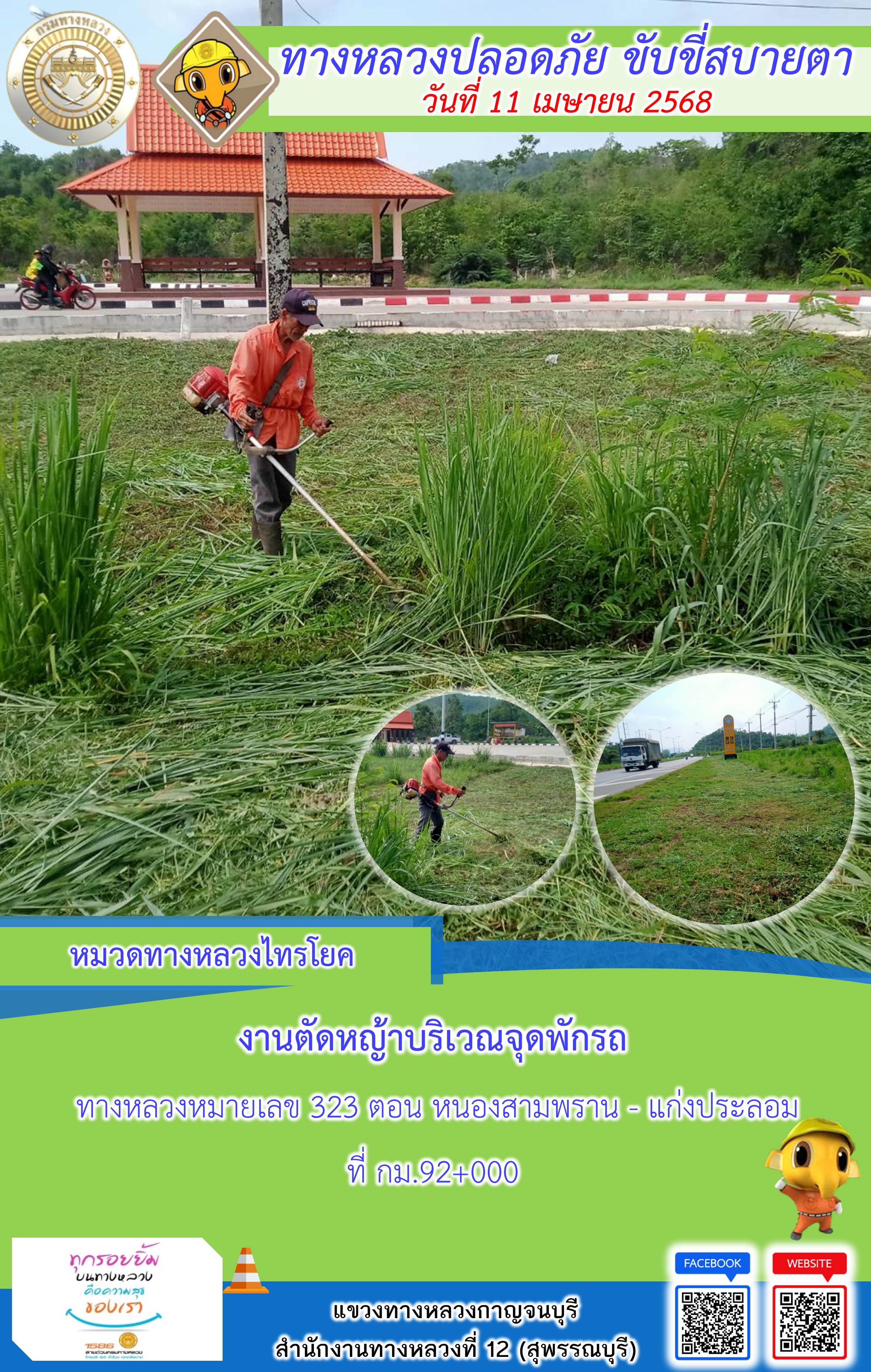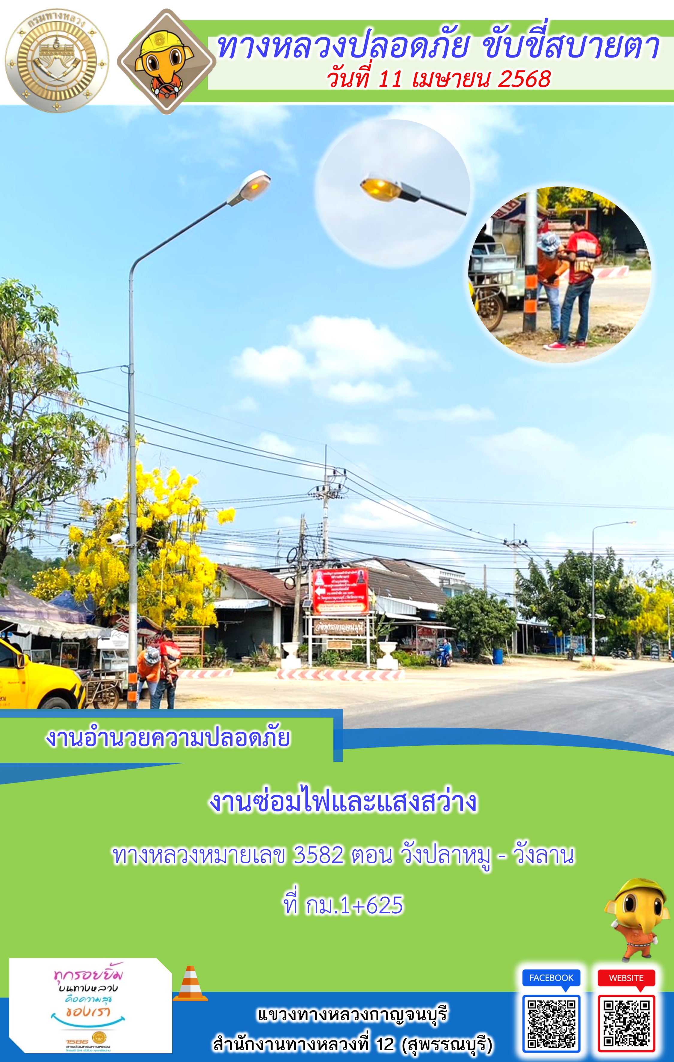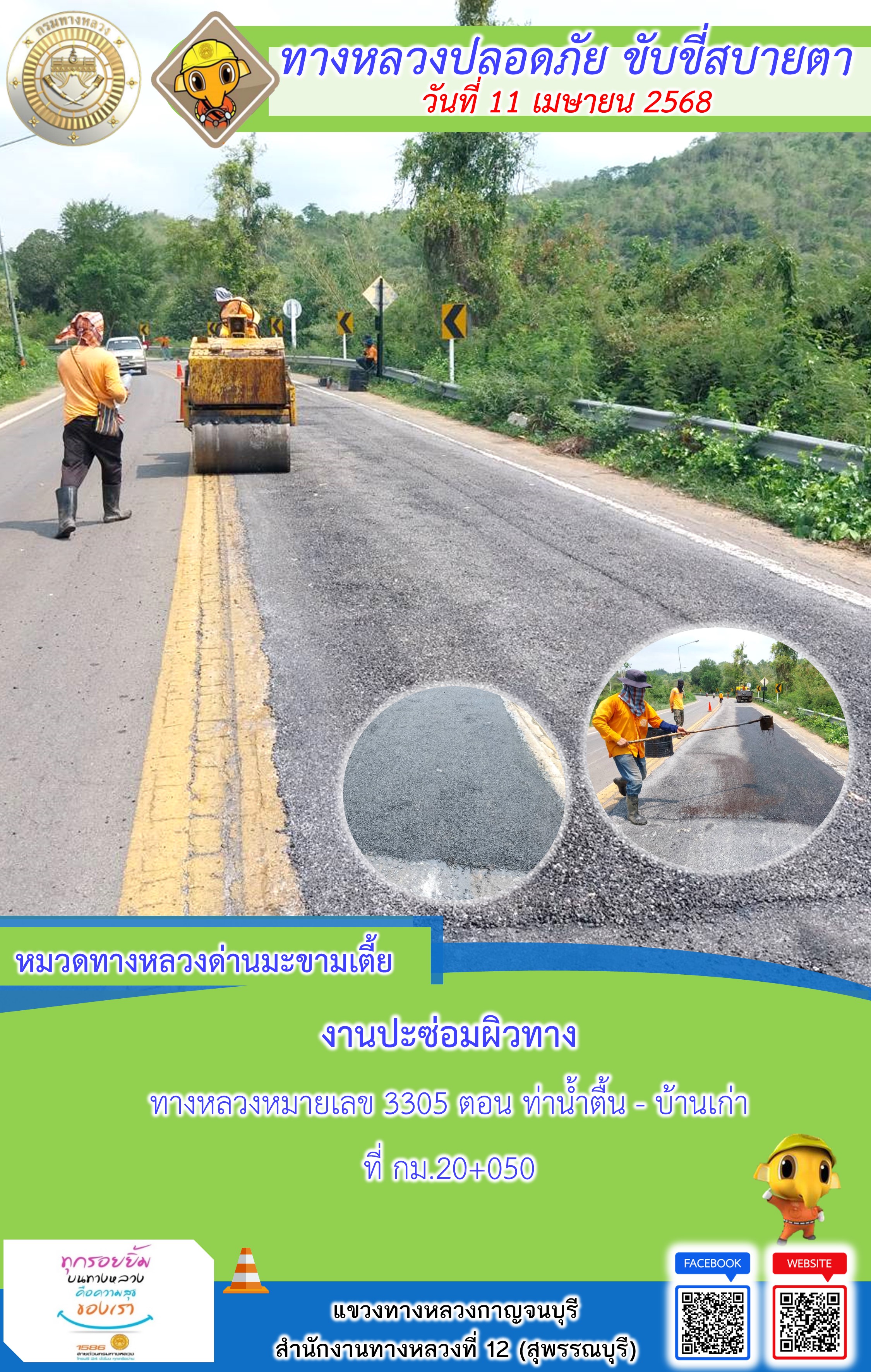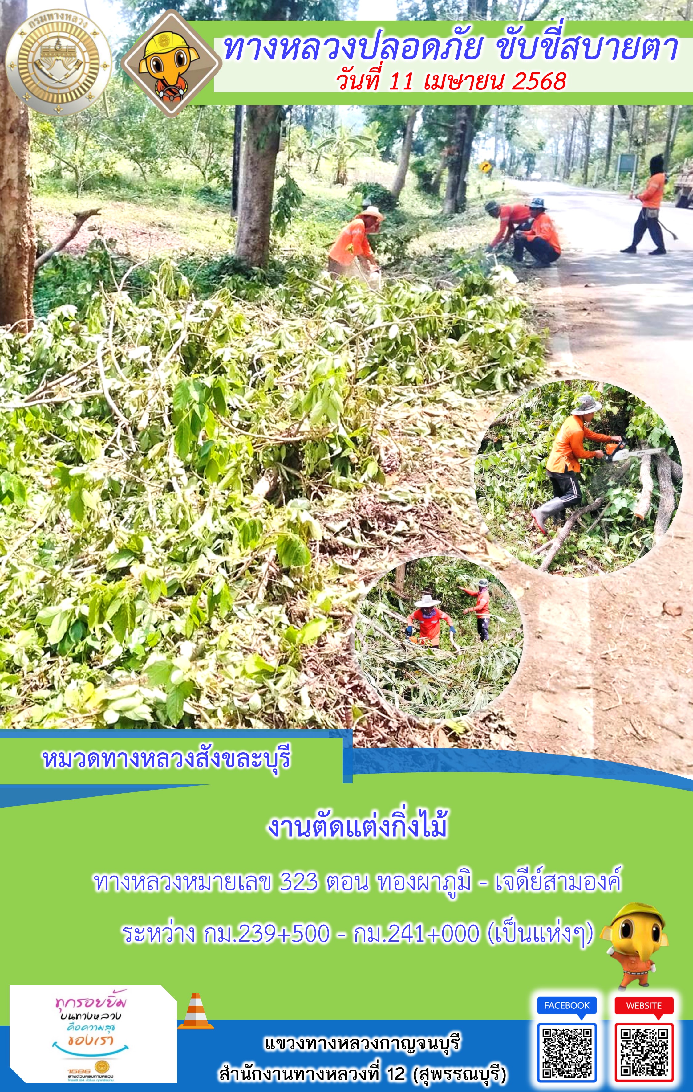ข้อมูลภาพกิจกรรม : แขวงทางหลวงกาญจนบุรี โดยหมวดทางหลวงในสังกัด และงานอำนวยความปลอดภัยปฏิบัติงาน ประจำวันที่ 11 เม.ย. 68