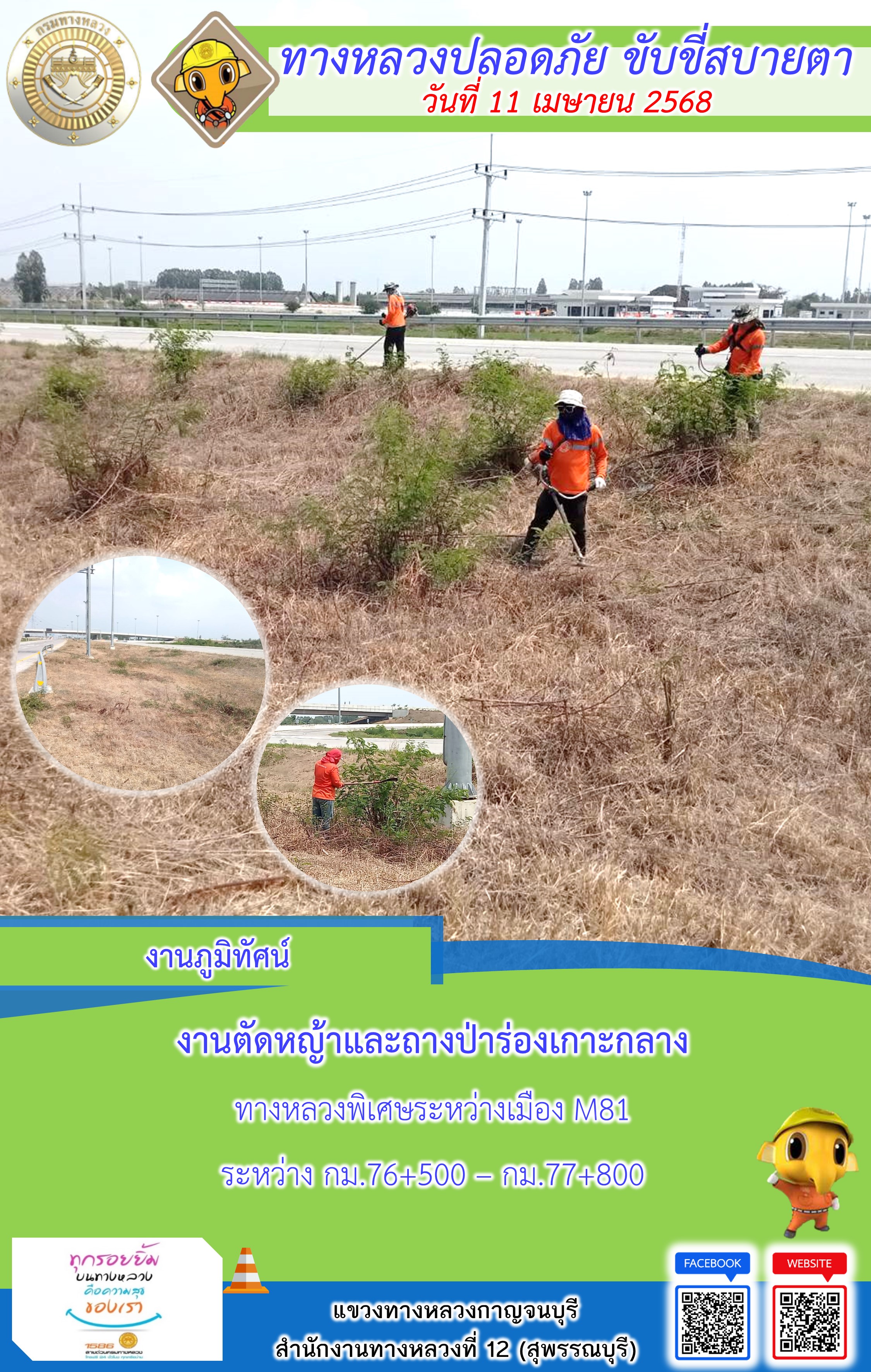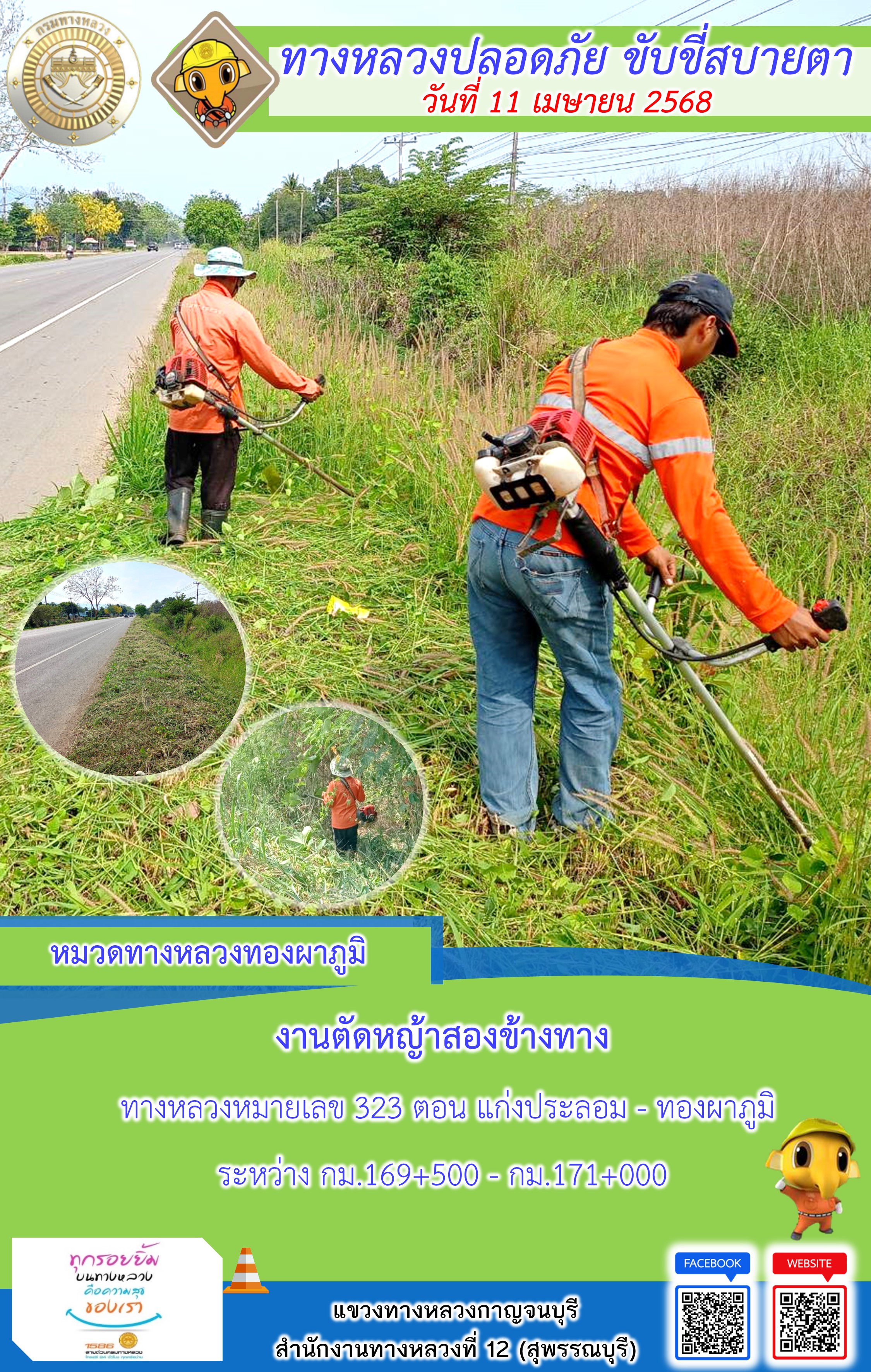 แขวงทางหลวงกาญจนบุรี โดยหมวดทางหลวงในสังกัด และงานอำนวยความปลอดภัยปฏิบัติงาน ประจำวันที่ 11 เม.ย. 68