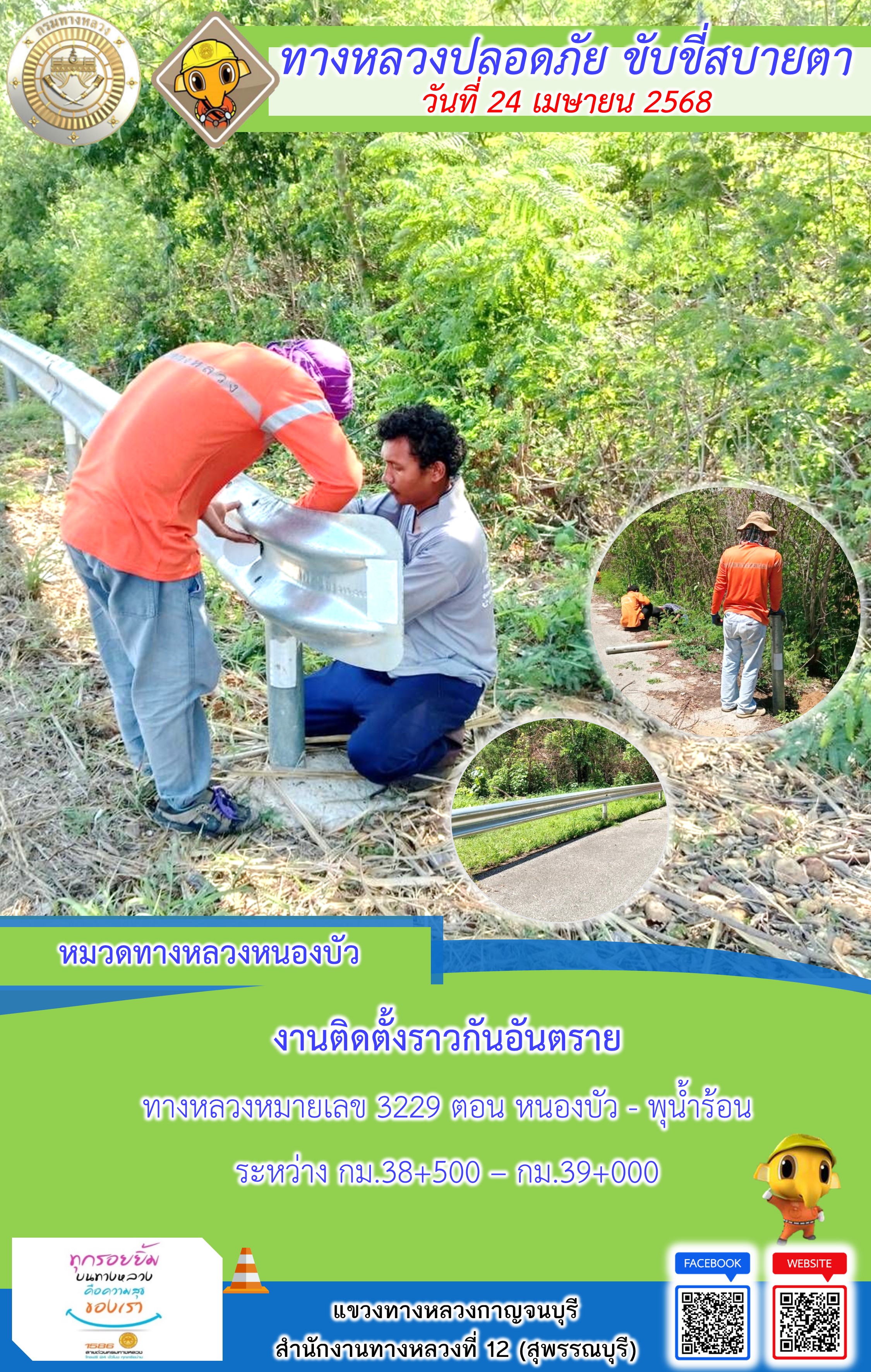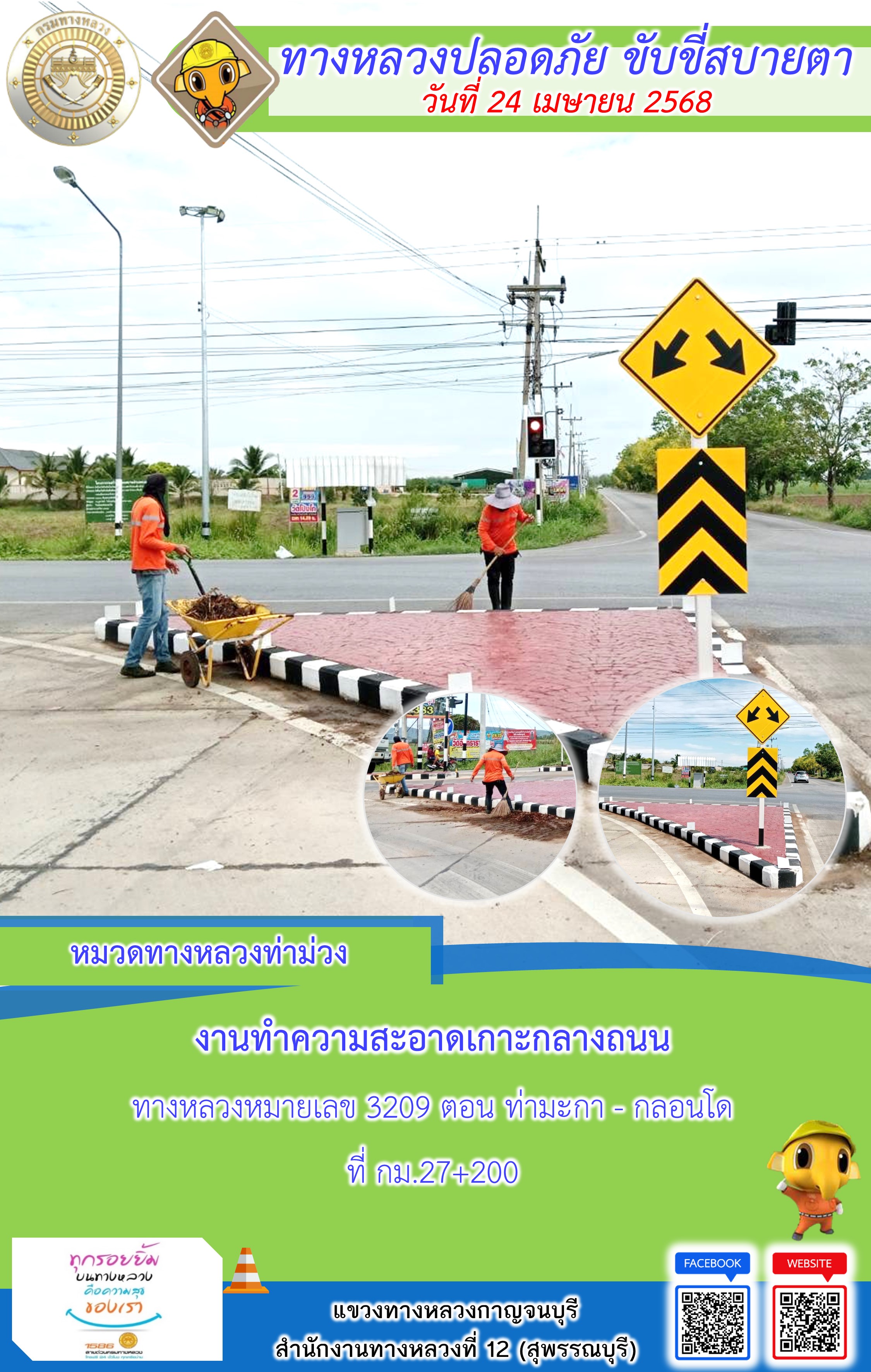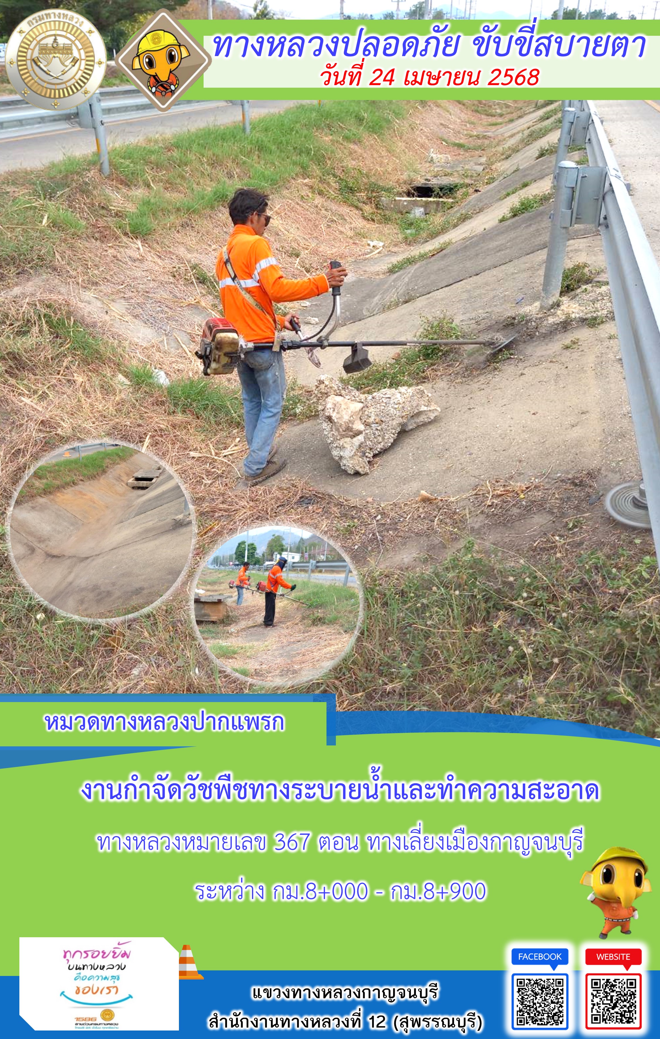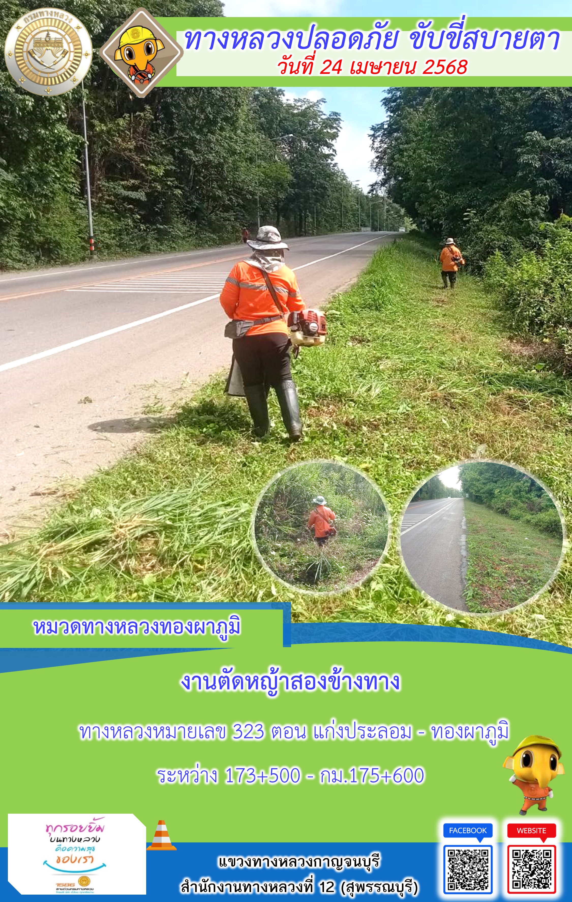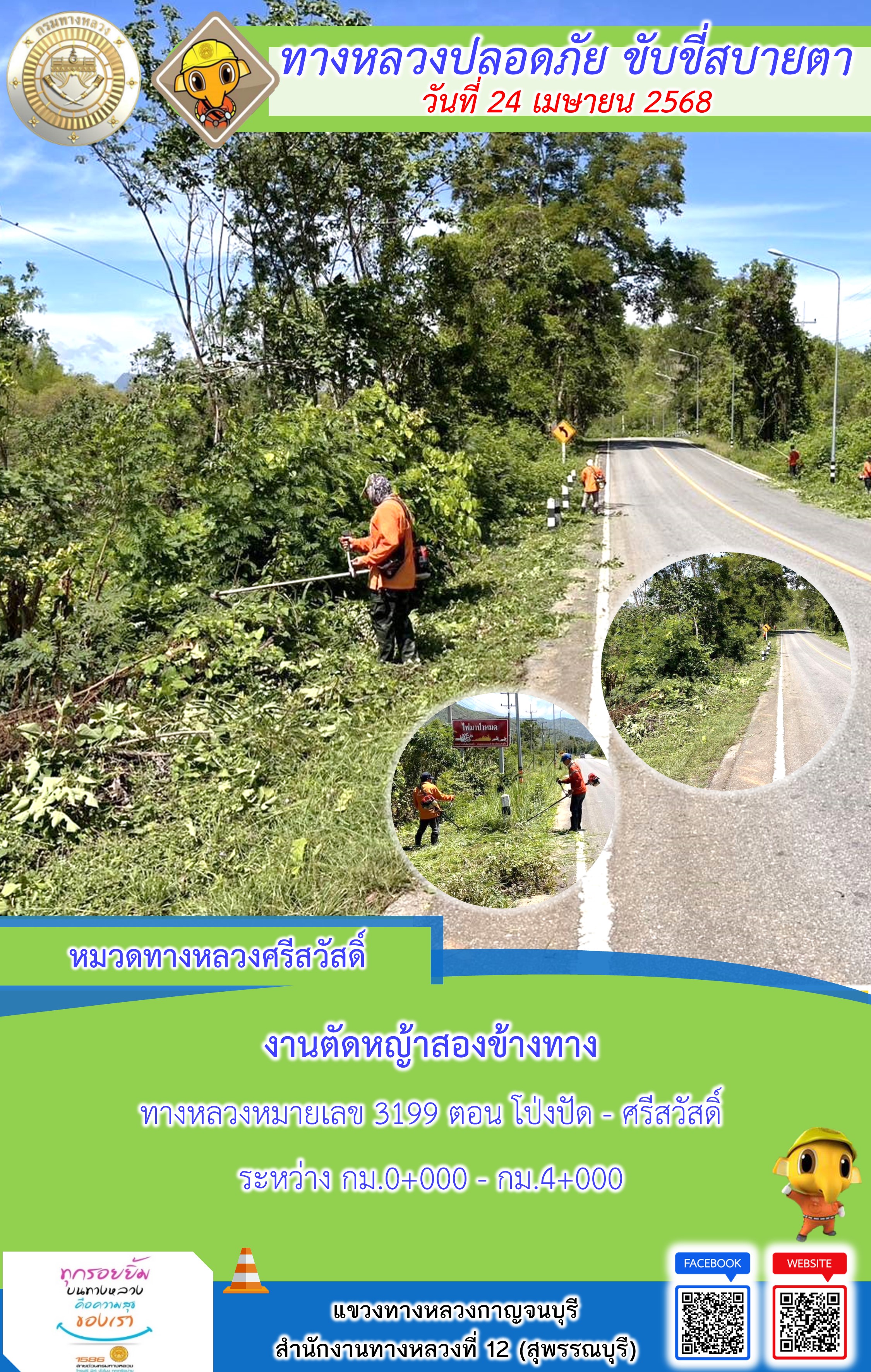 ข้อมูลภาพกิจกรรม : แขวงทางหลวงกาญจนบุรี โดยหมวดทางหลวงในสังกัด และงานอำนวยความปลอดภัยปฏิบัติงาน ประจำวันที่ 24 เม.ย. 68