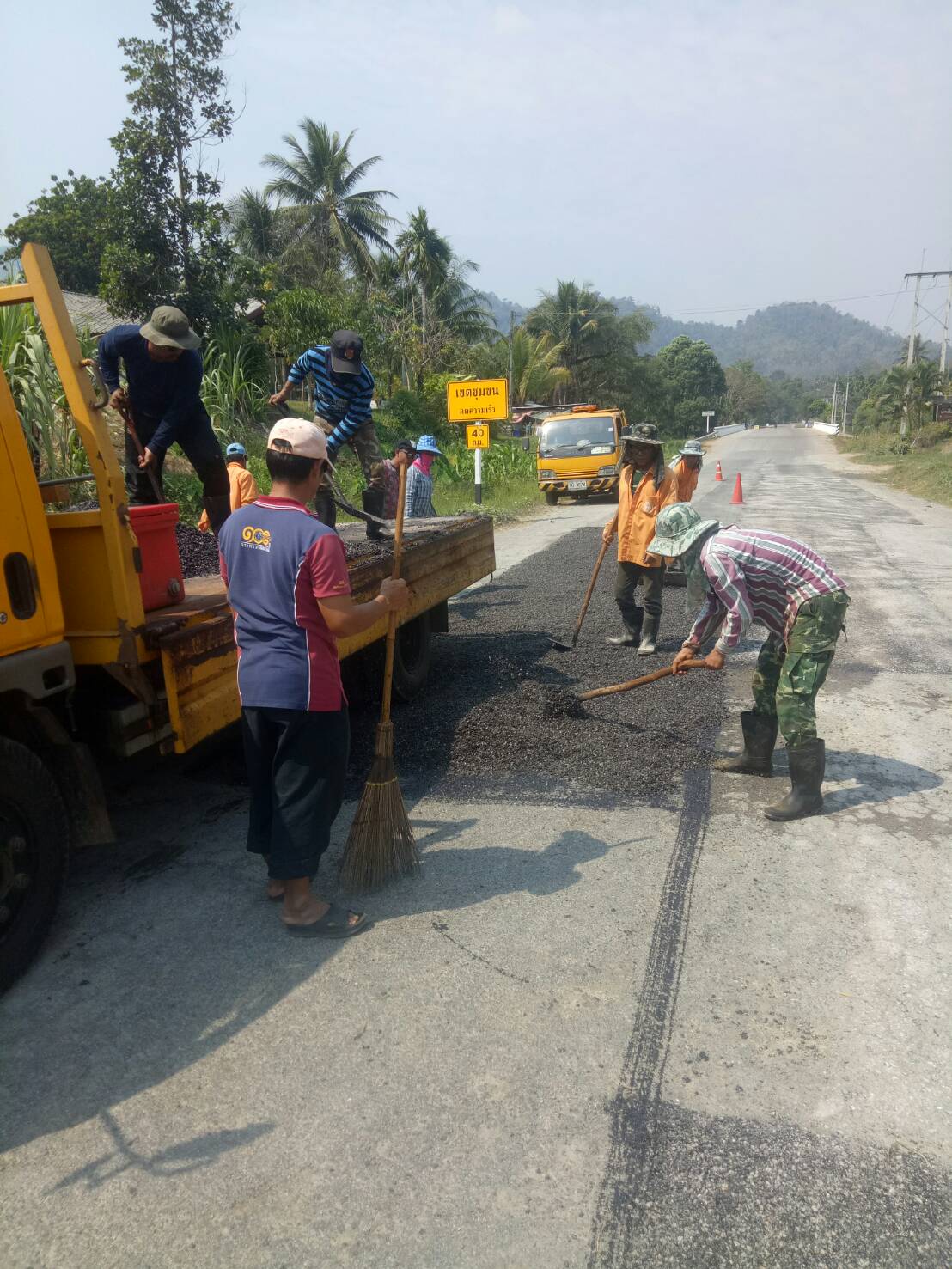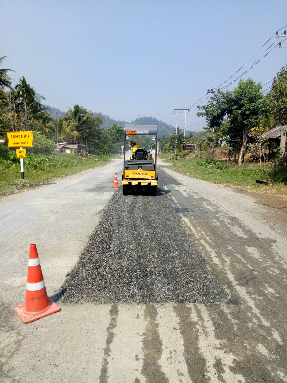 แขวงทางหลวงกาญจนบุรีโดยหมวดทางหลวงทองผาภูมิ ดำเนินการในทางหลวงหมายเลข 3272,323